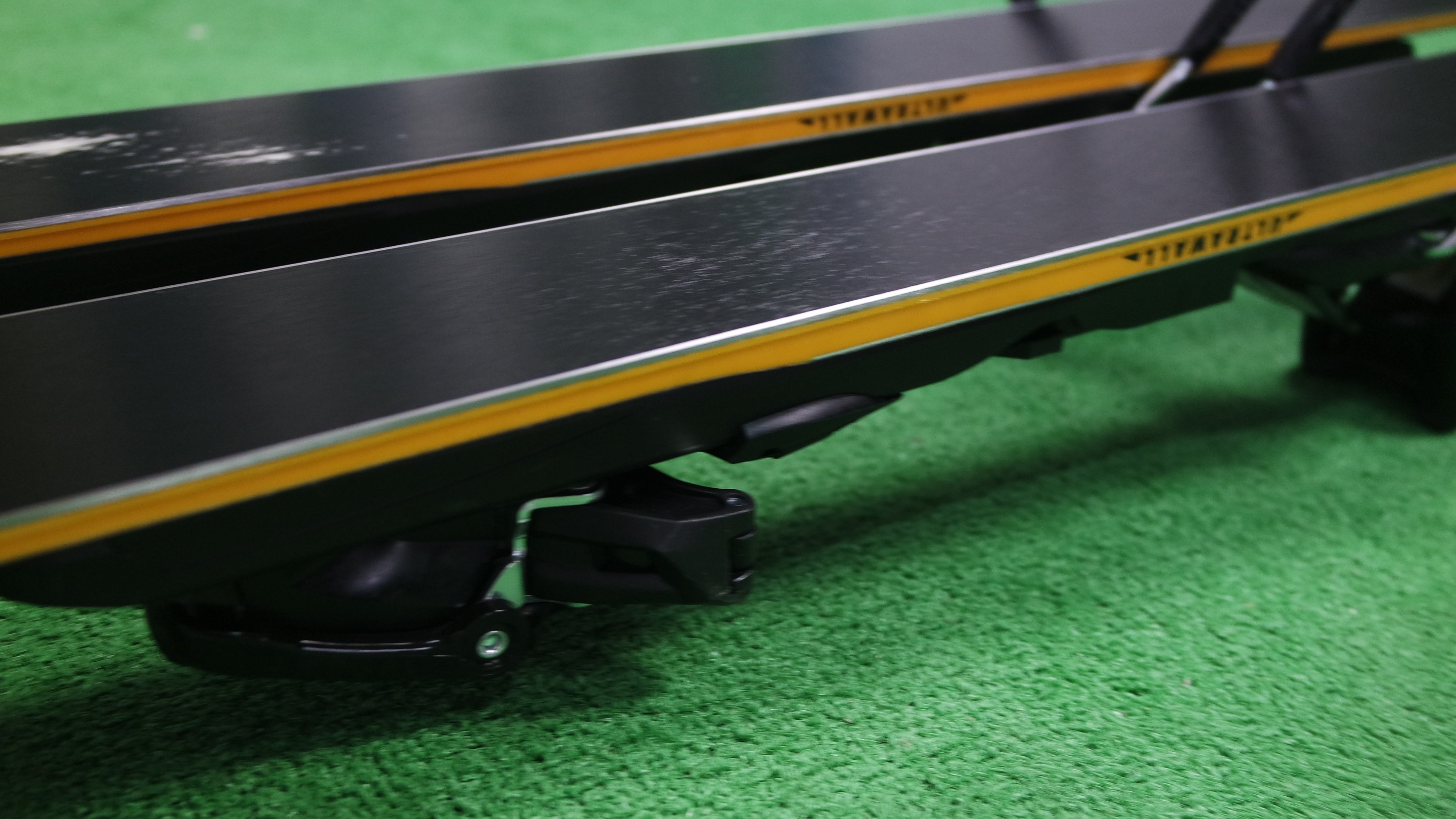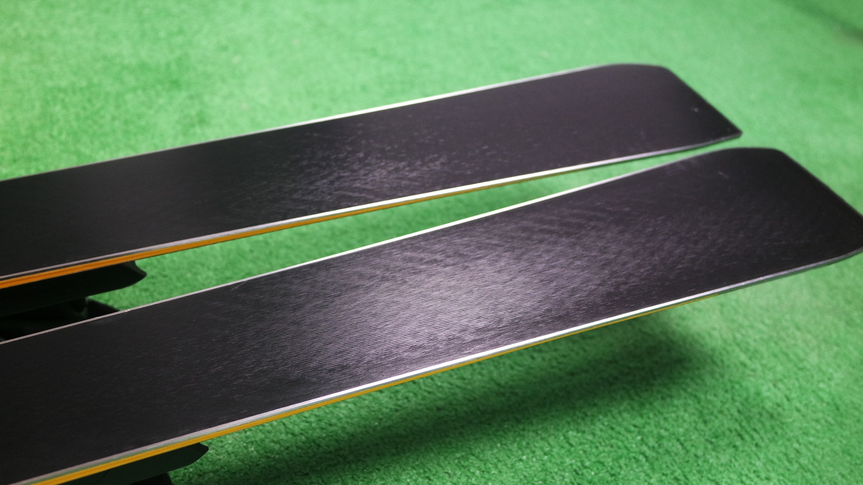 Krawędzie w nartach są grube, ślizgi równe, czyste.