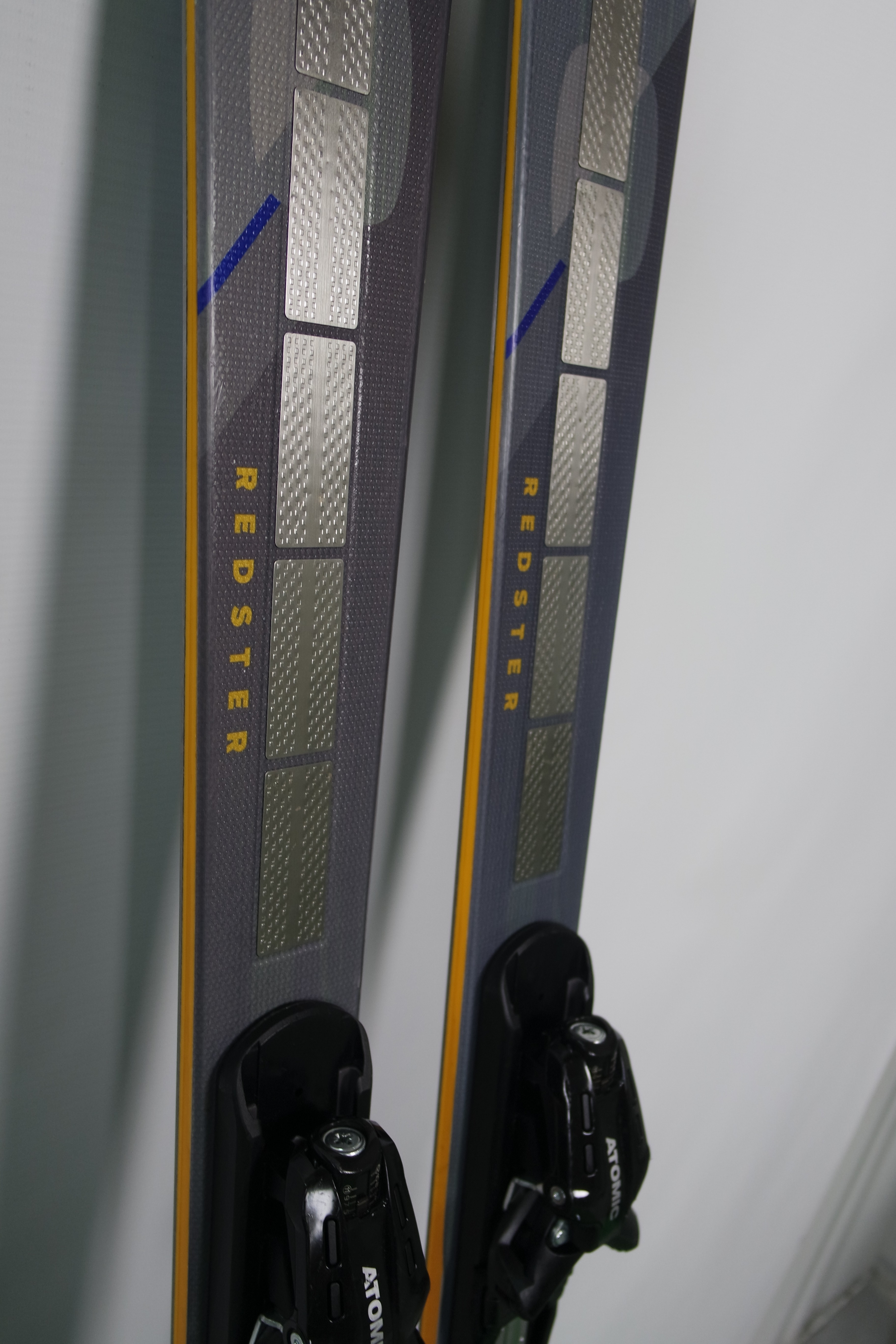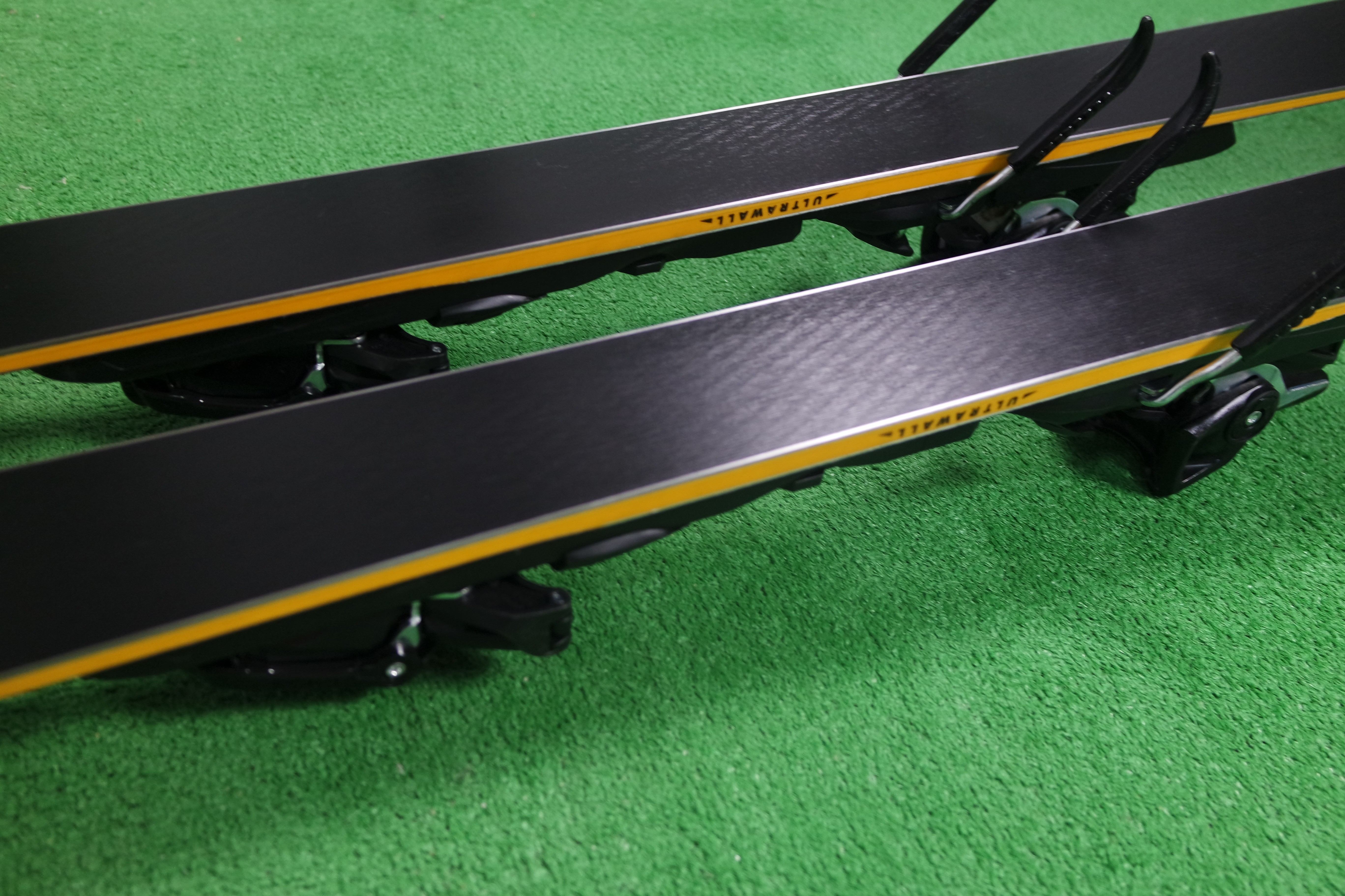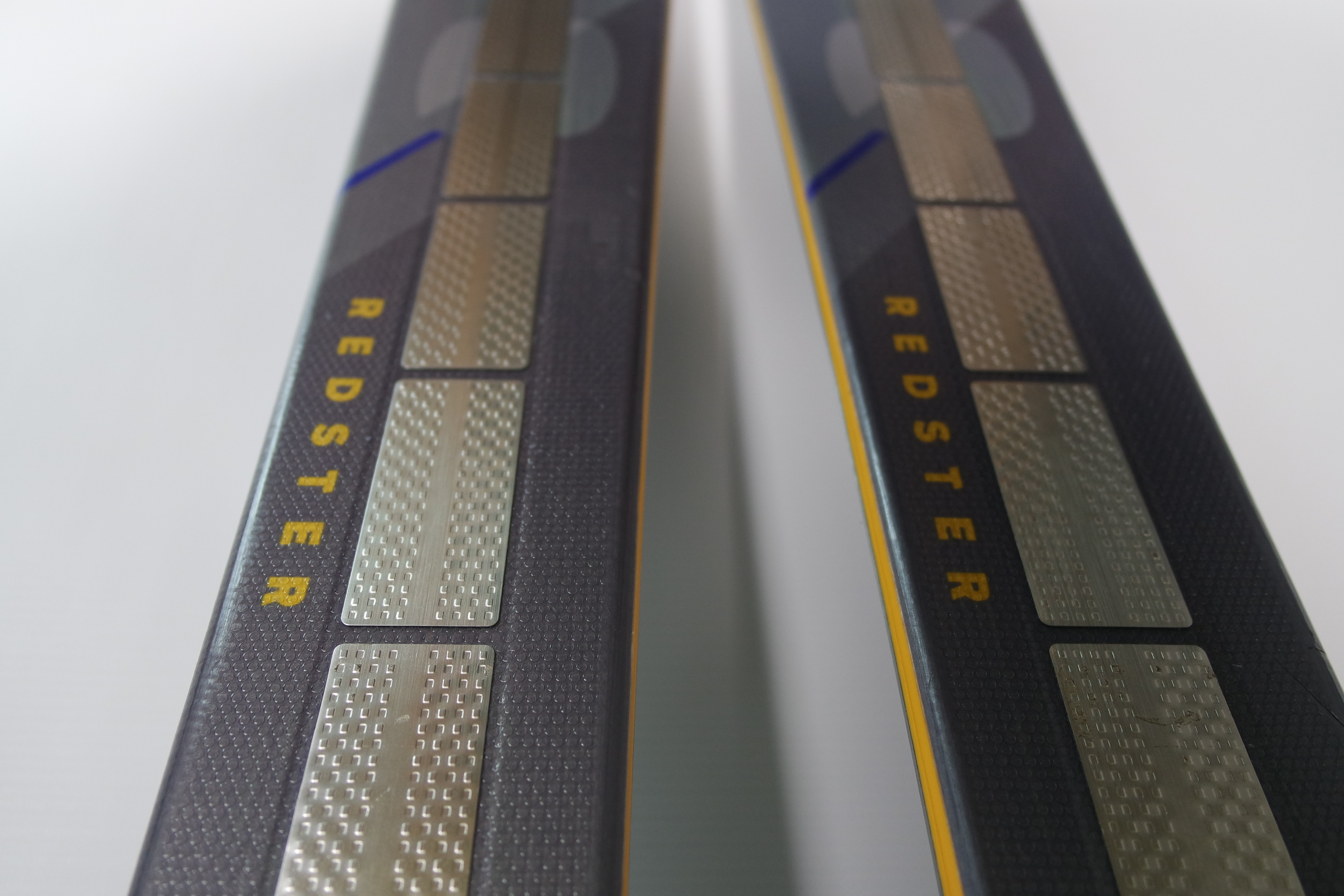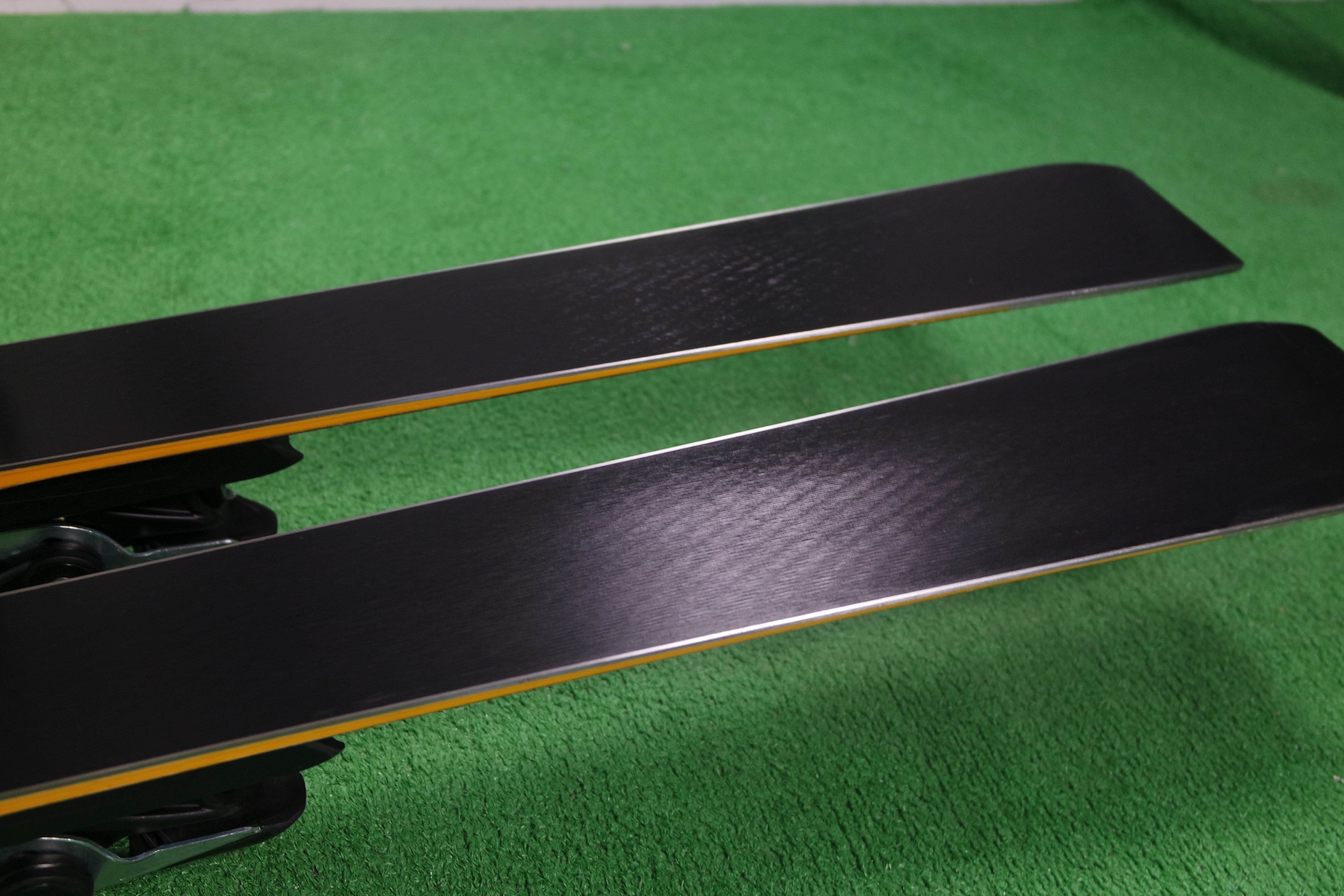 Krawędzie w nartach są grube, ślizgi równe, czyste.