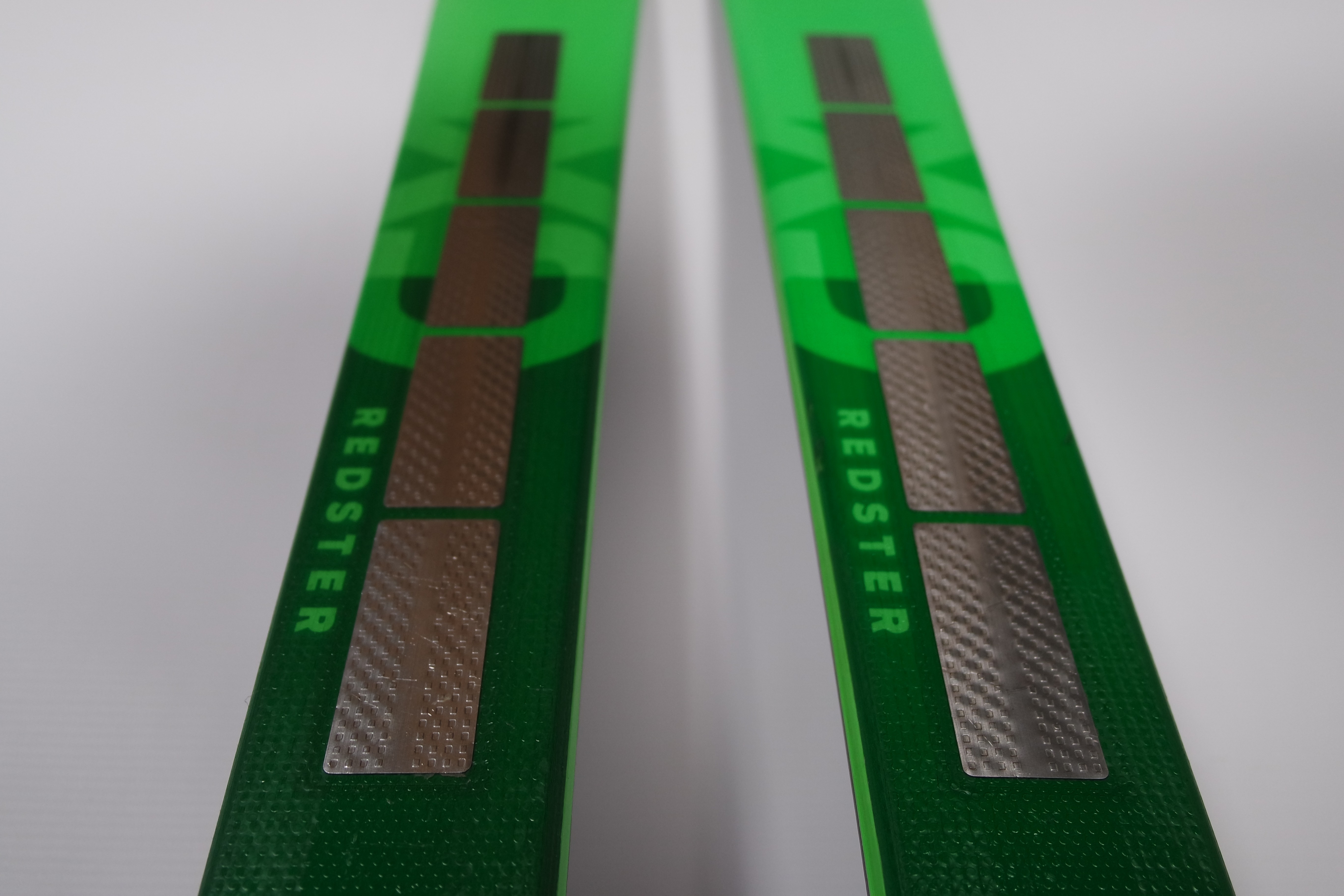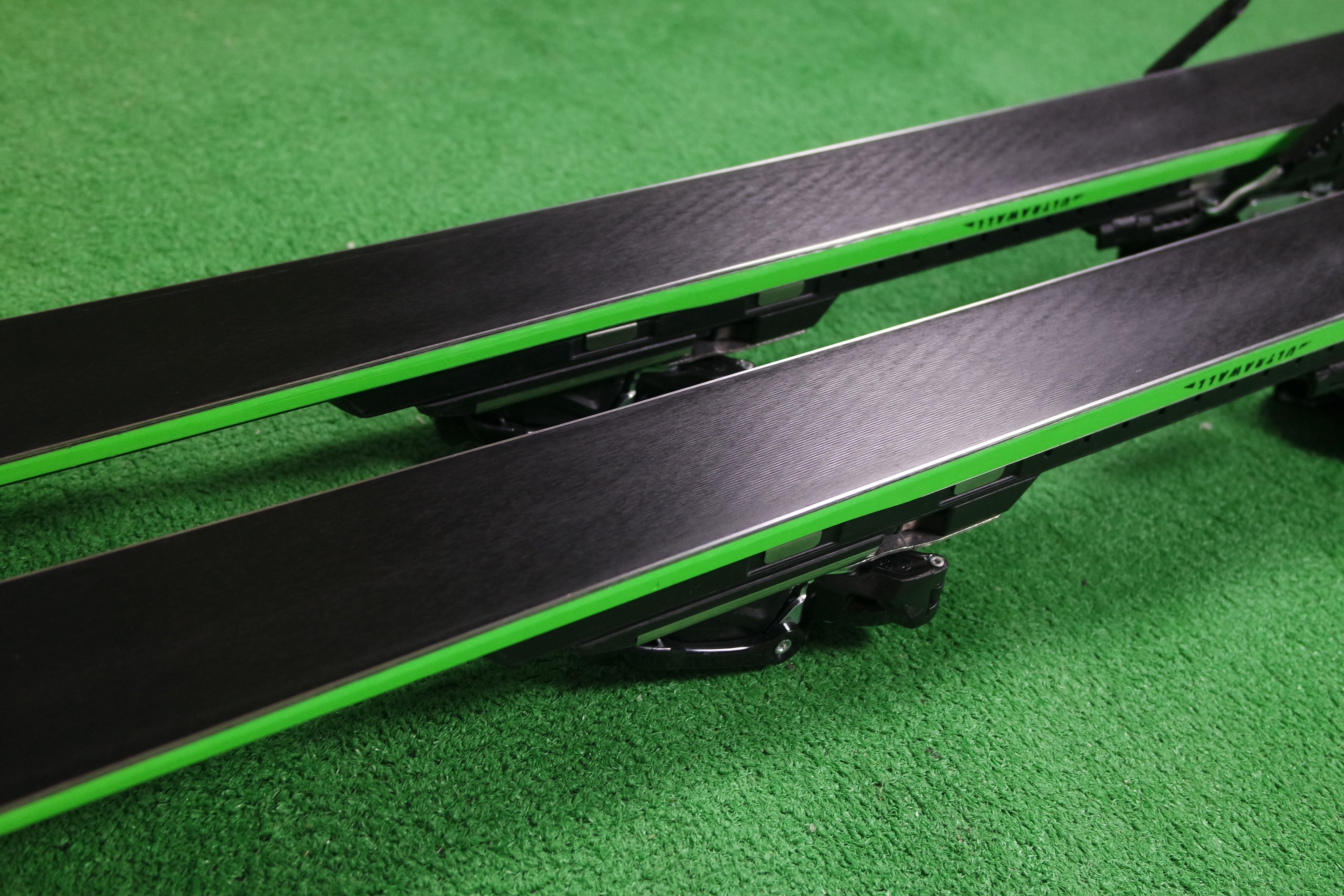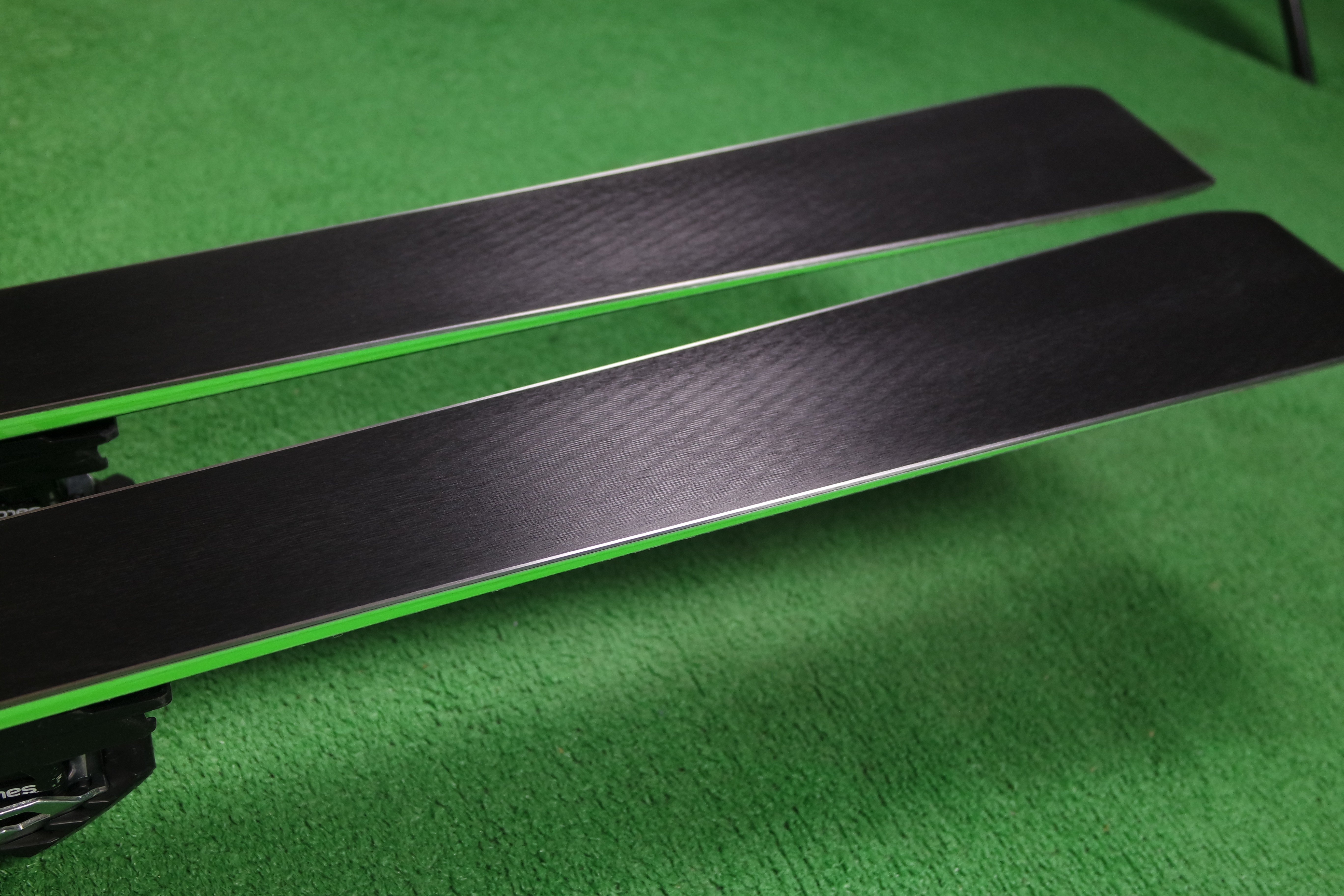Krawędzie w nartach są grube, ślizgi równe, czyste.
