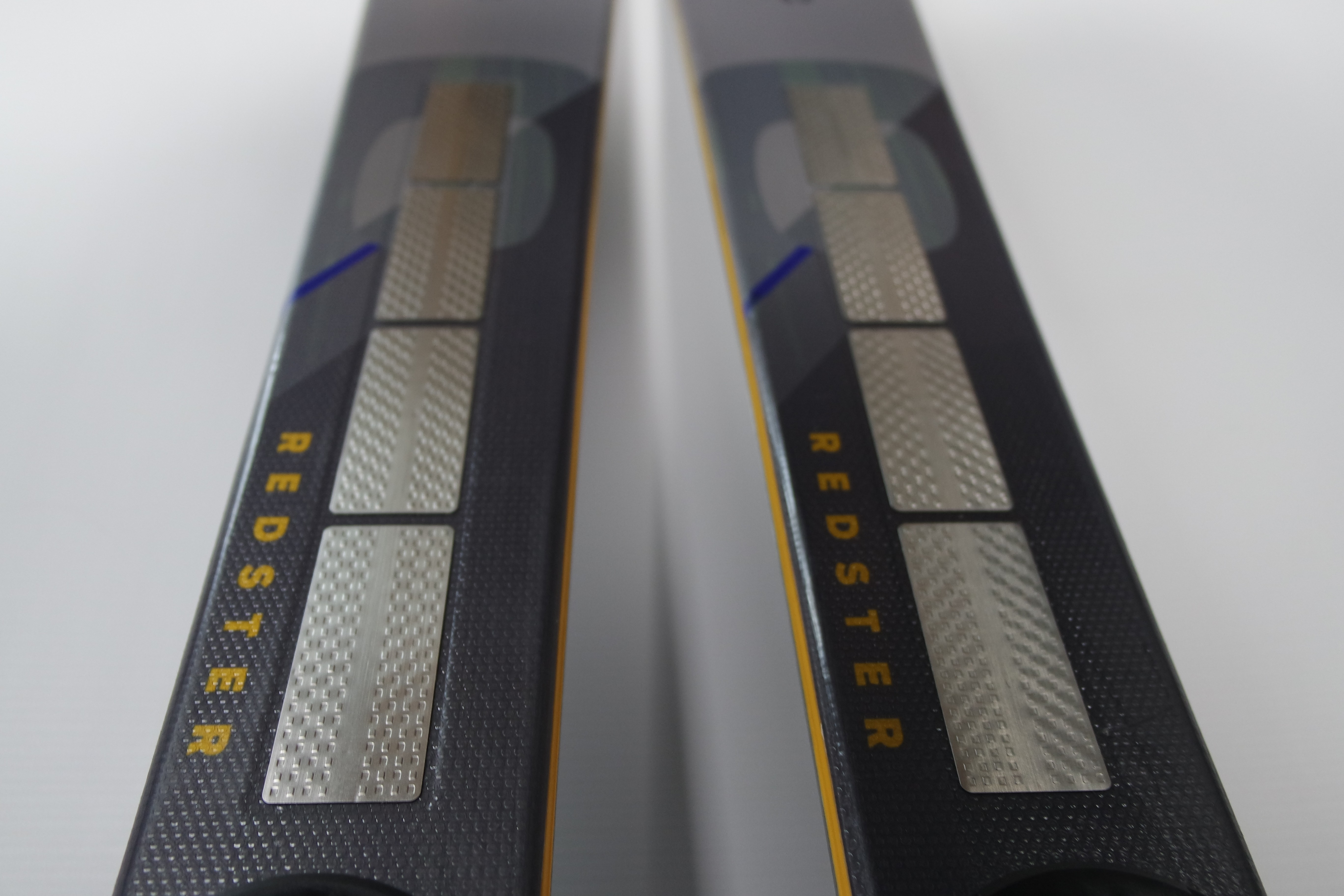 Krawędzie w nartach są grube, ślizgi równe, czyste.