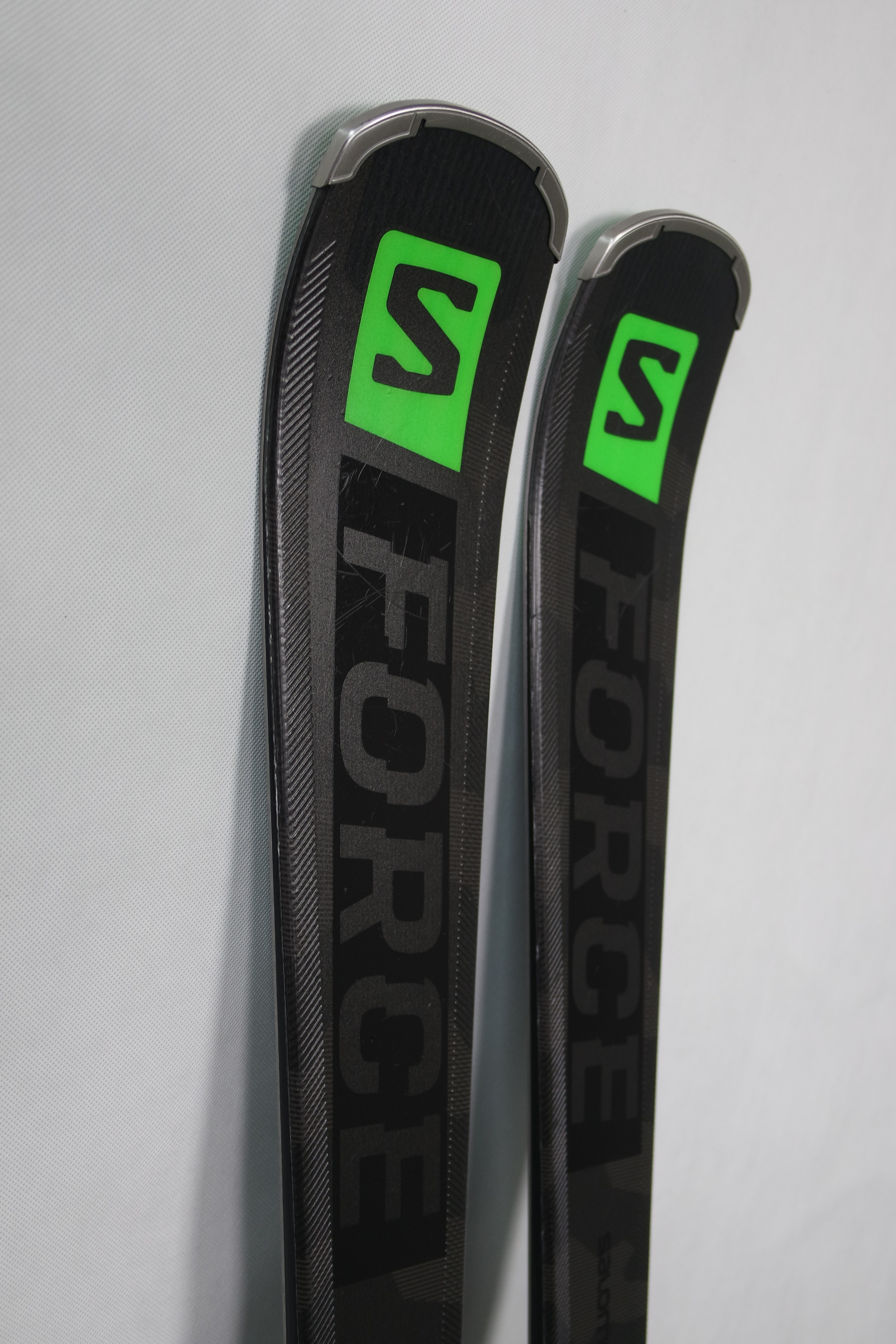 Krawędzie w nartach są grube, ślizgi równe, czyste.