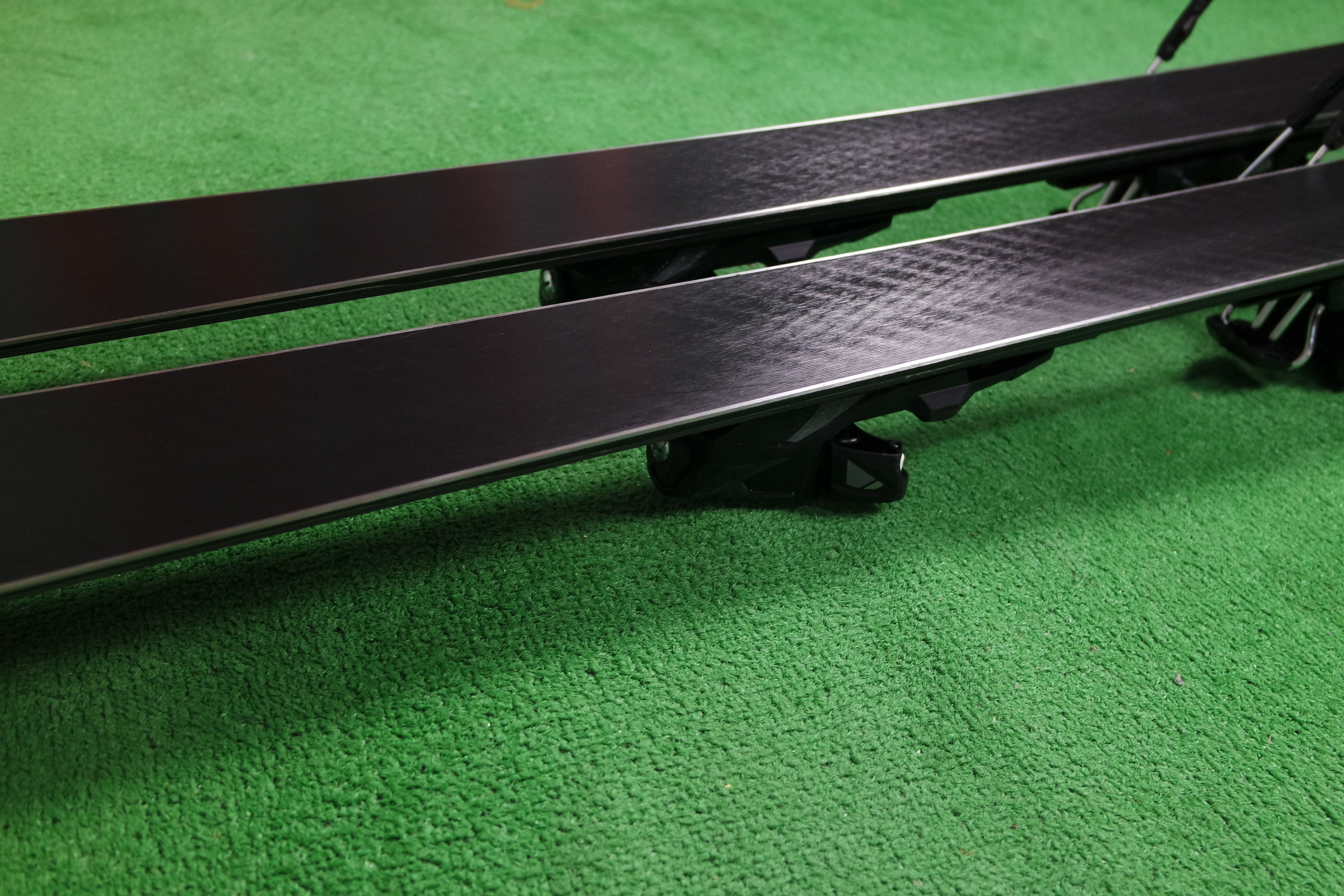 Krawędzie w nartach są grube, ślizgi równe, czyste.