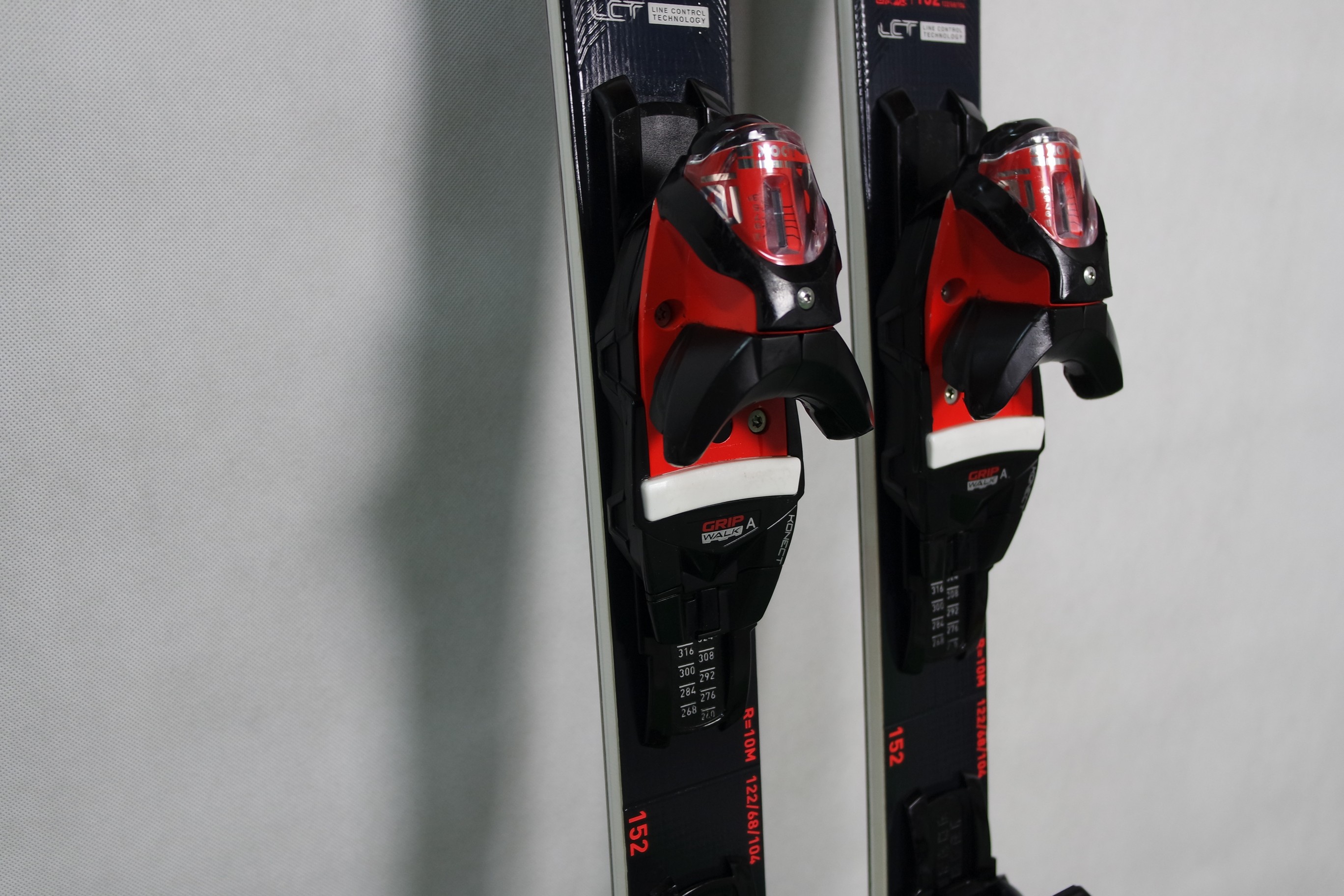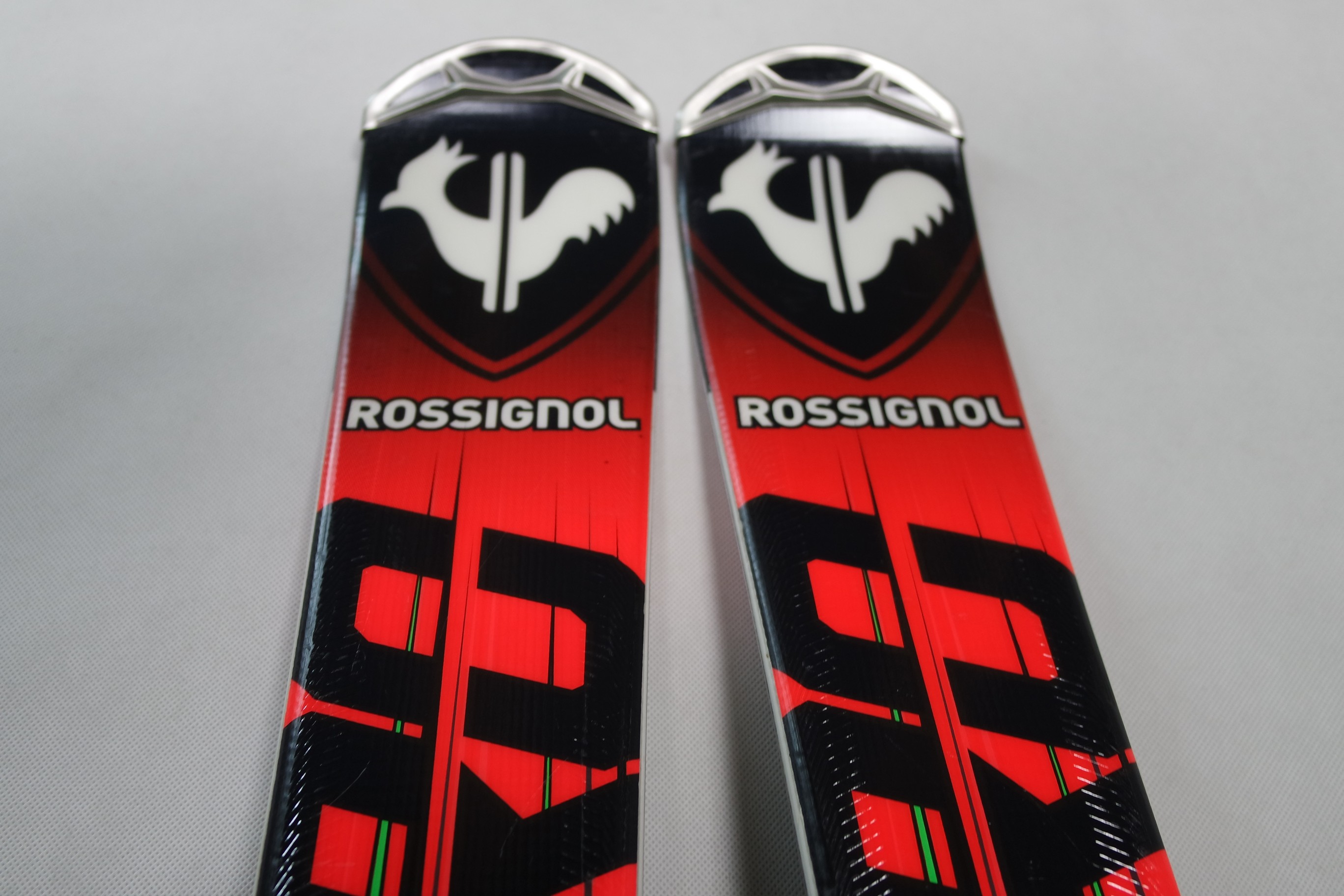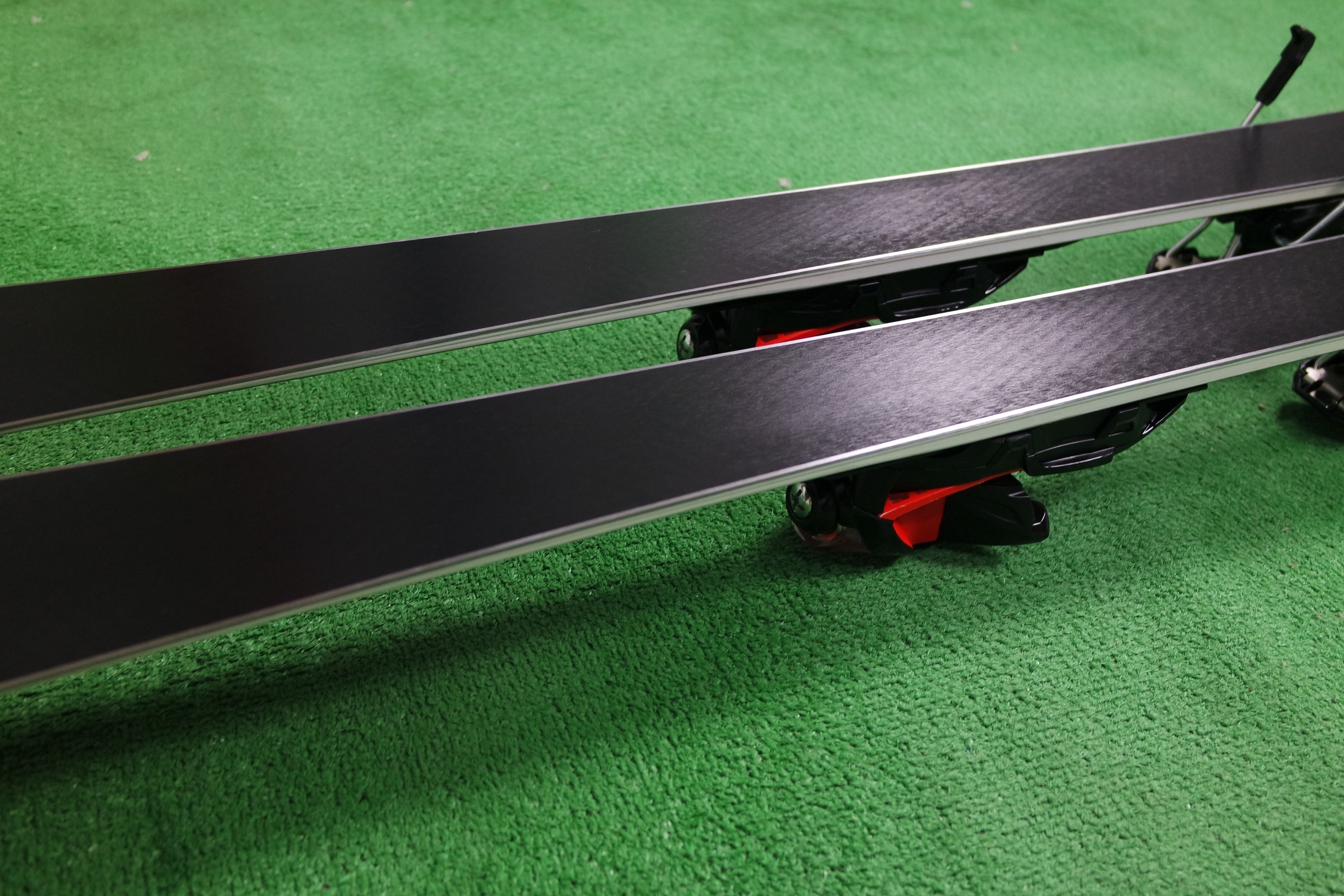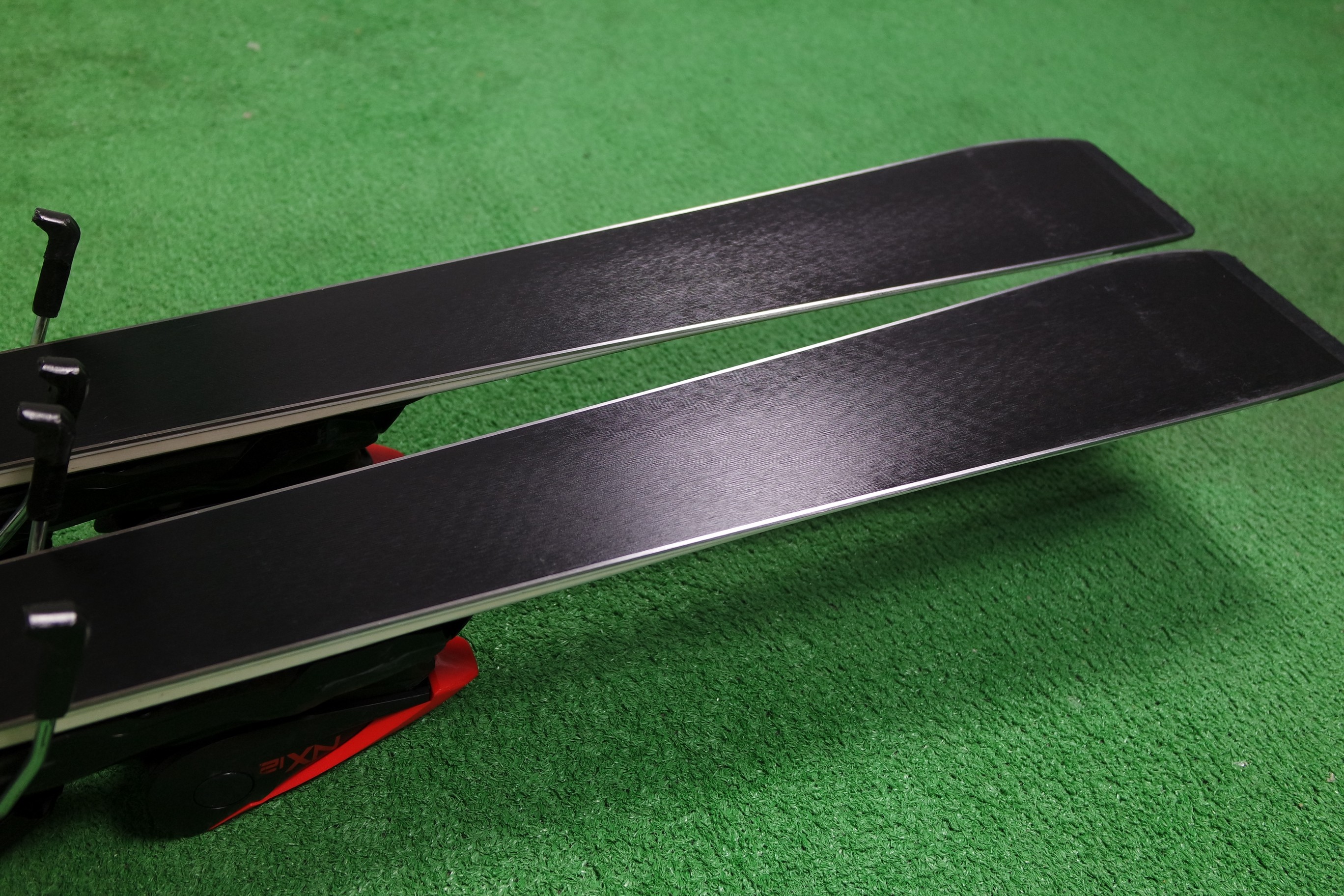Krawędzie w nartach są grube, ślizgi równe, czyste.