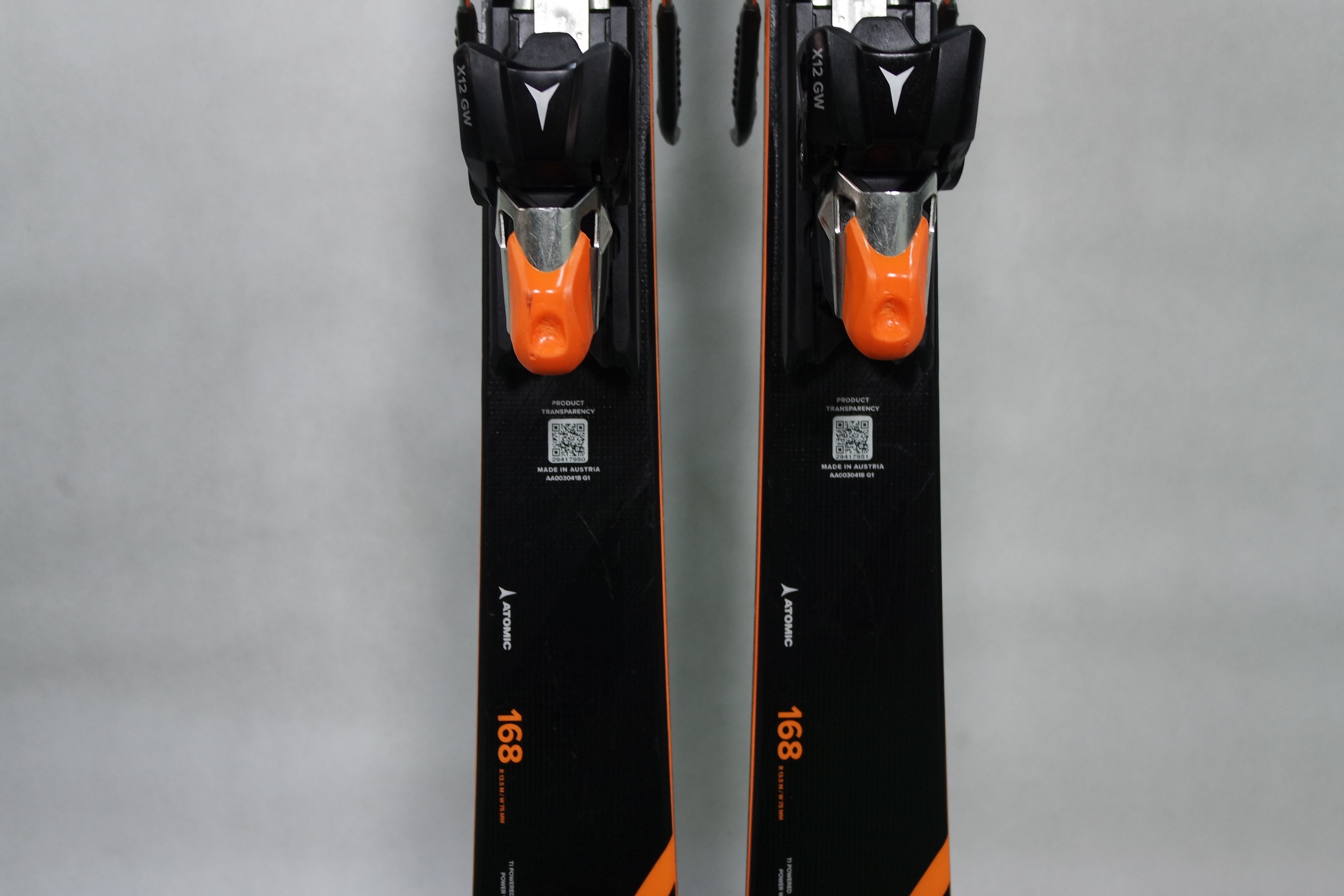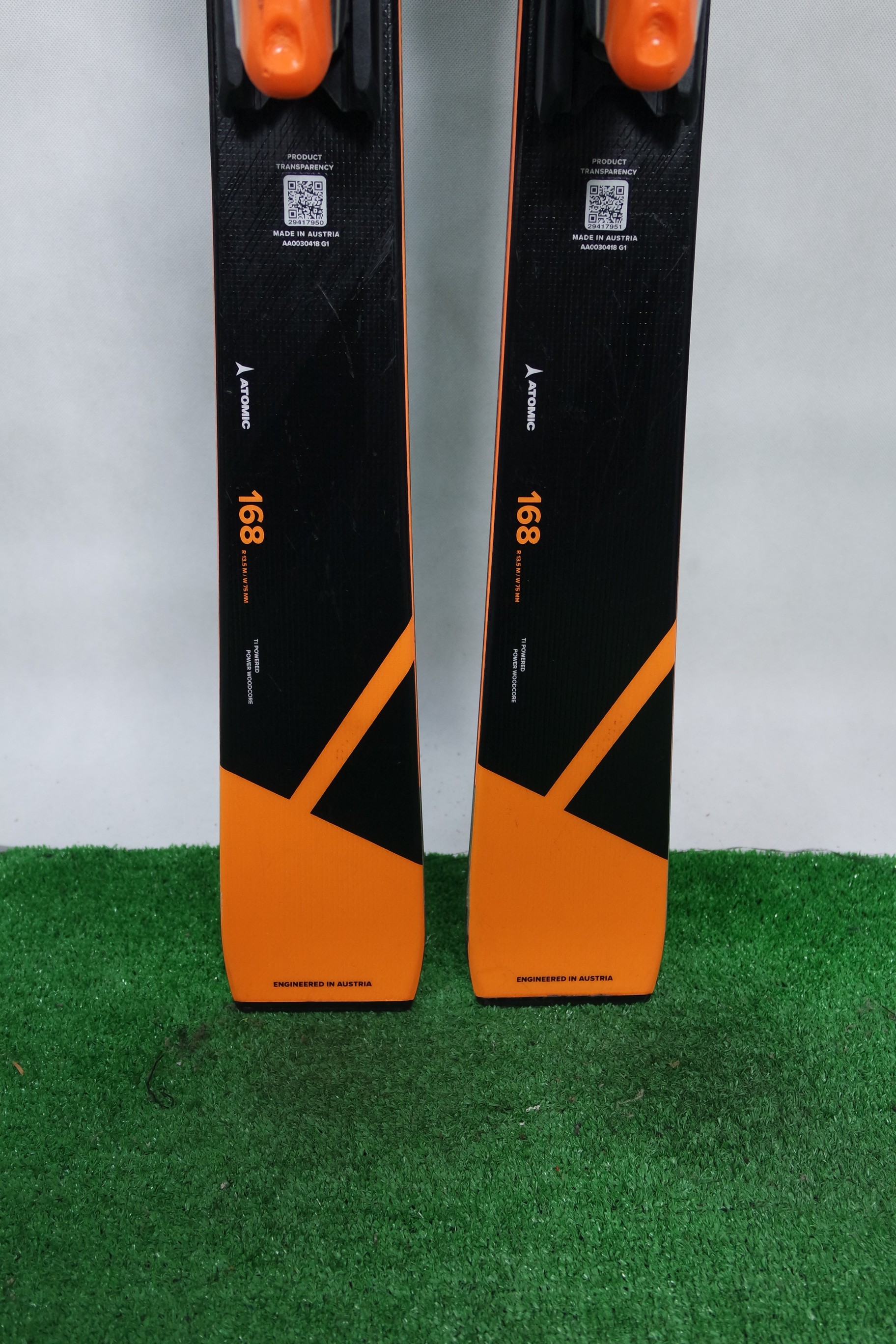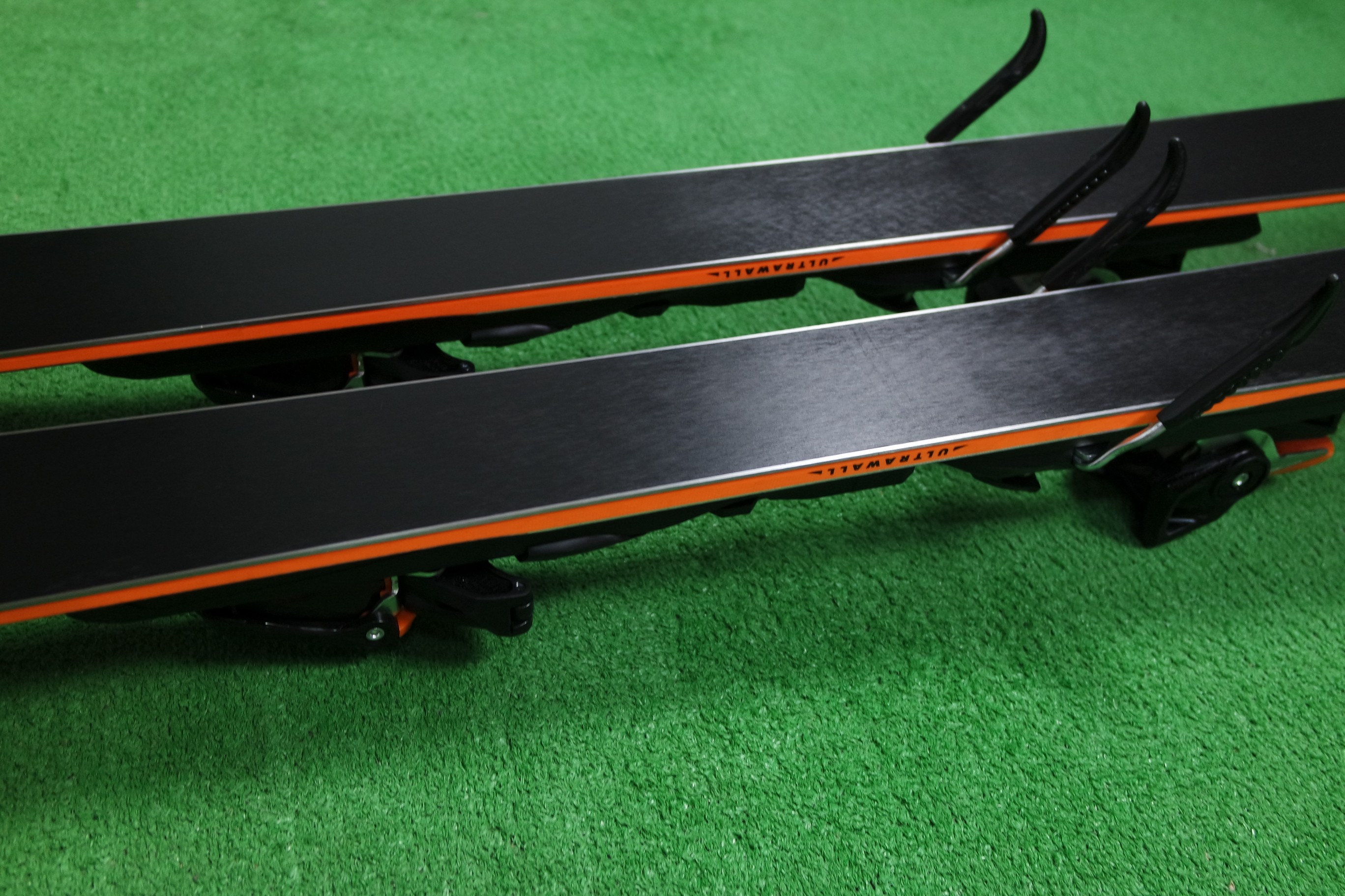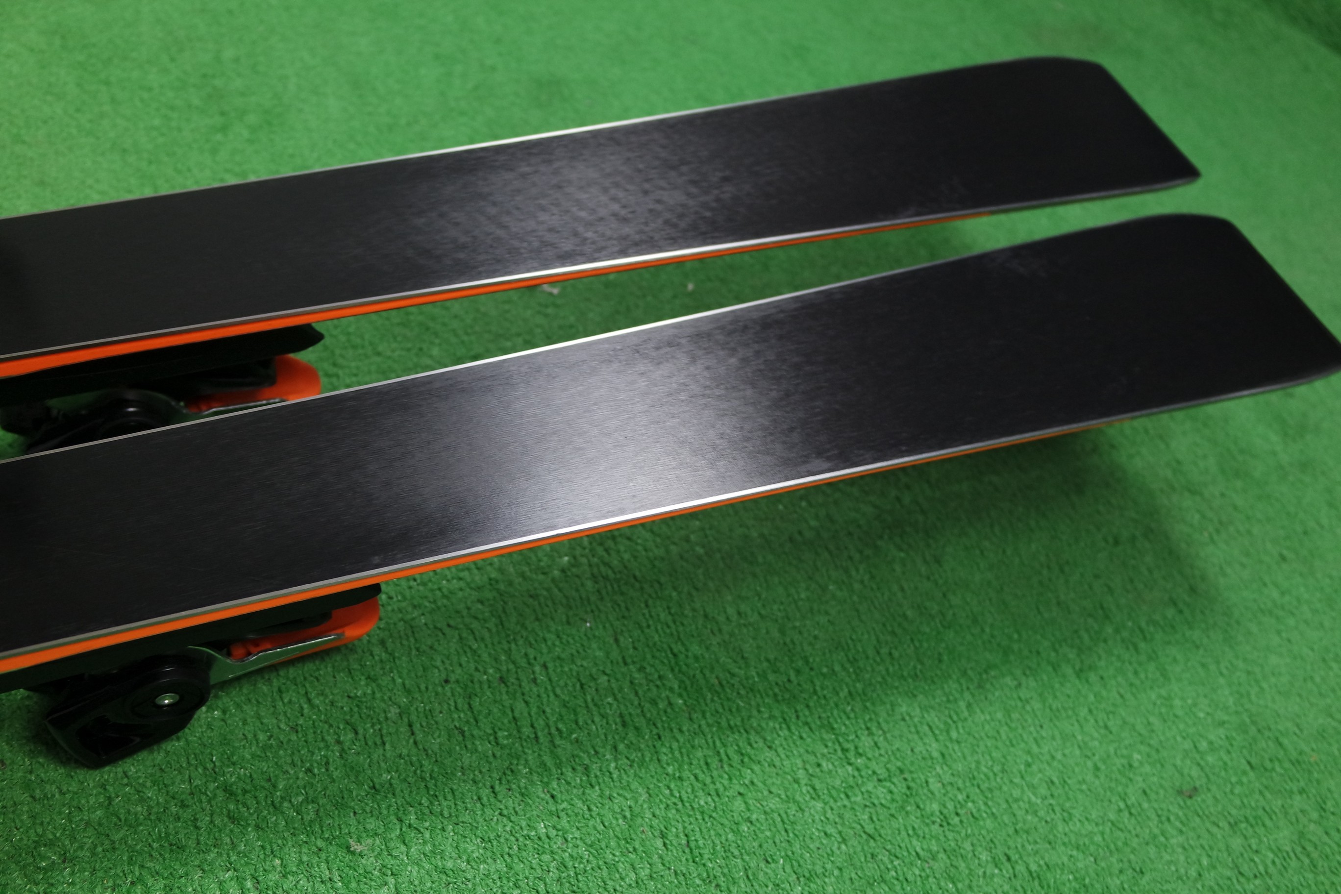 Krawędzie w nartach są grube, ślizgi równe, czyste.