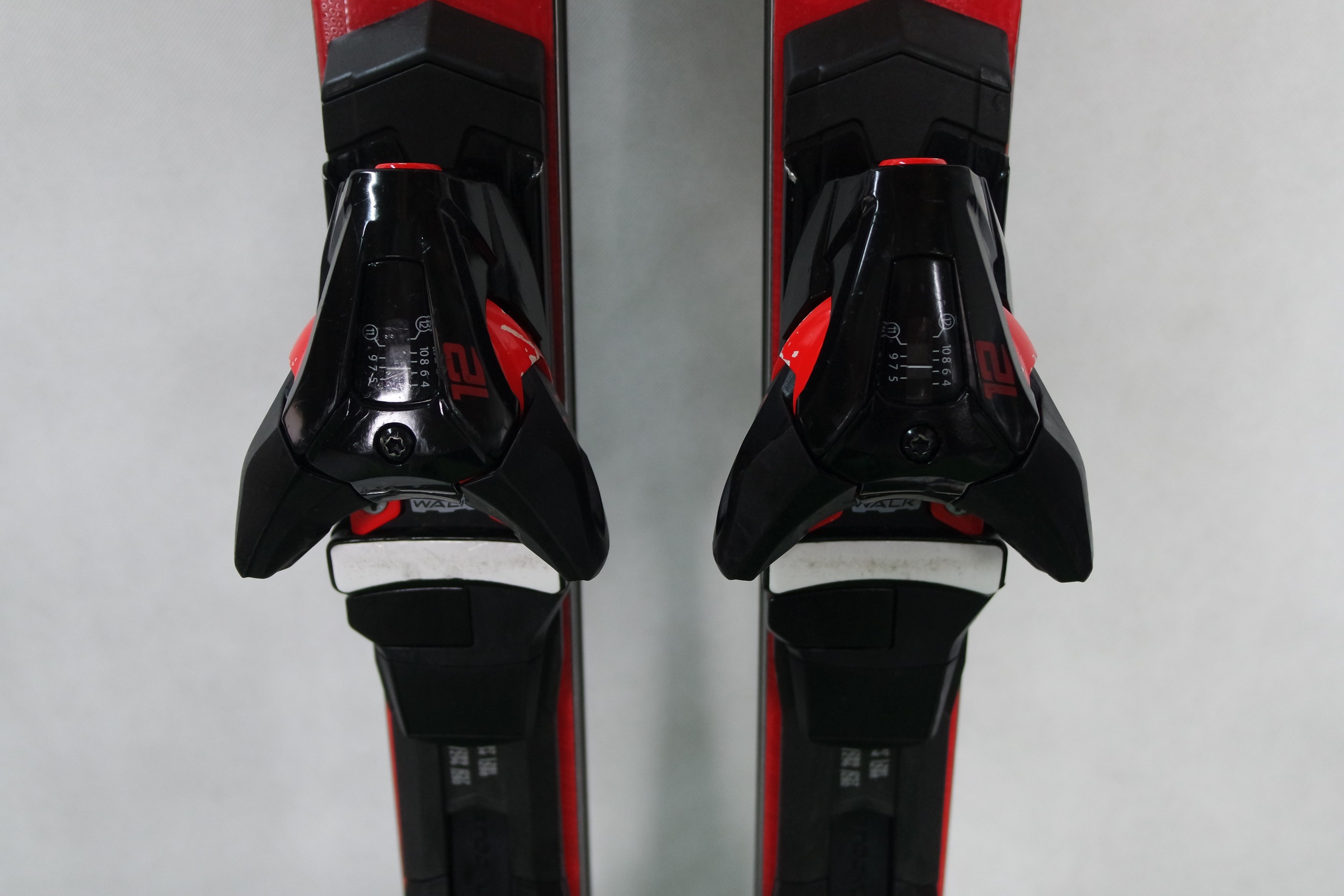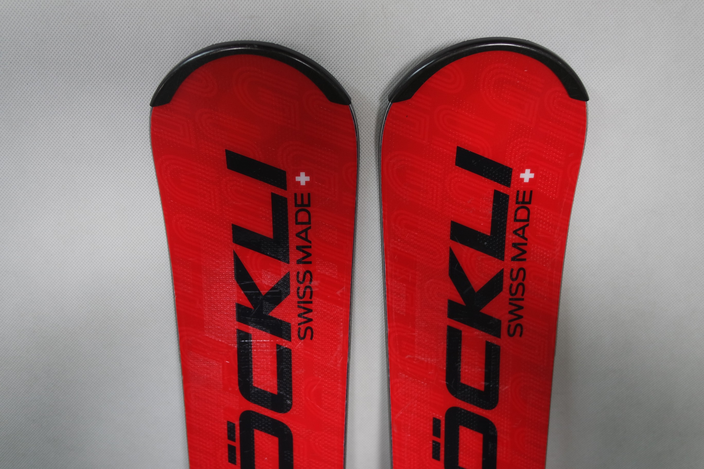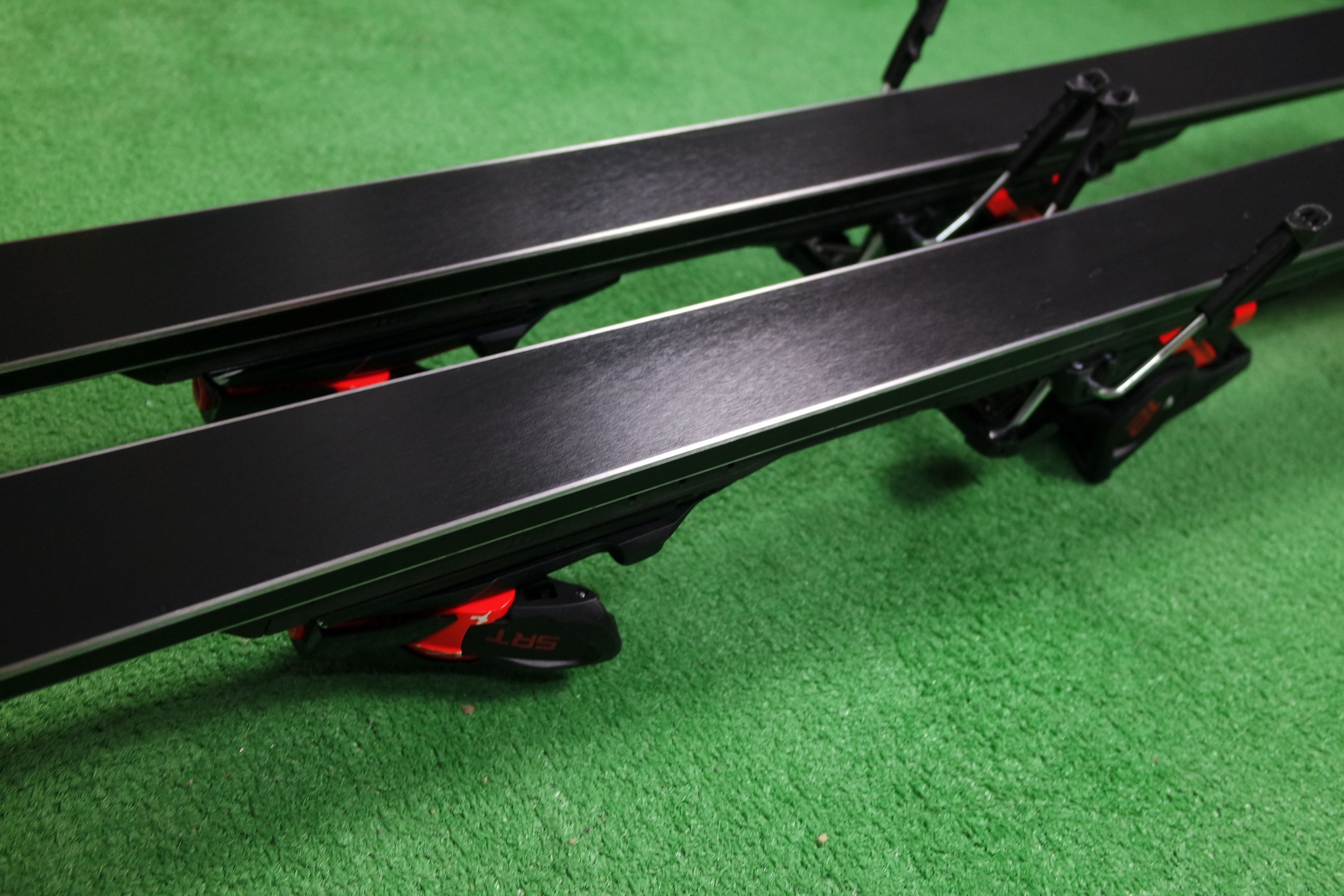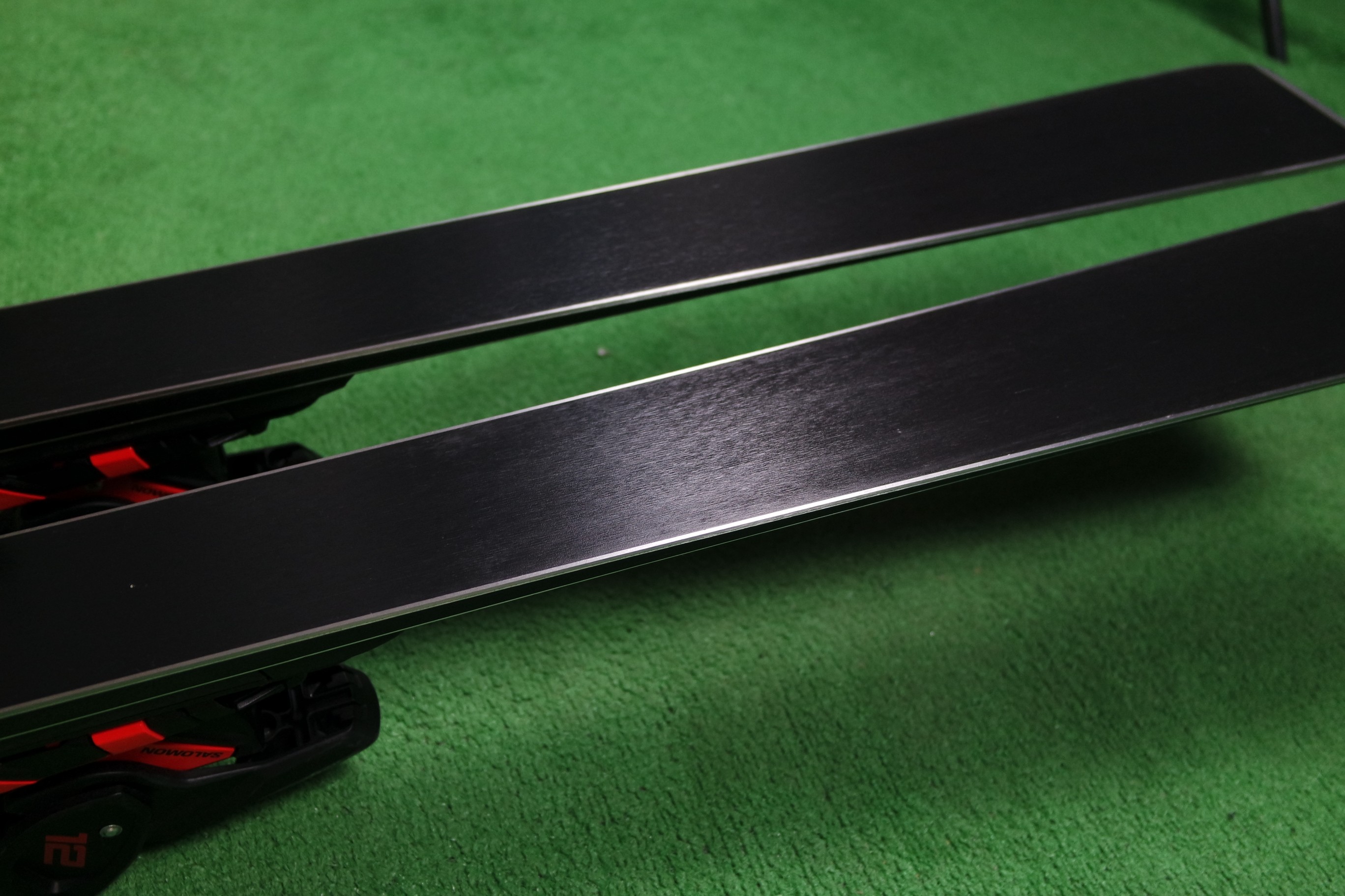 Krawędzie w nartach są grube, ślizgi równe, czyste.