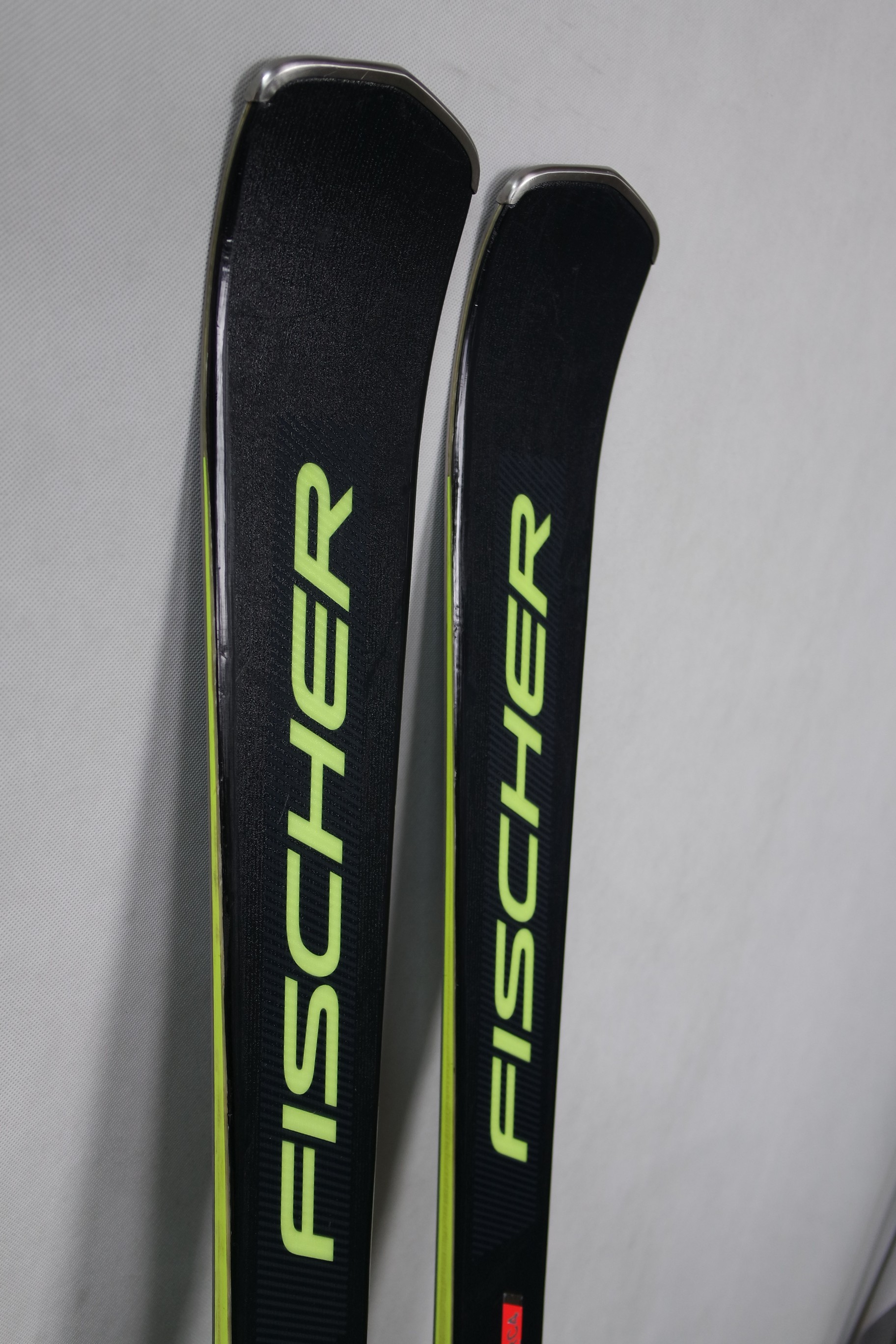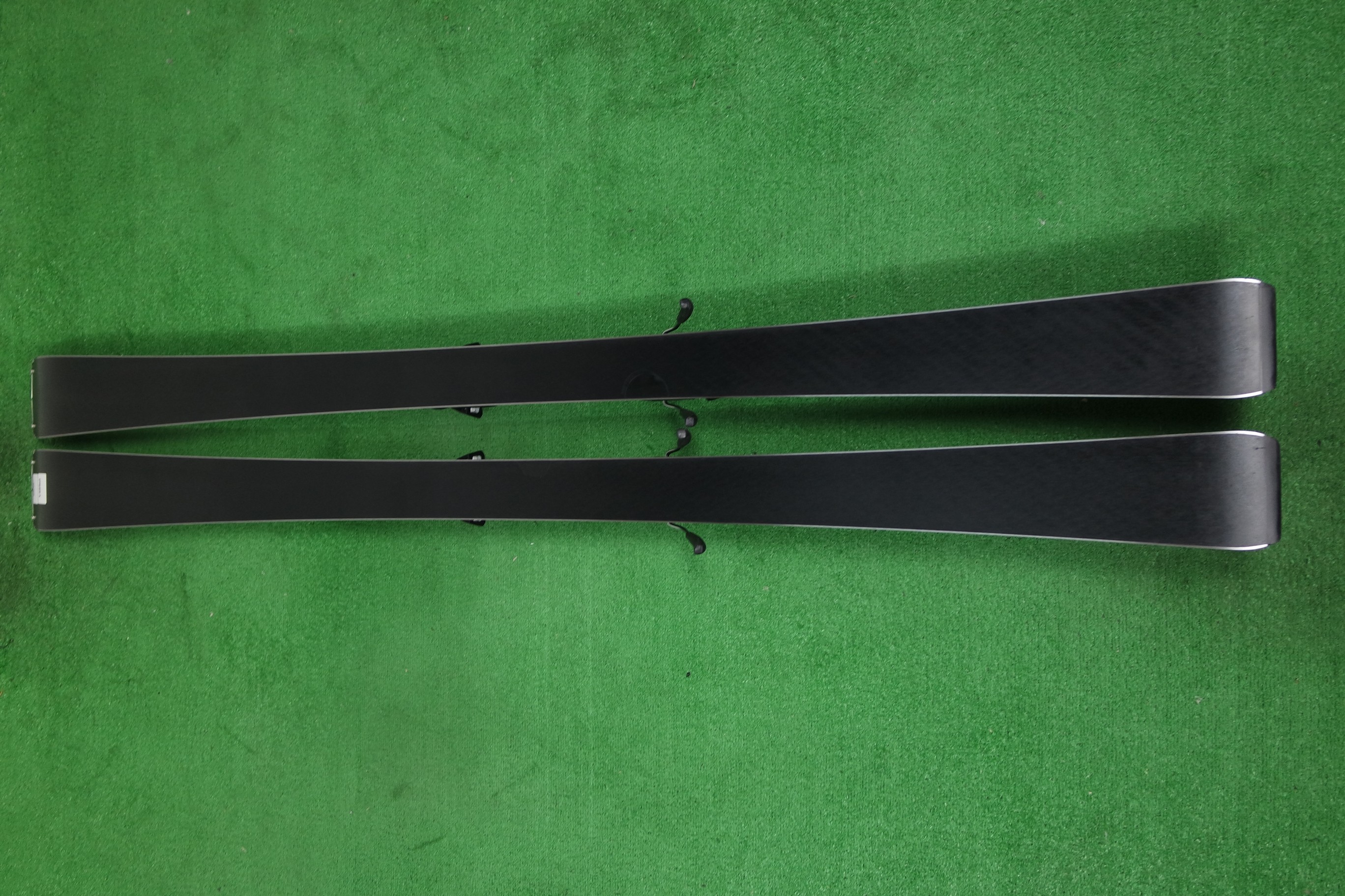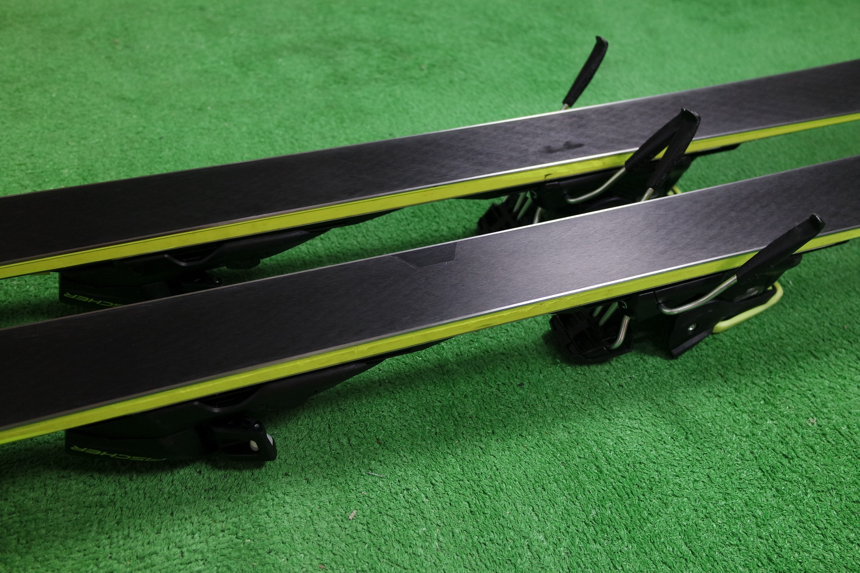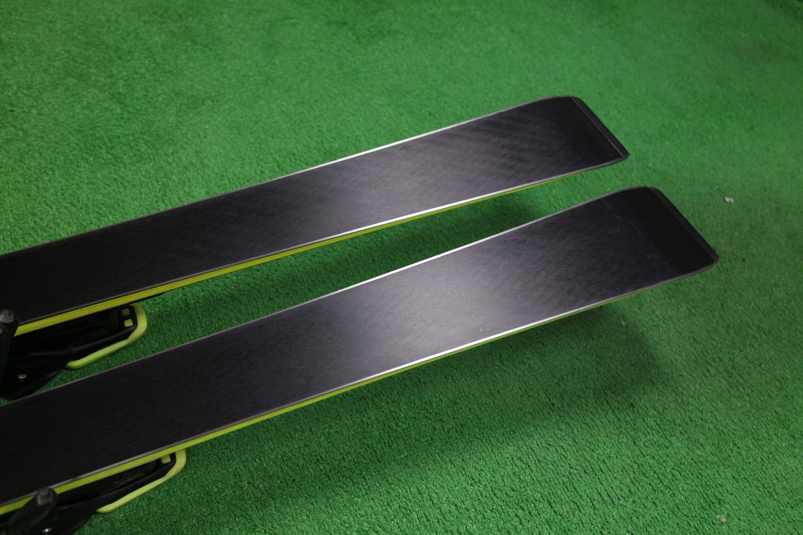 Krawędzie w nartach są grube, ślizgi równe, czyste.