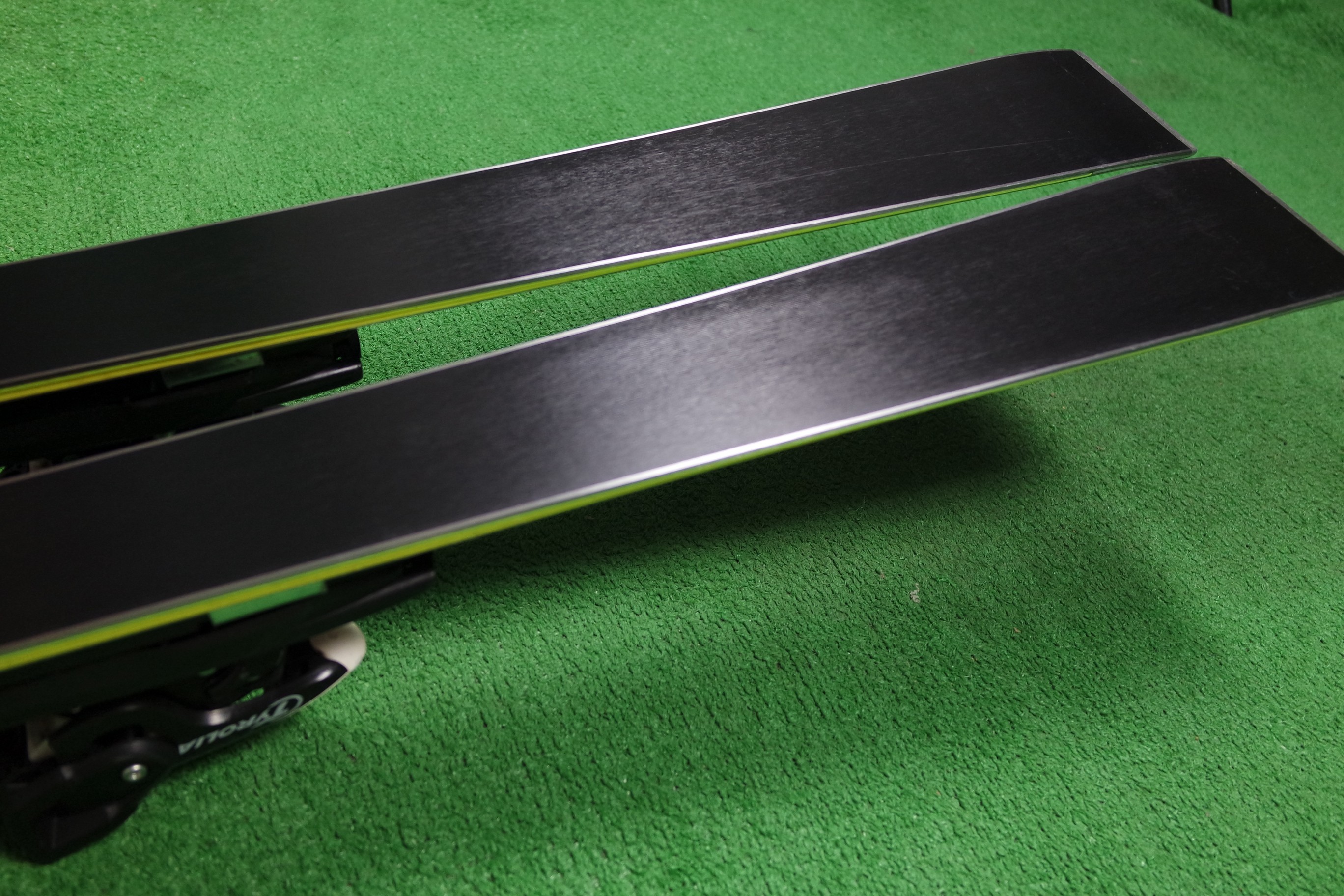 Krawędzie w nartach są grube, ślizgi równe, czyste.