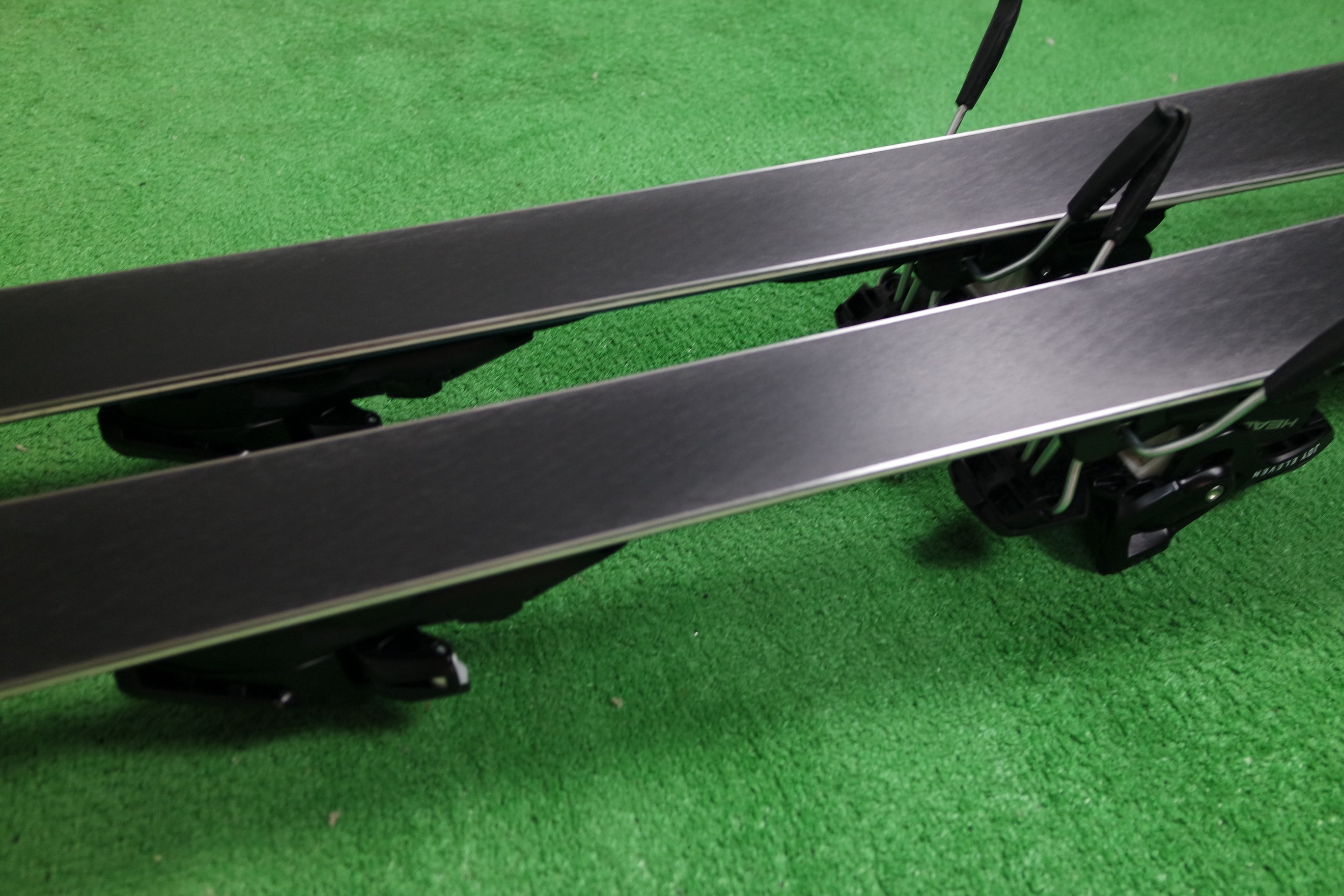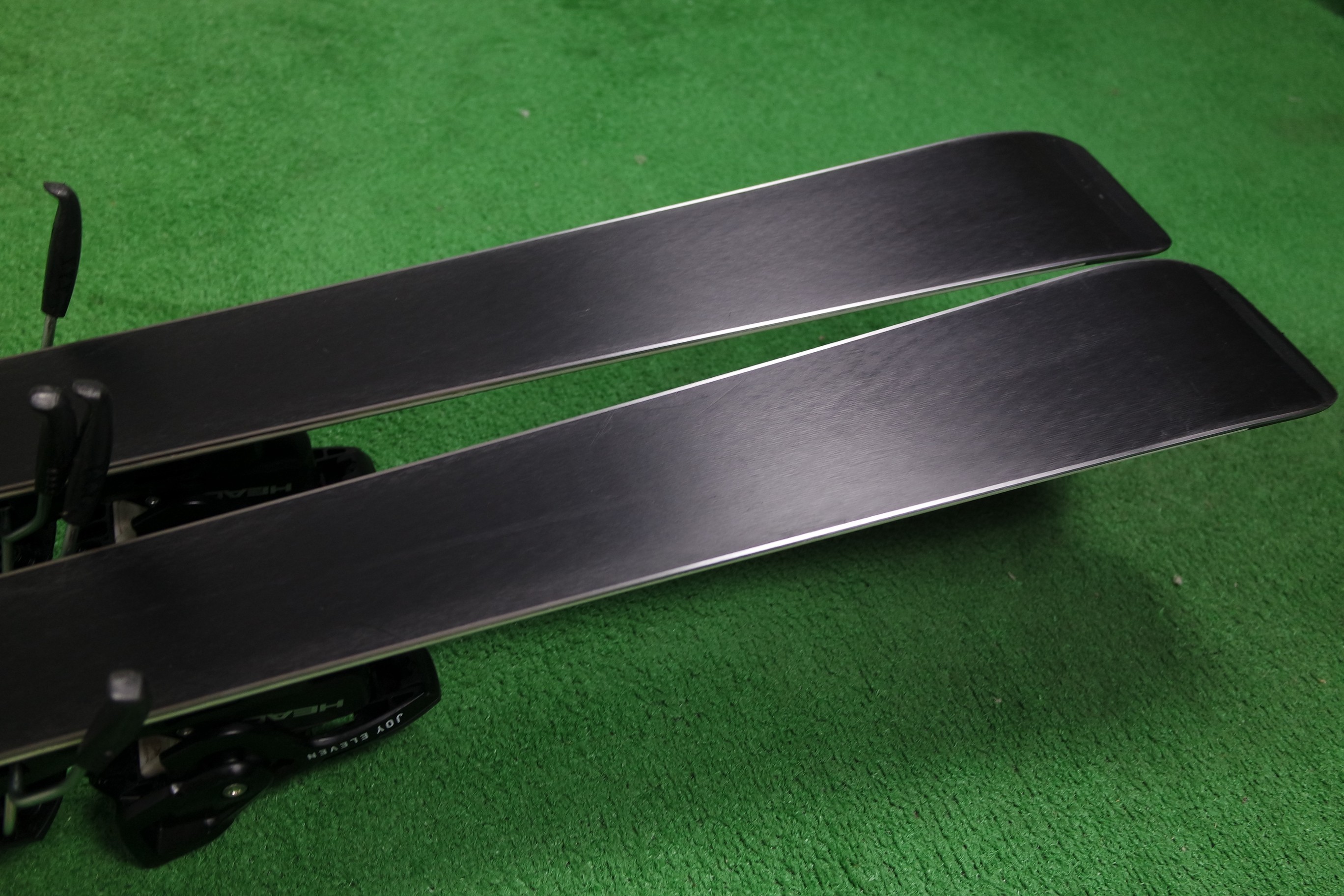 Krawędzie w nartach są grube, ślizgi równe, czyste.
