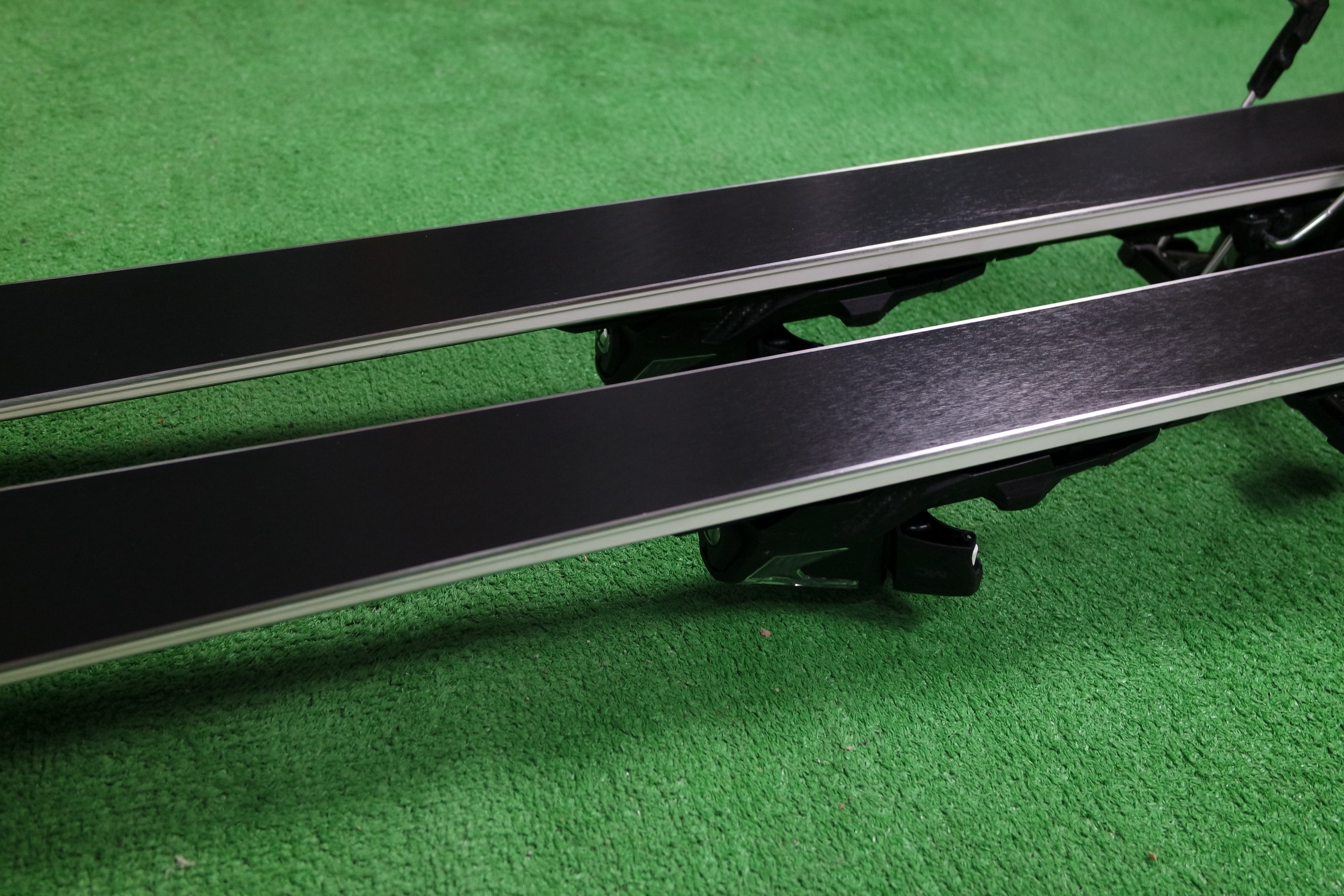 Krawędzie w nartach są grube, ślizgi równe, czyste.