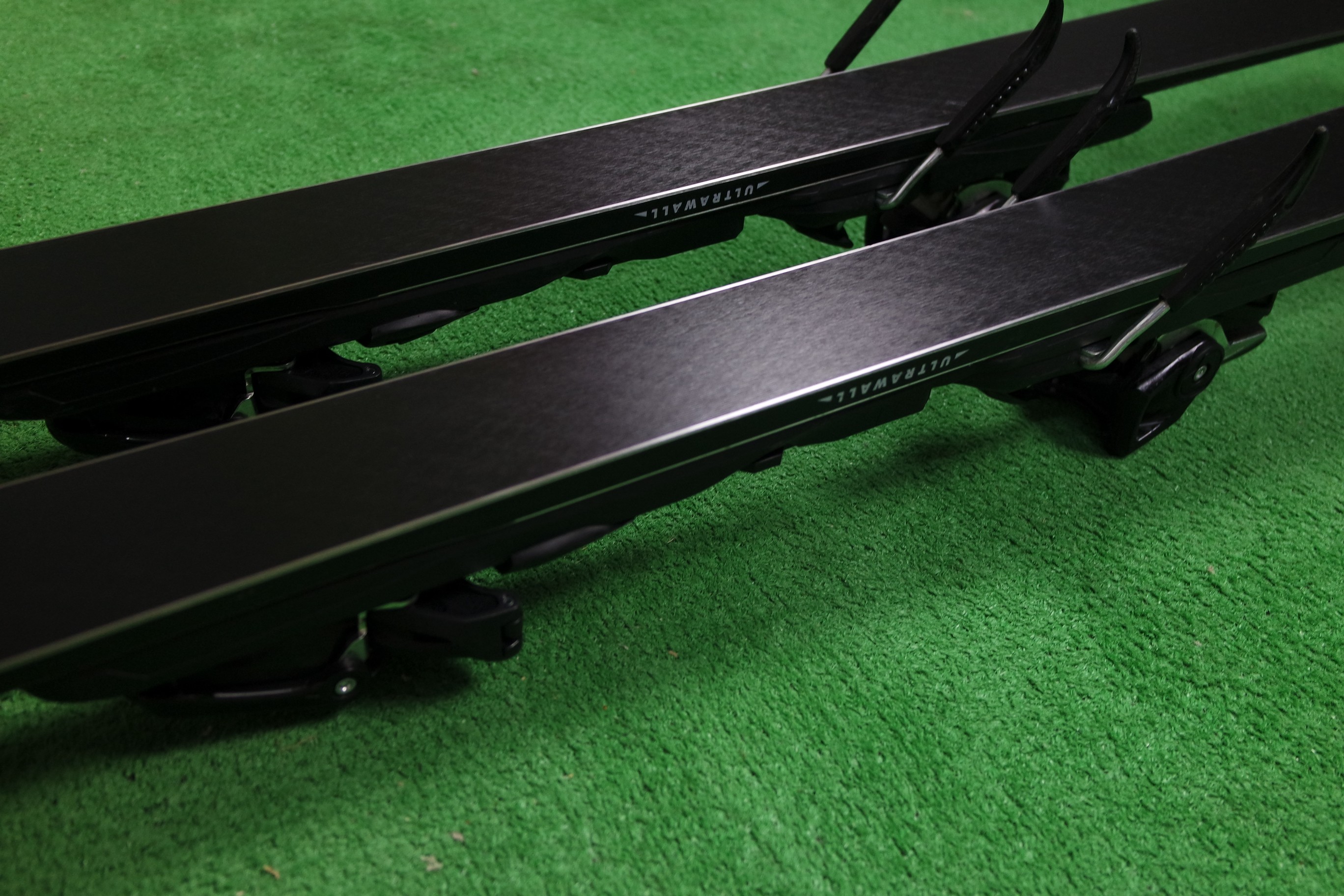 Krawędzie w nartach są grube, ślizgi równe, czyste.