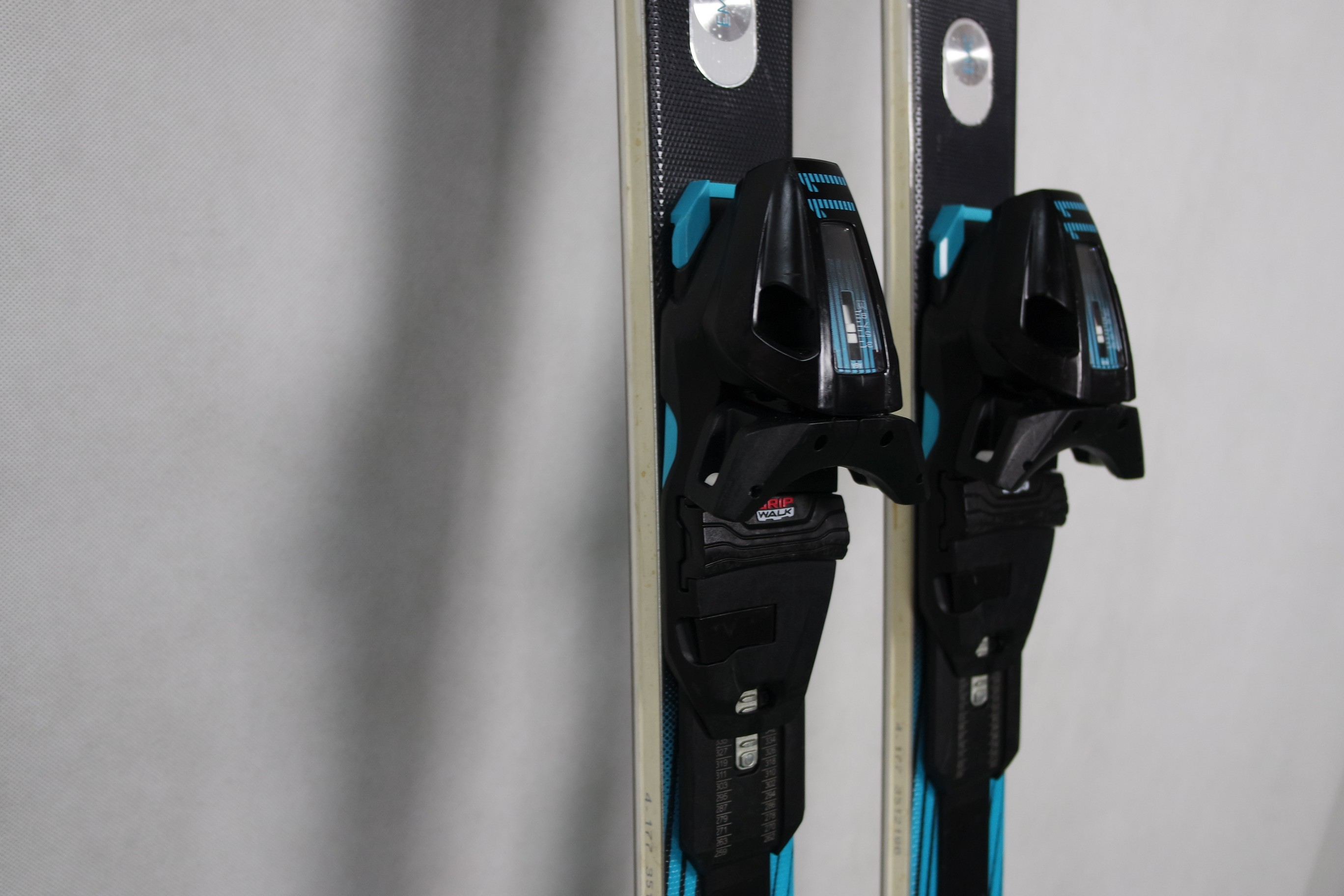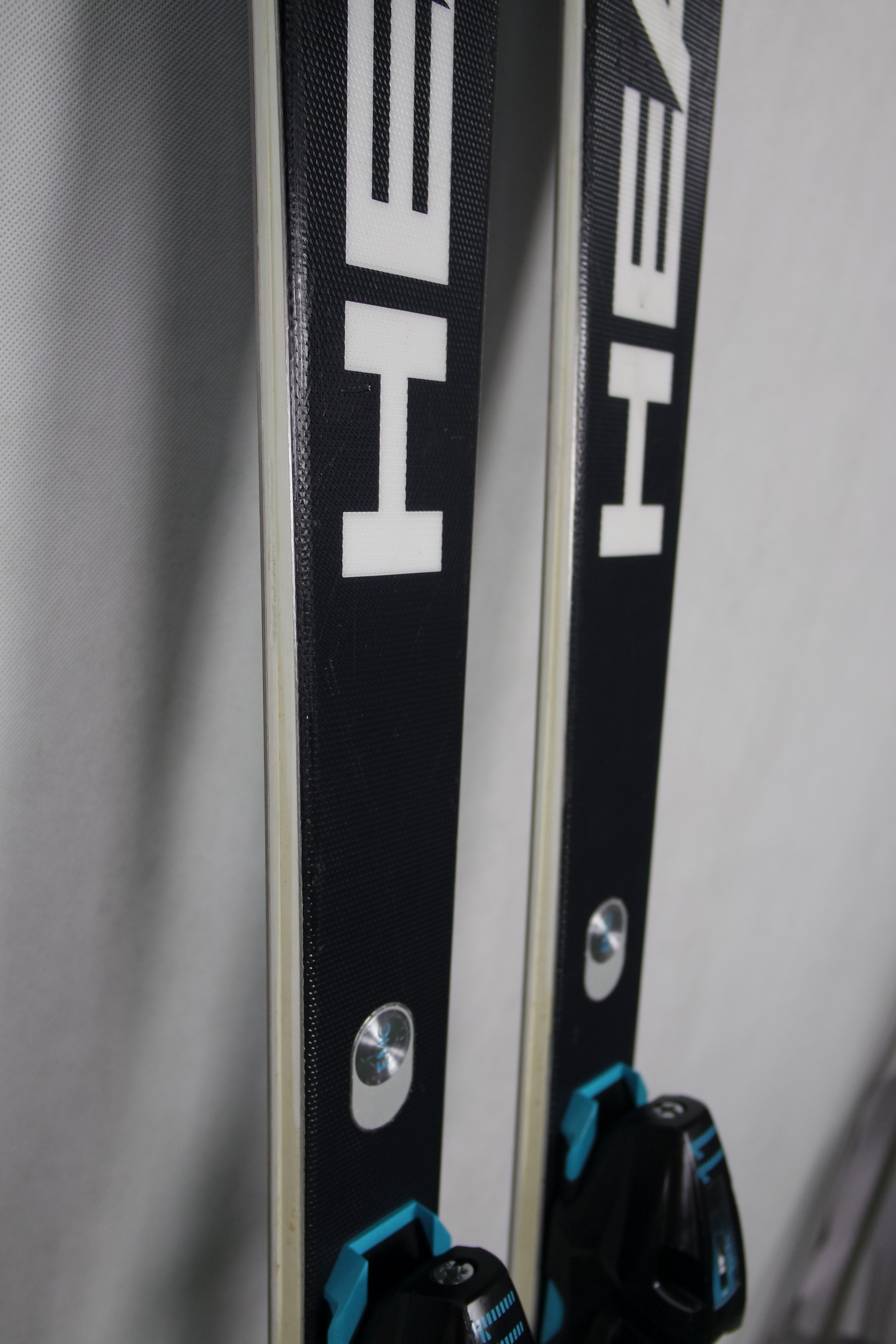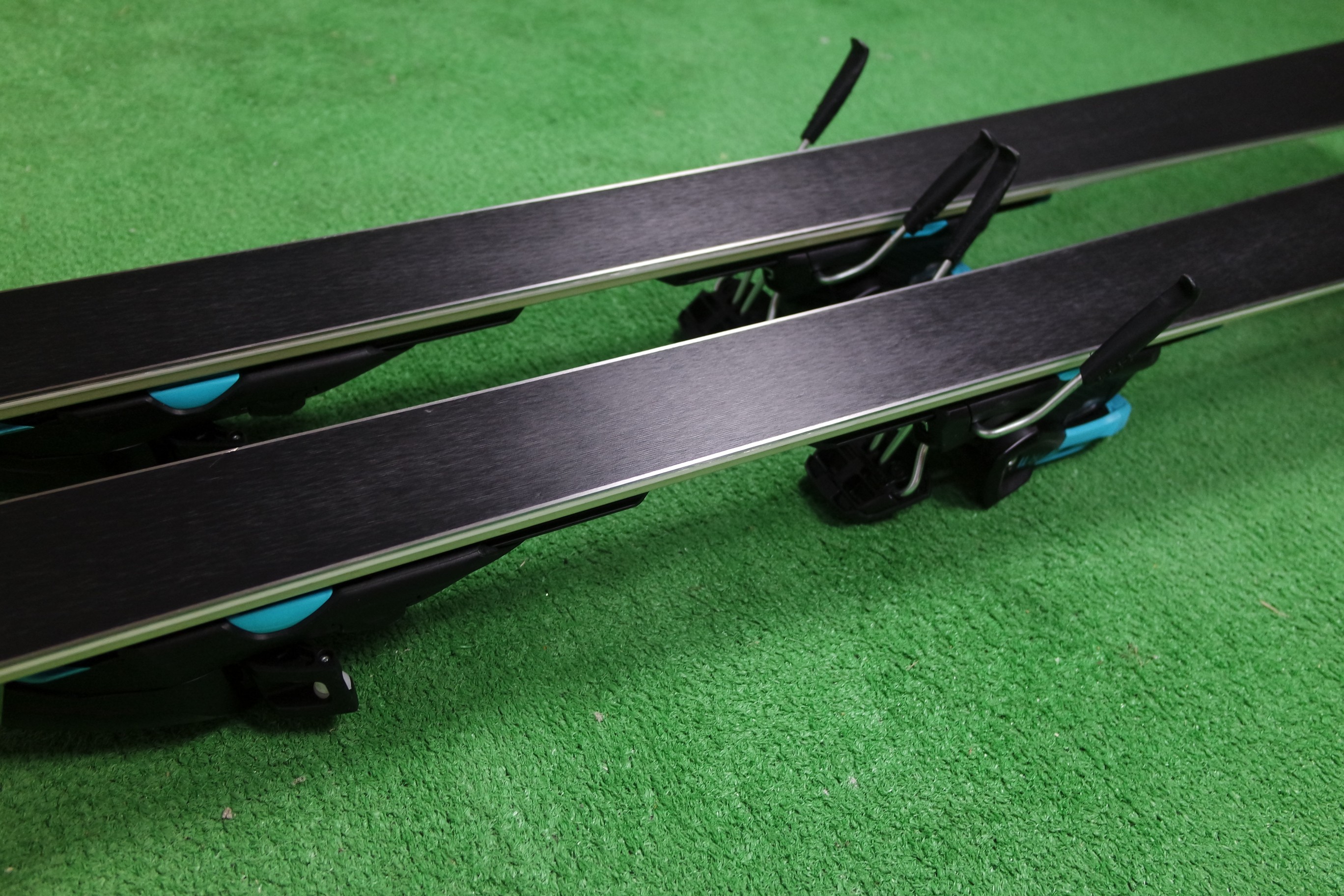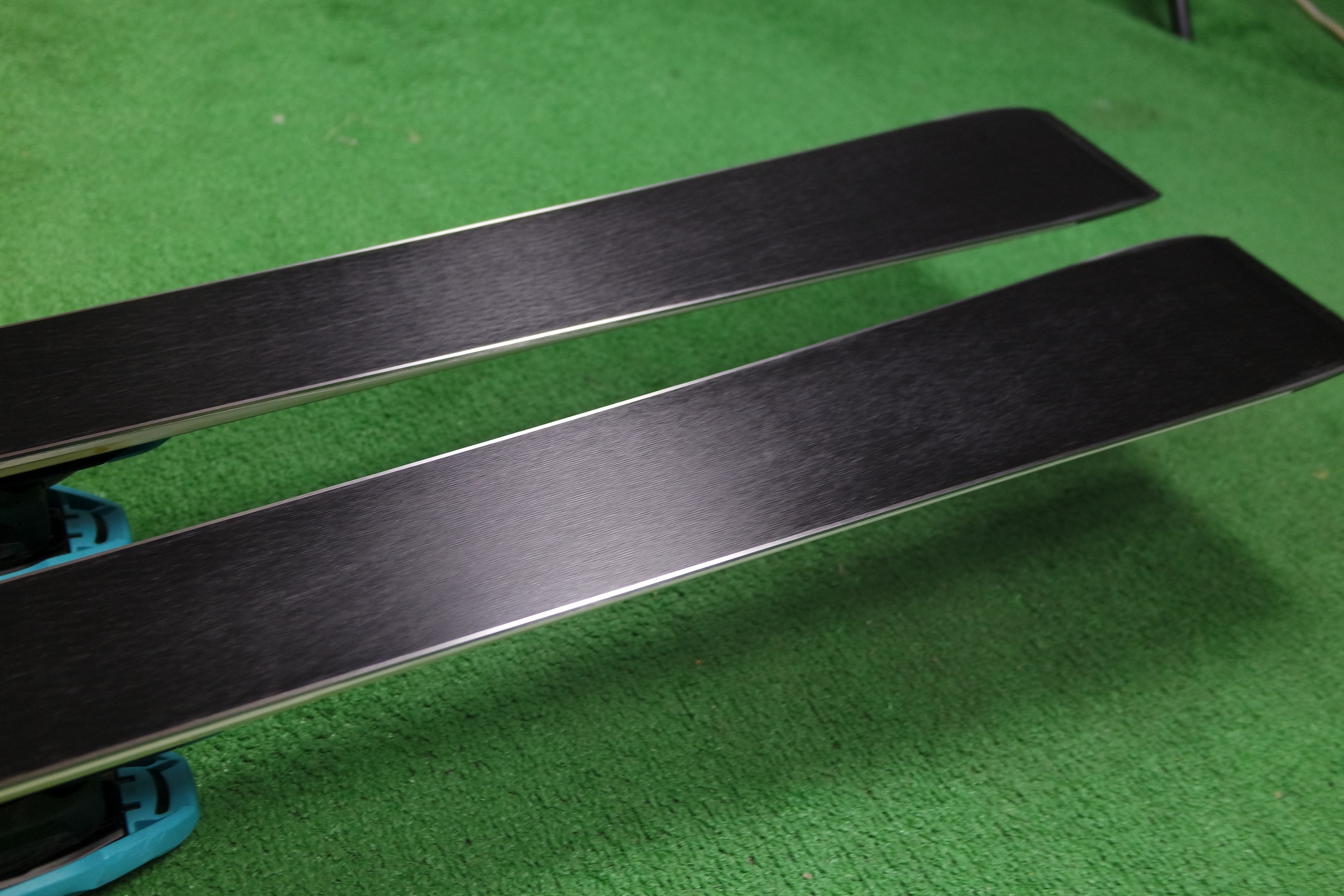 Krawędzie w nartach są grube, ślizgi równe, czyste.