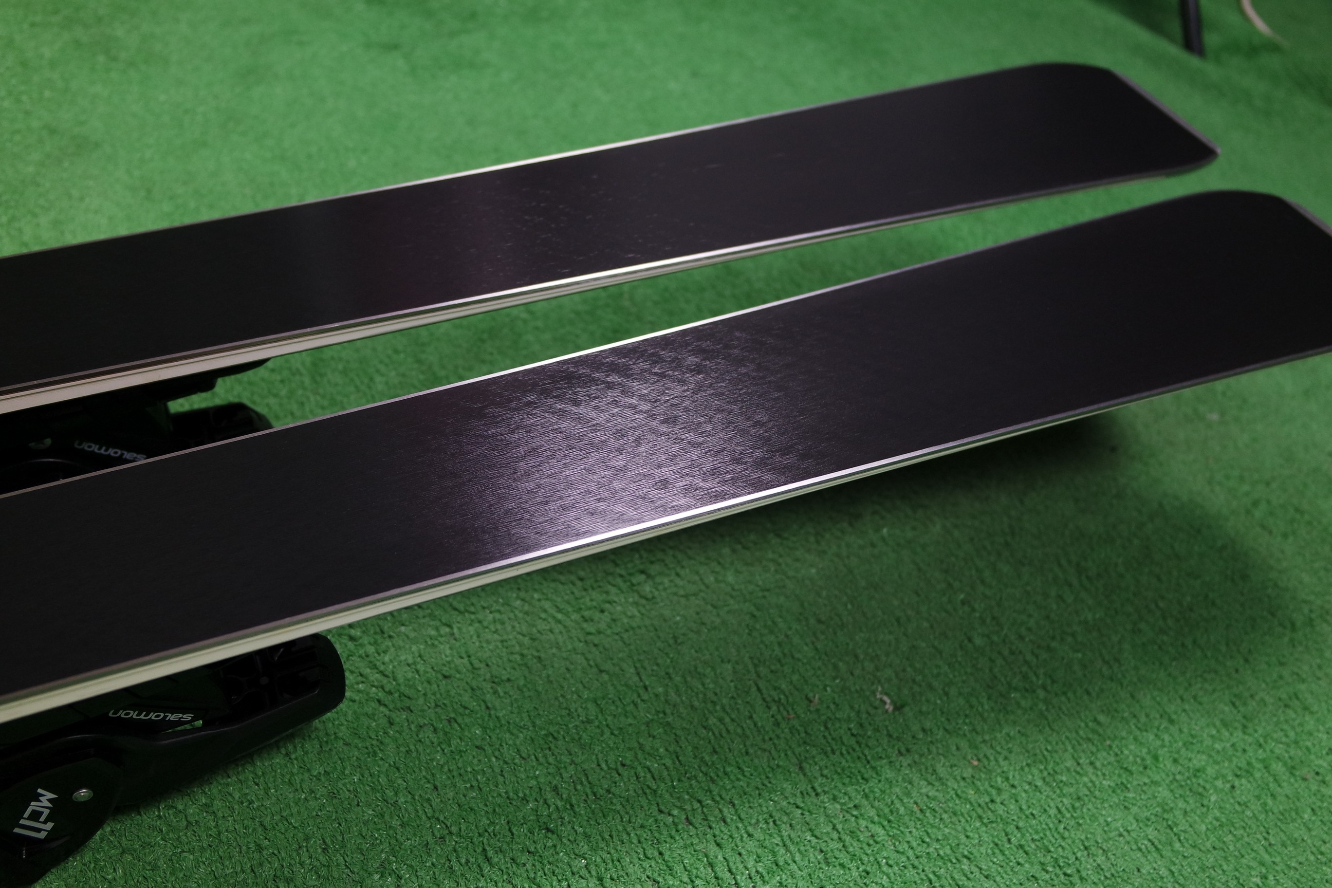 Krawędzie w nartach są grube, ślizgi równe, czyste.
