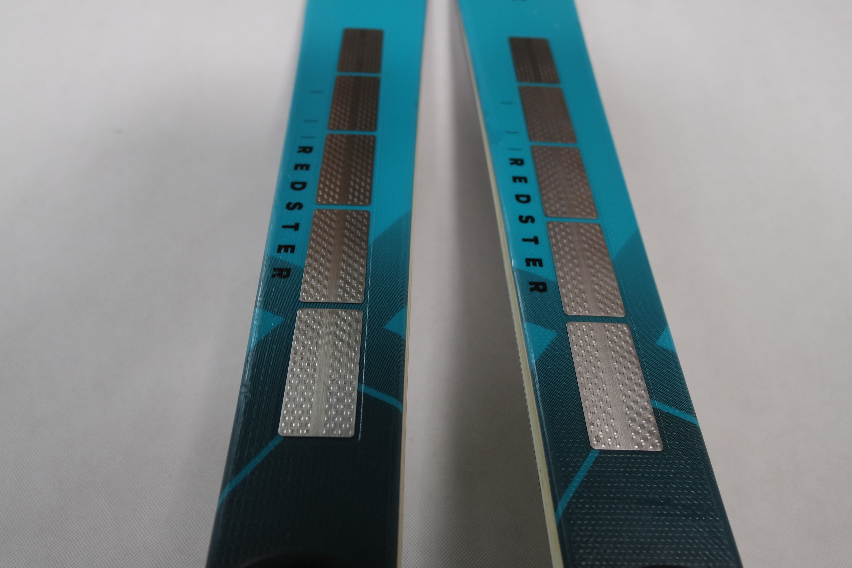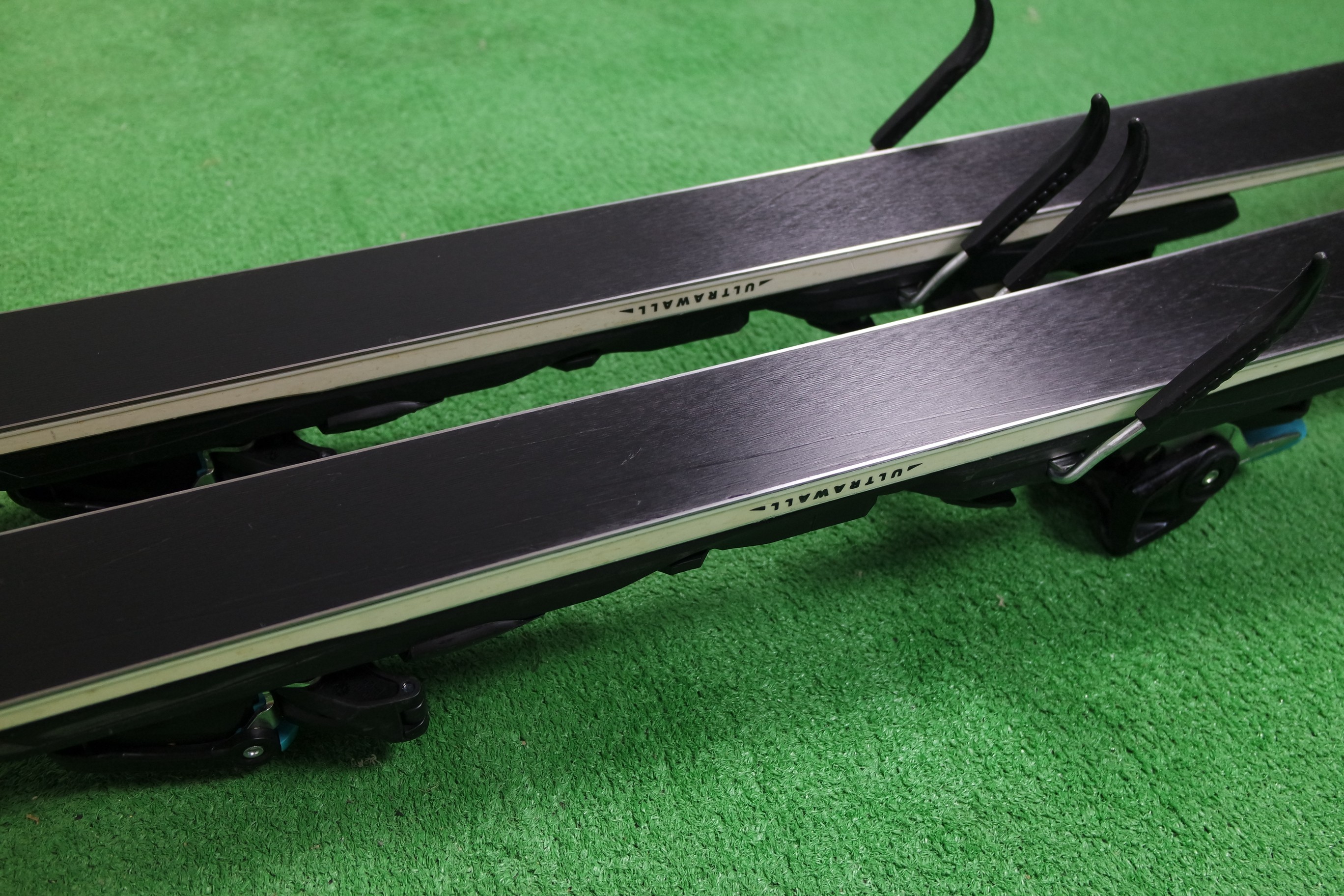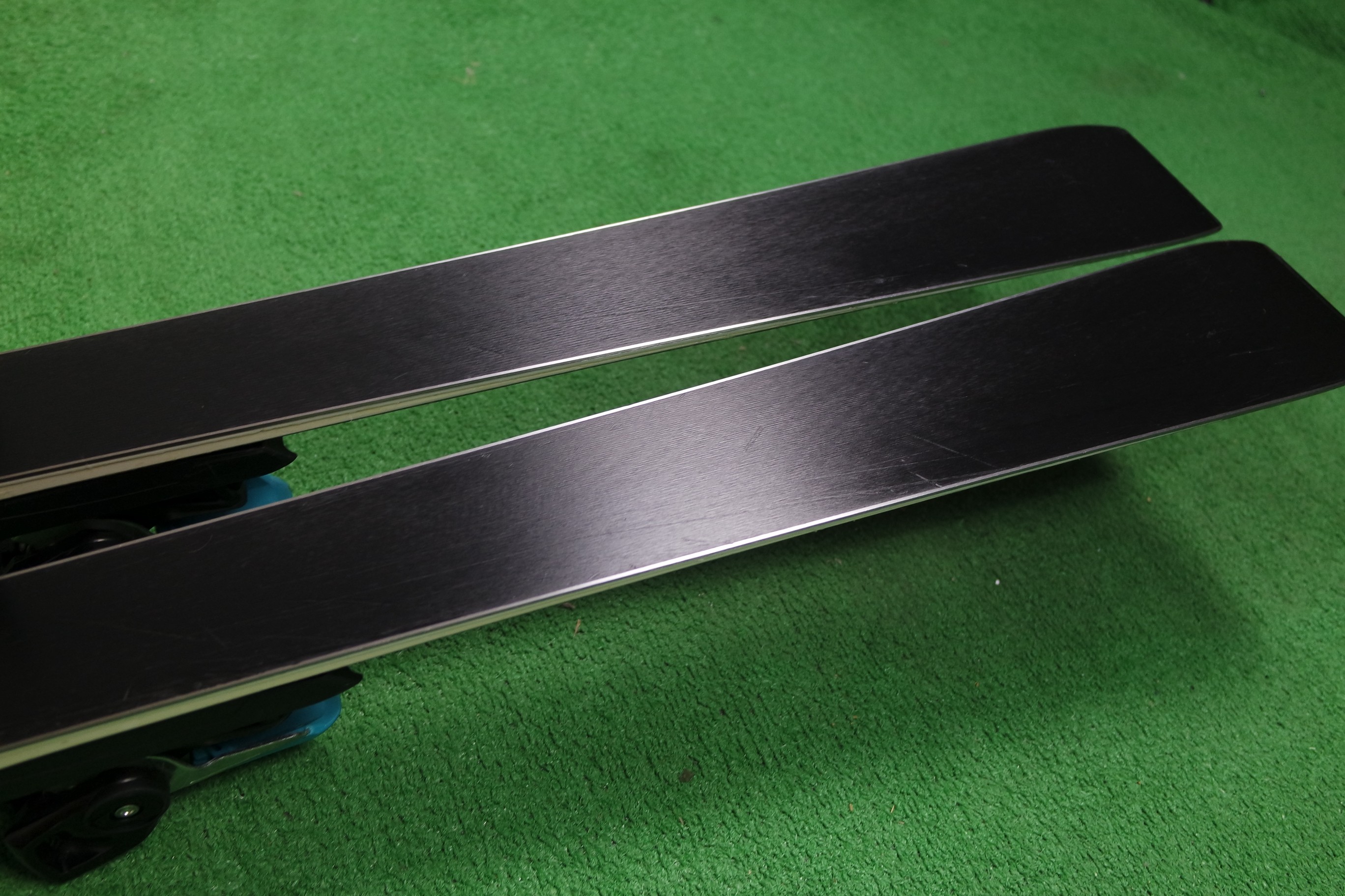 Krawędzie w nartach są grube, ślizgi równe, czyste.