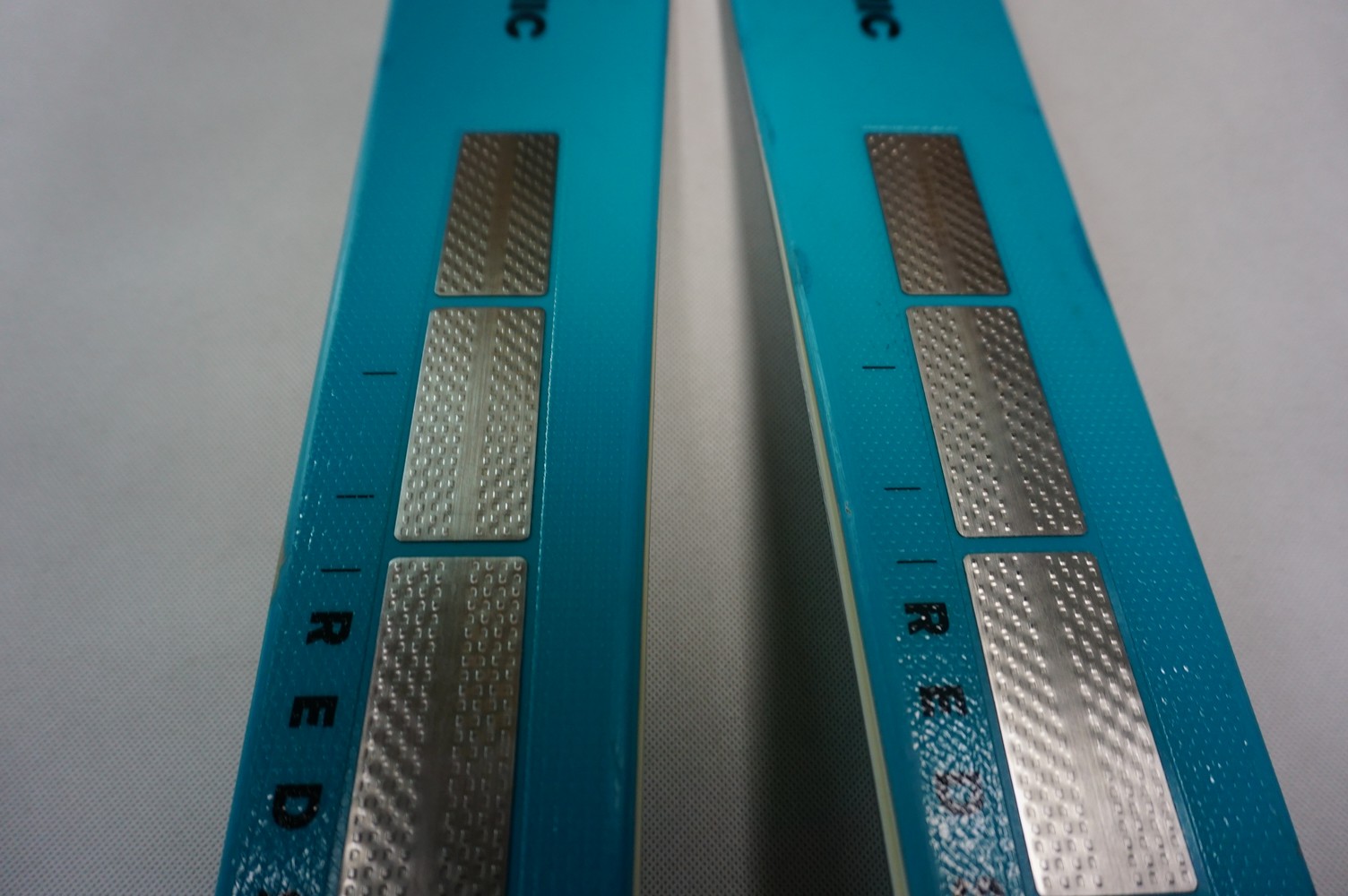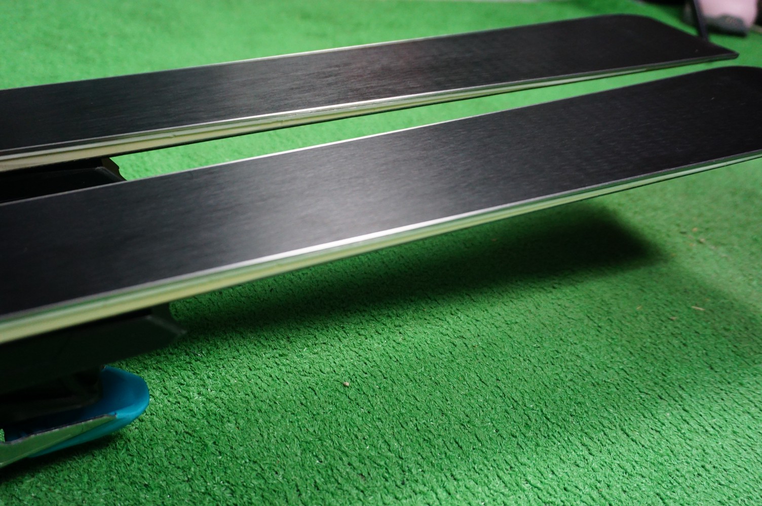 Krawędzie w nartach są grube, ślizgi równe, czyste.