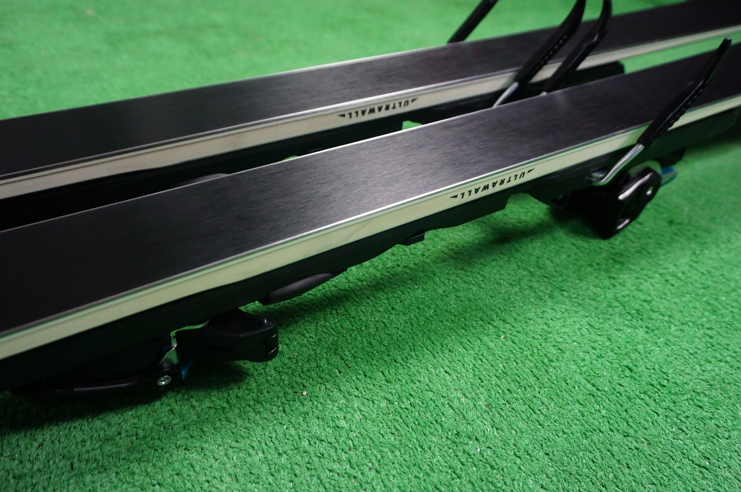 Krawędzie w nartach są grube, ślizgi równe, czyste.