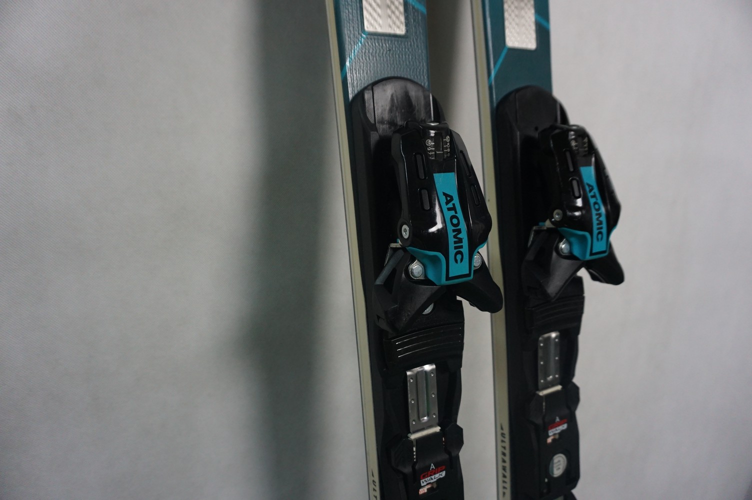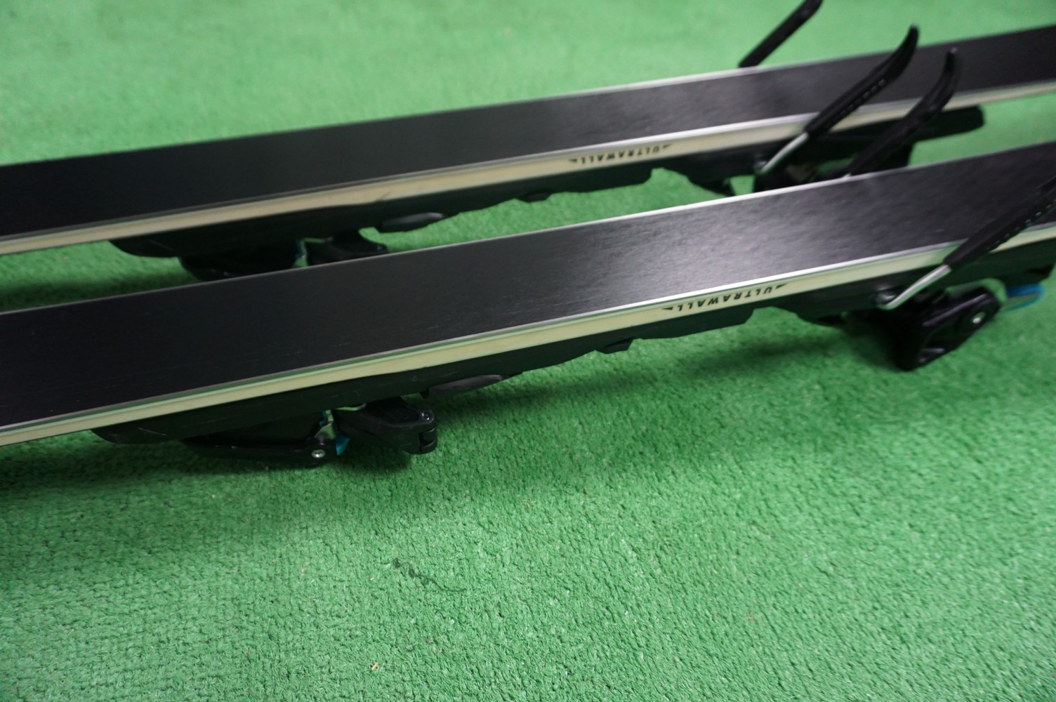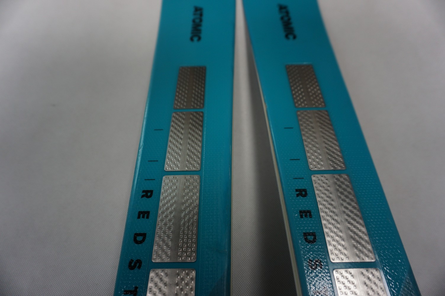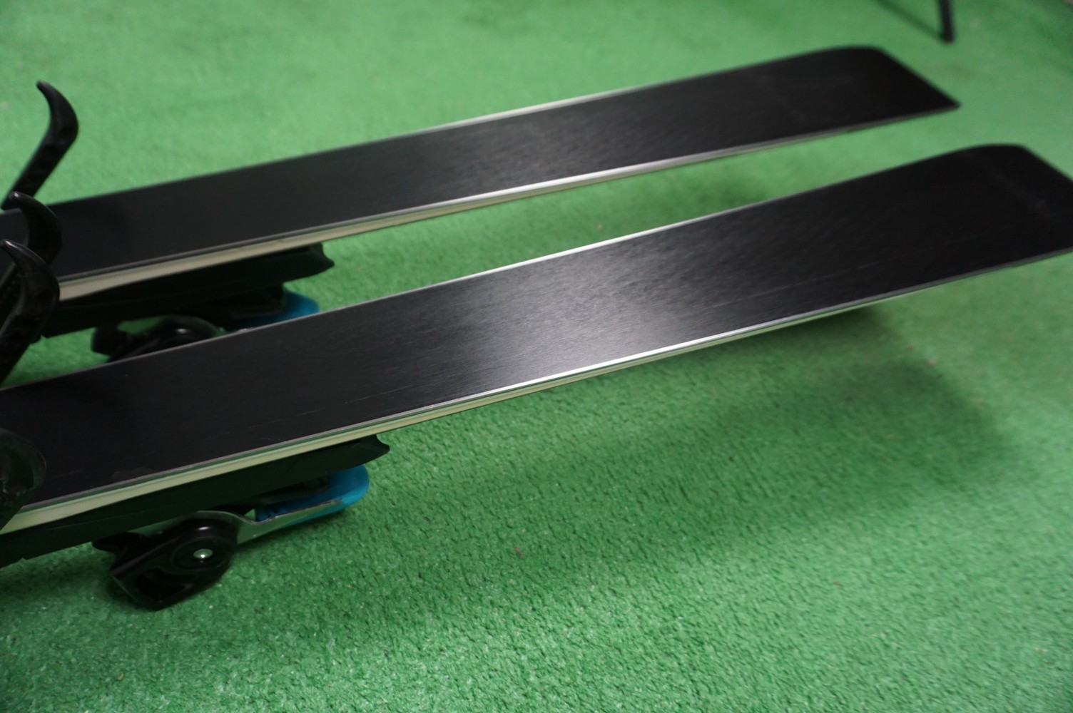 Krawędzie w nartach są grube, ślizgi równe, czyste.