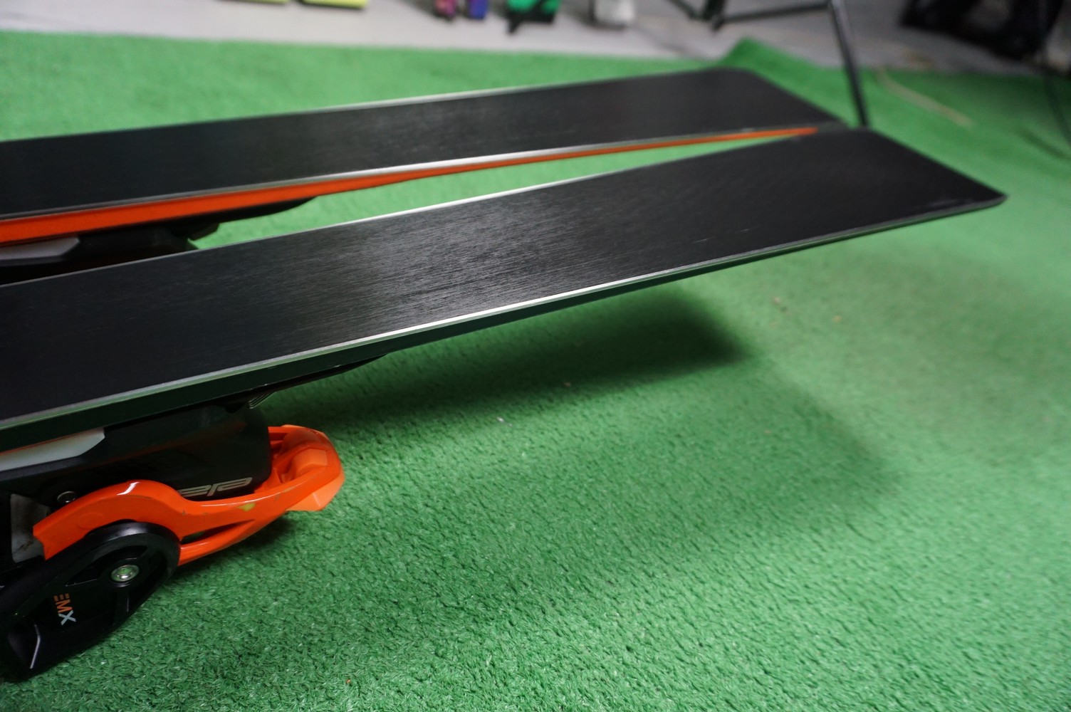 Krawędzie w nartach są grube, ślizgi równe, czyste.