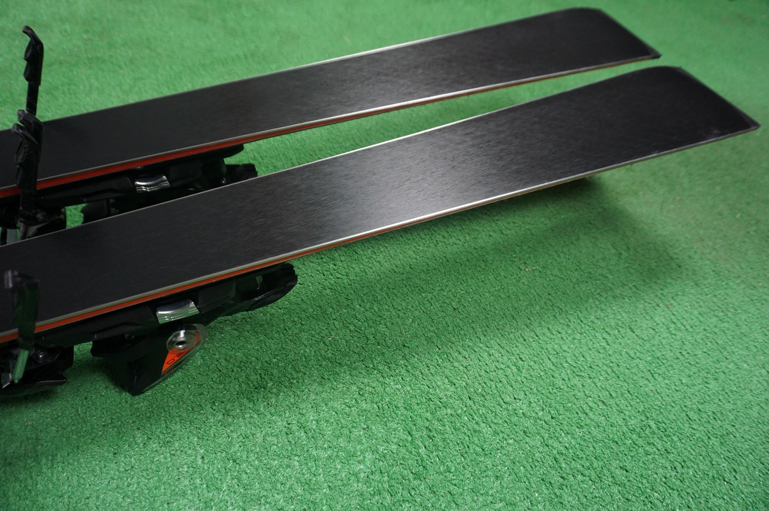 Krawędzie w nartach są grube, ślizgi równe, czyste.