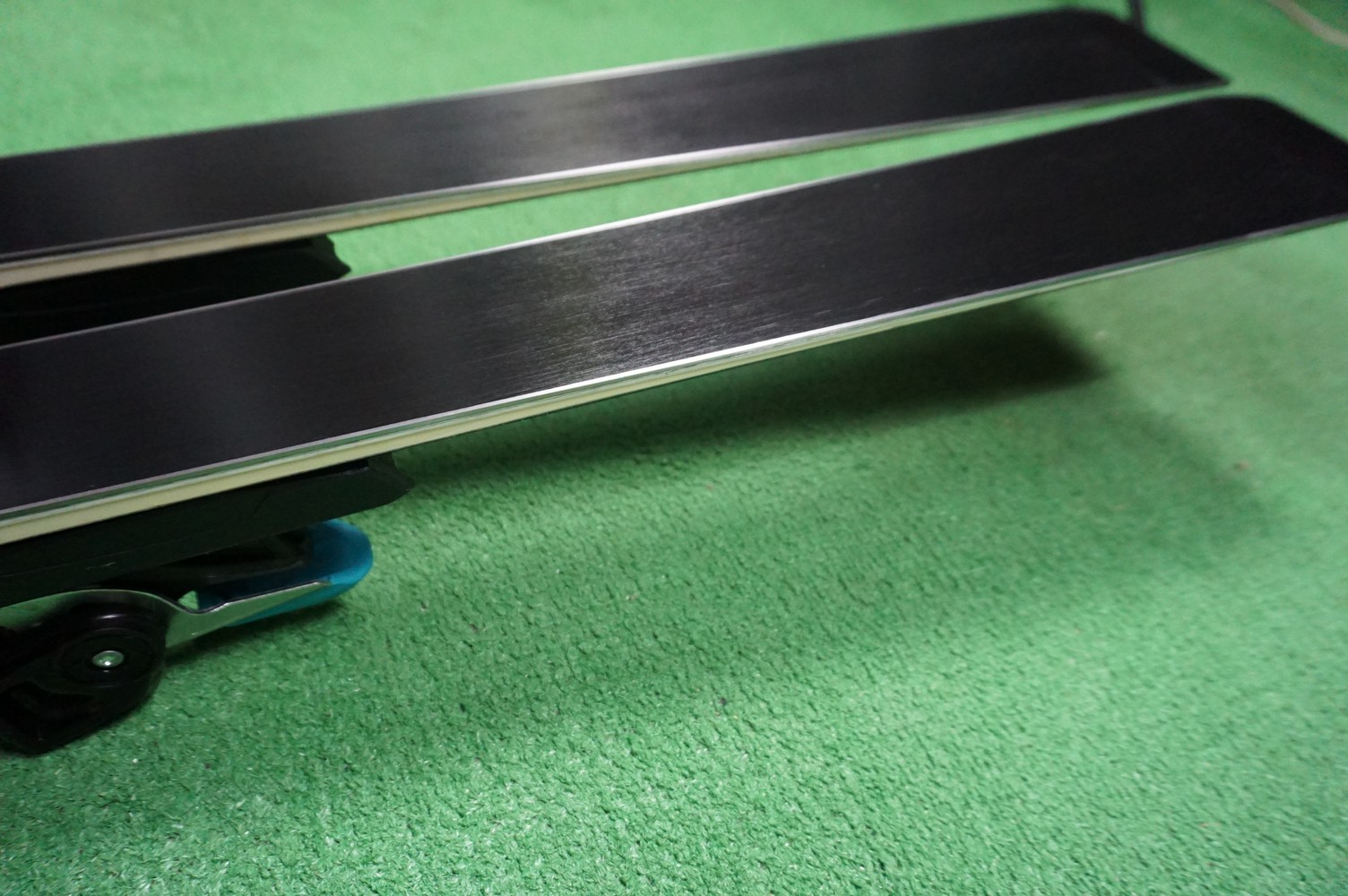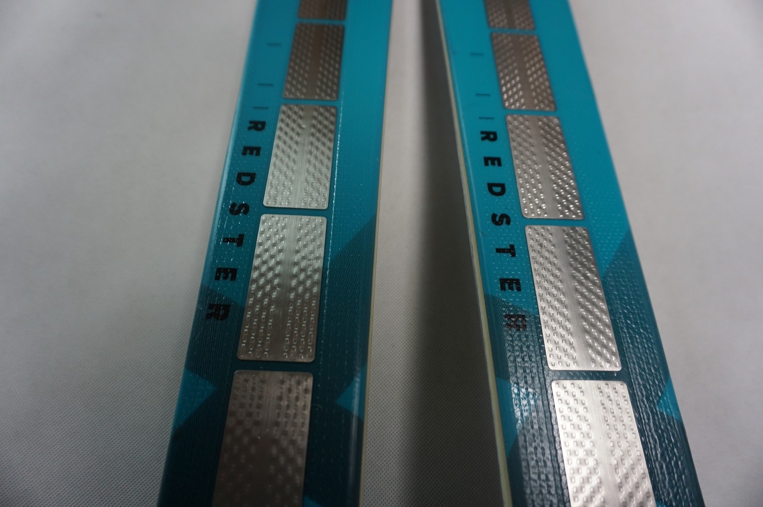 Krawędzie w nartach są grube, ślizgi równe, czyste.