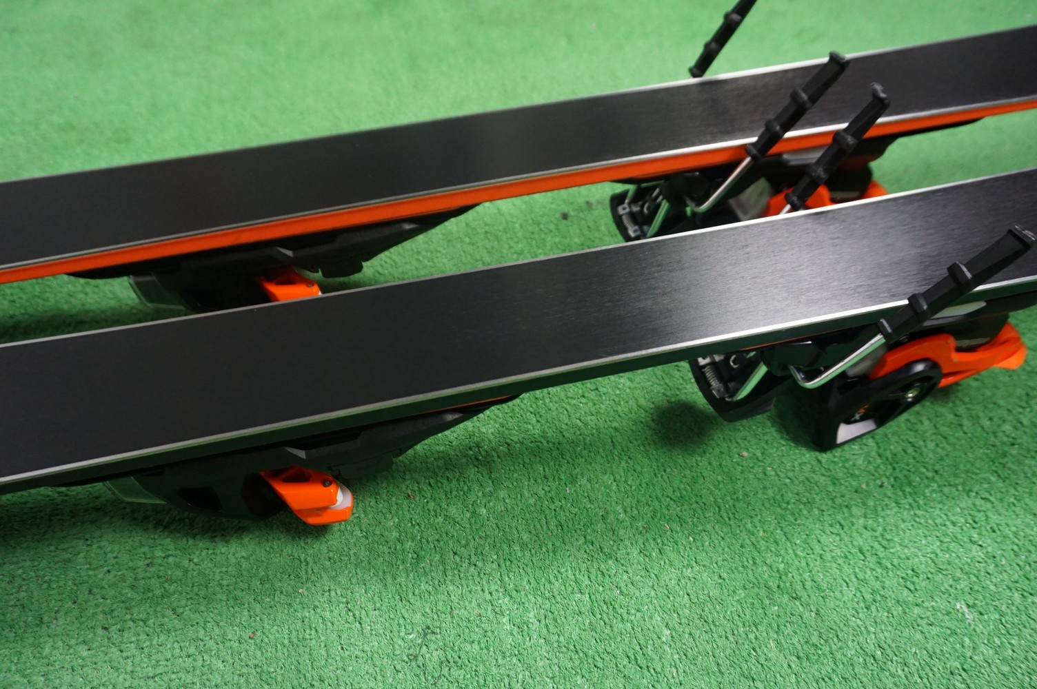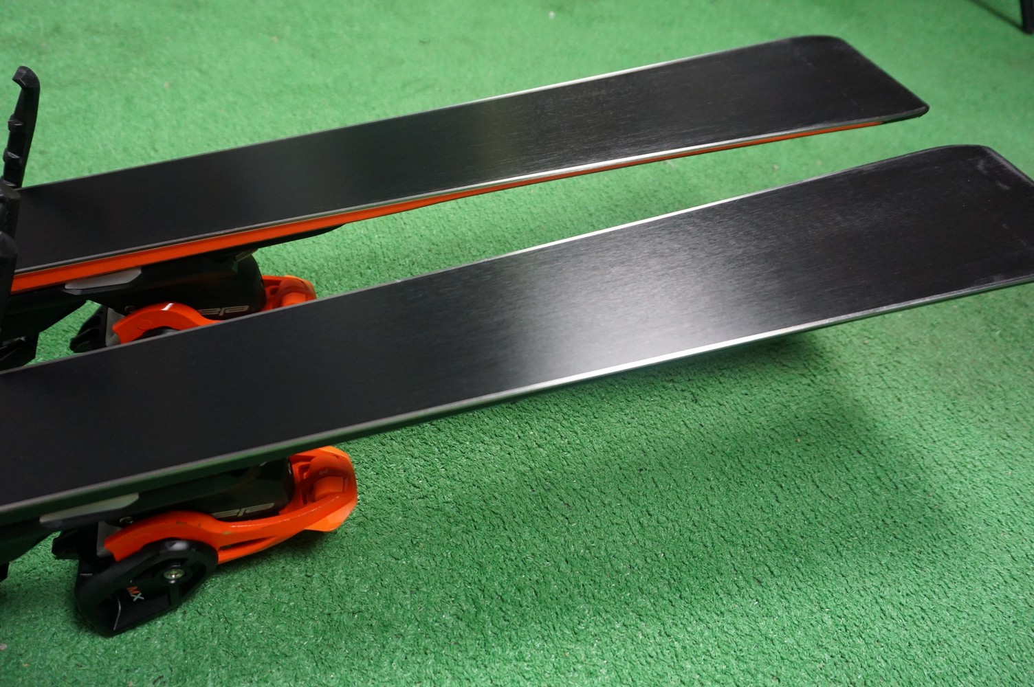 Krawędzie w nartach są grube, ślizgi równe, czyste.