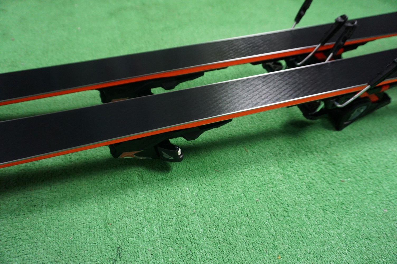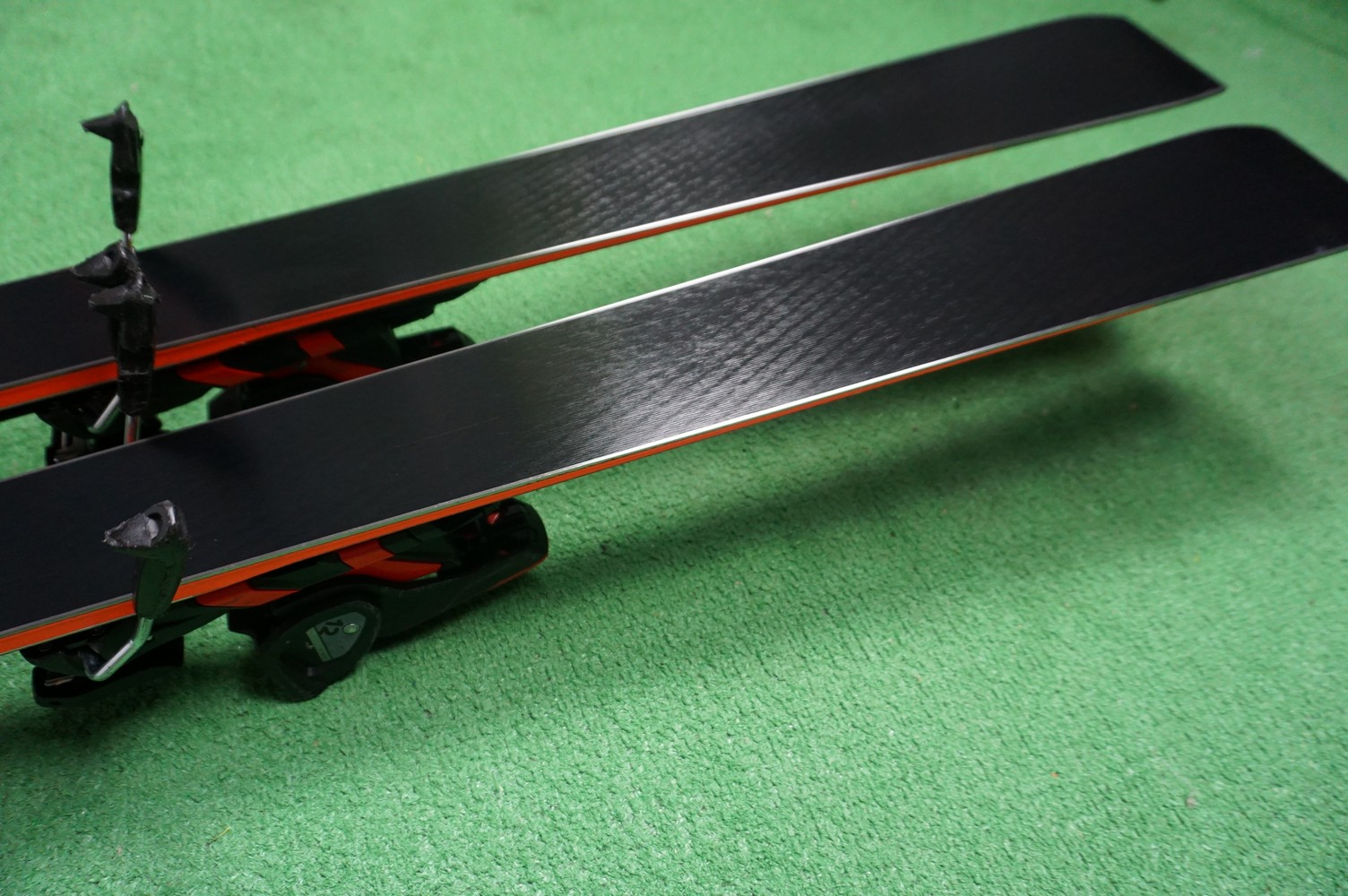 Krawędzie w nartach są grube, ślizgi równe, czyste.