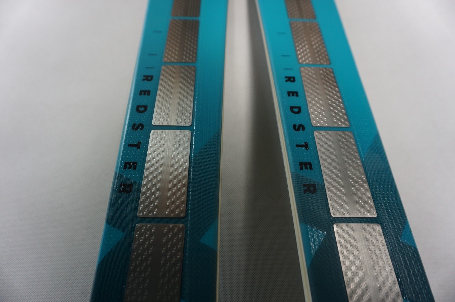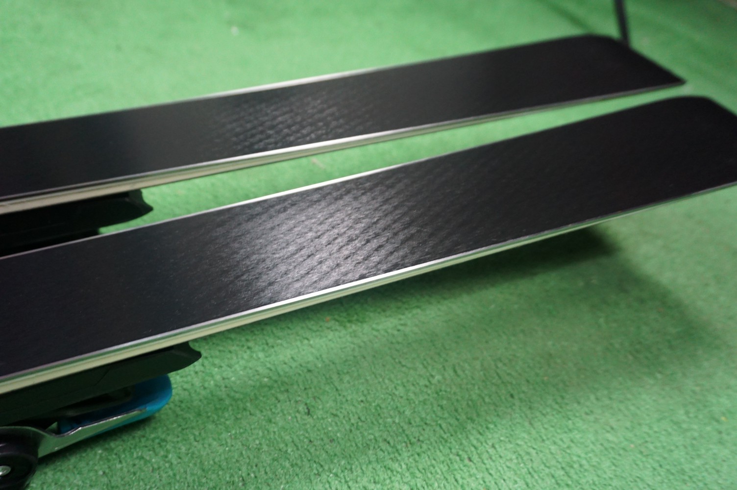 Krawędzie w nartach są grube, ślizgi równe, czyste.