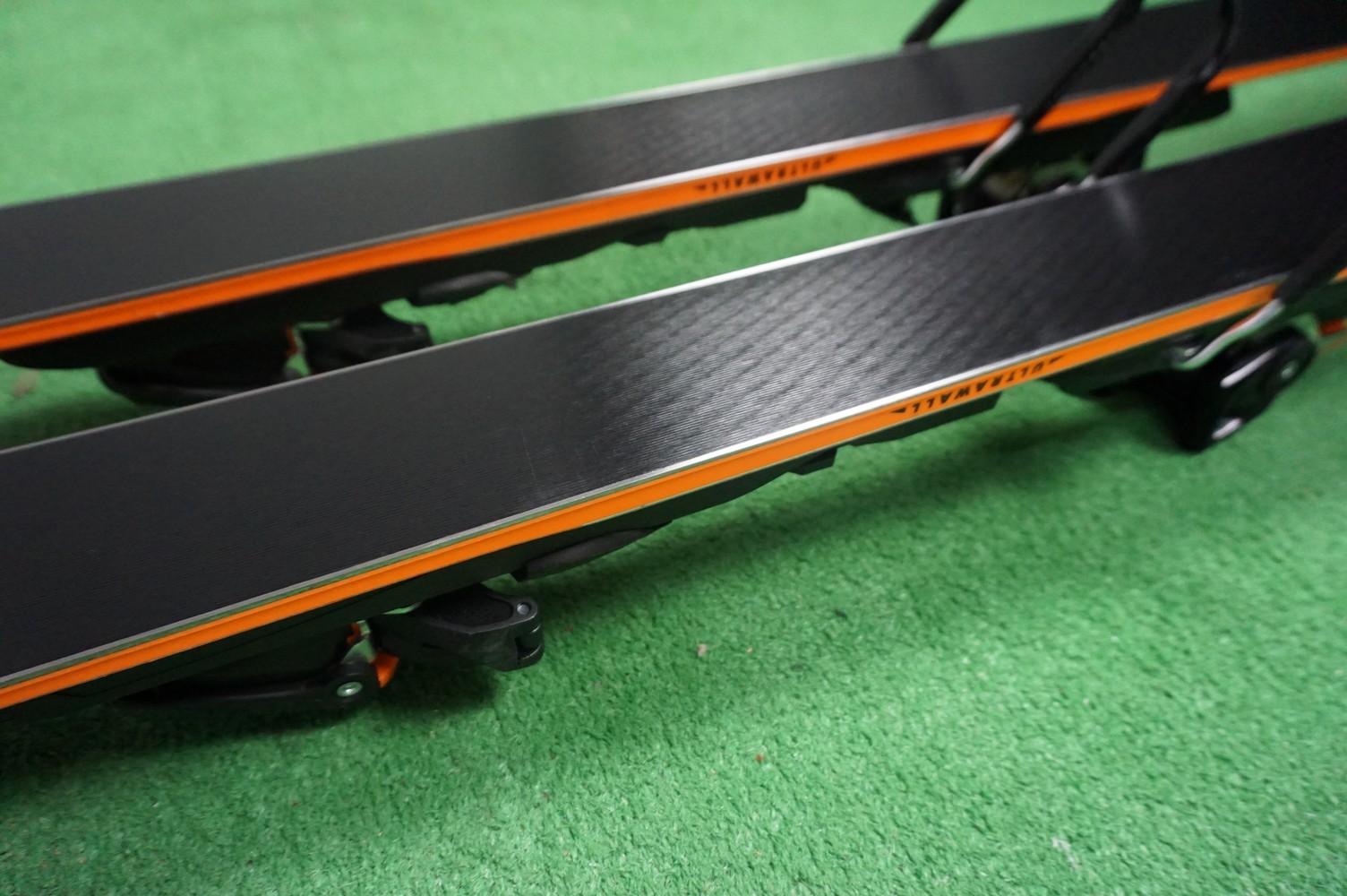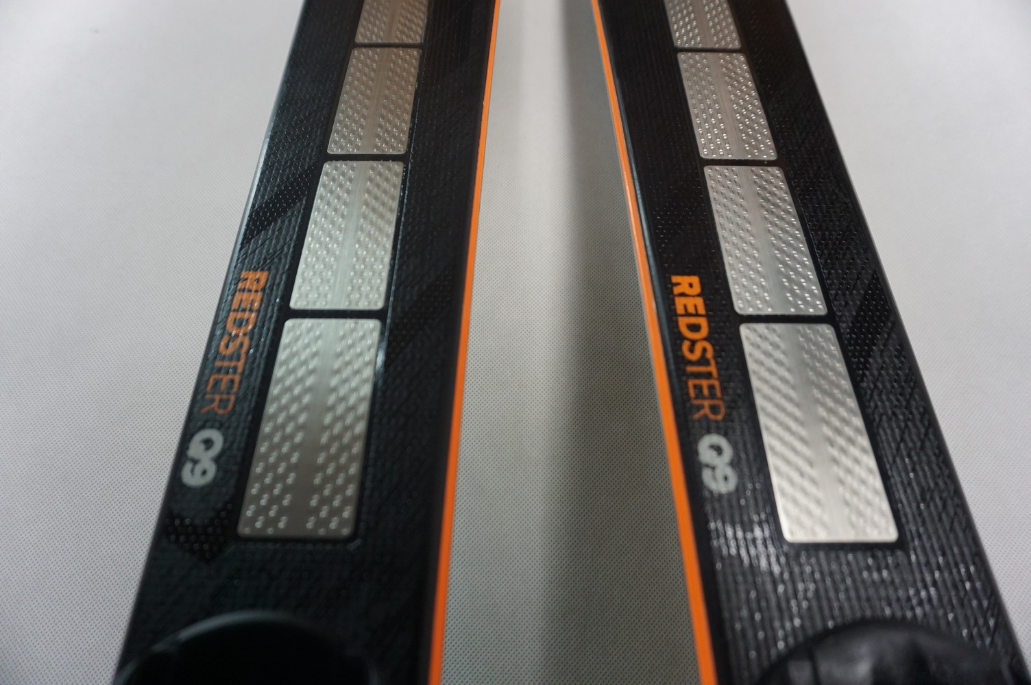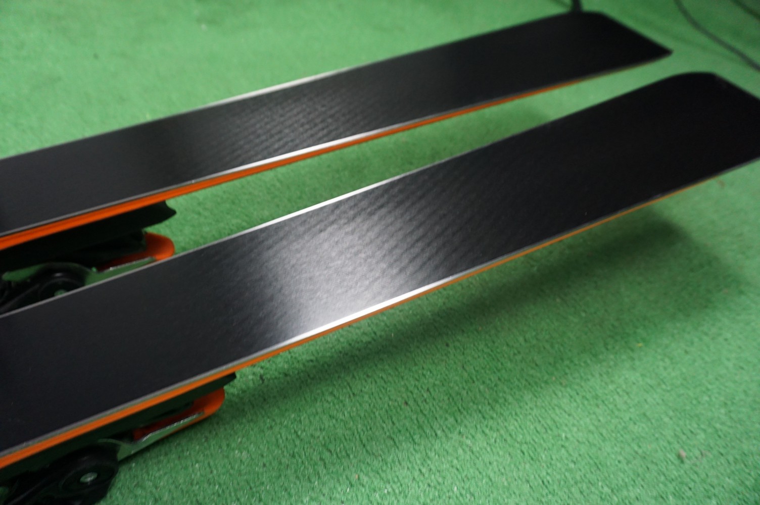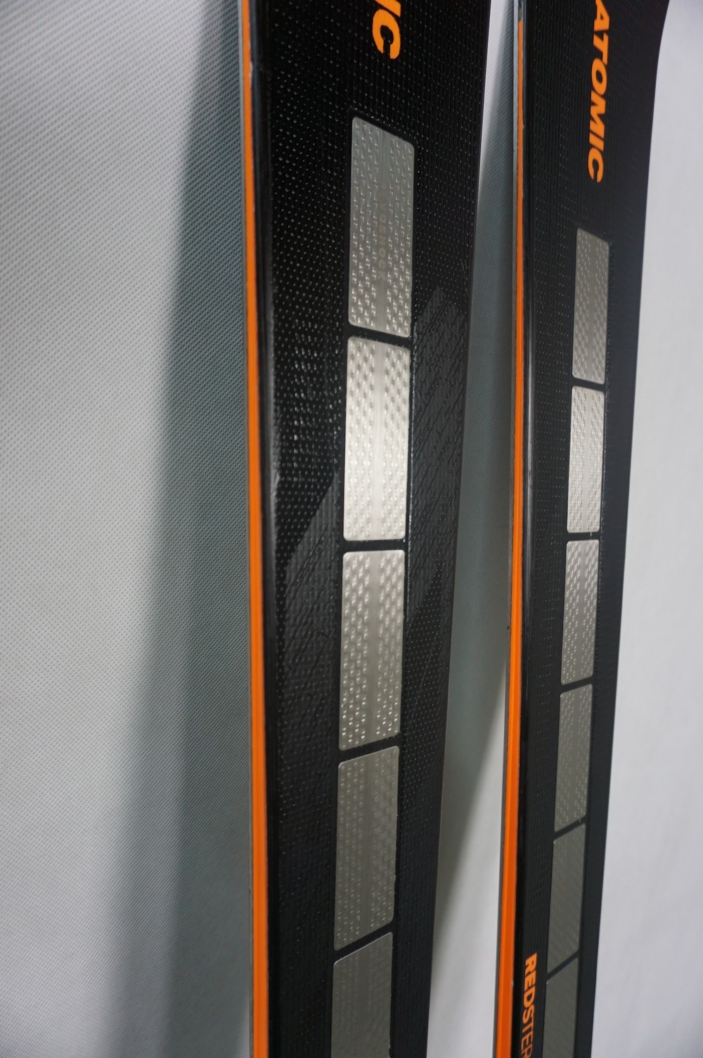 Krawędzie w nartach są grube, ślizgi równe, czyste.