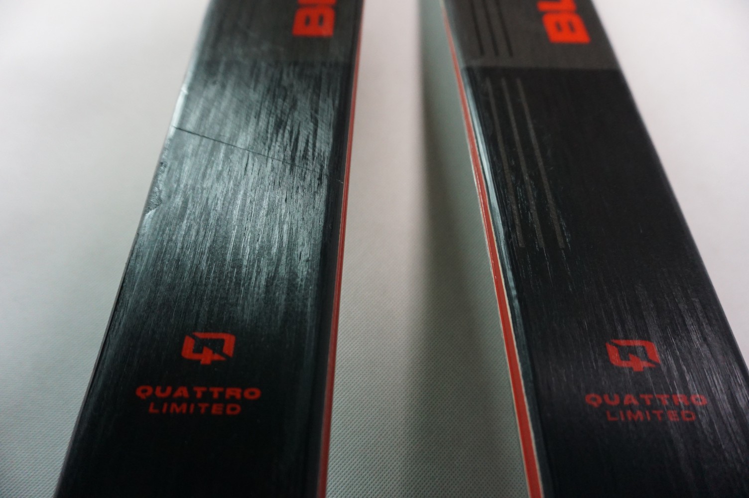 Krawędzie w nartach są grube, ślizgi równe, czyste.