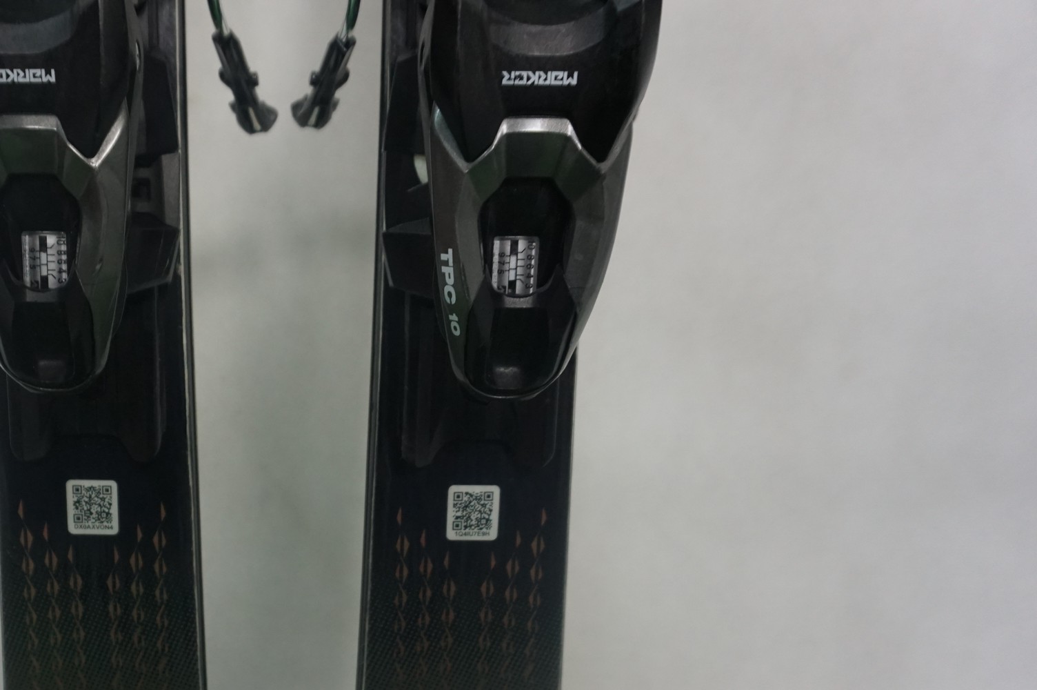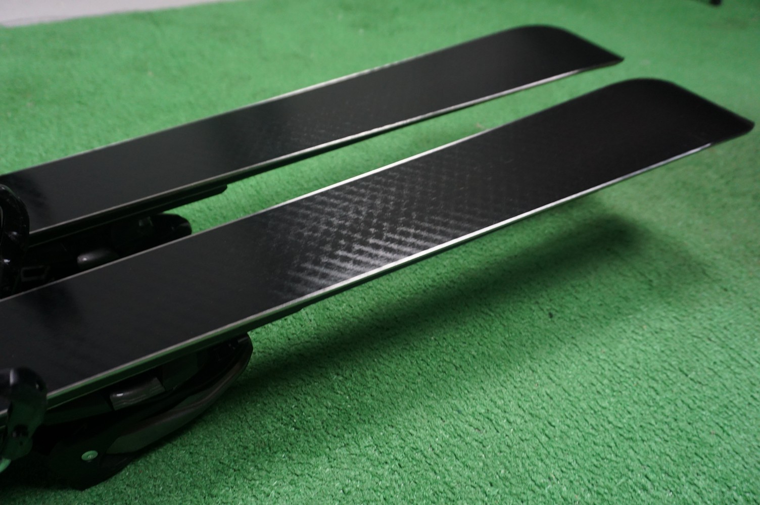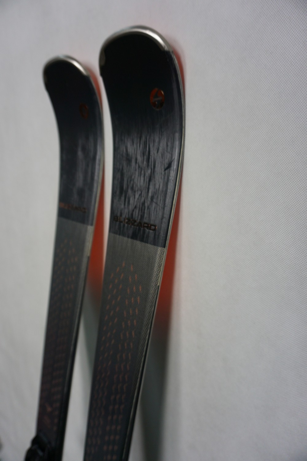 Krawędzie w nartach są grube, ślizgi równe, czyste.