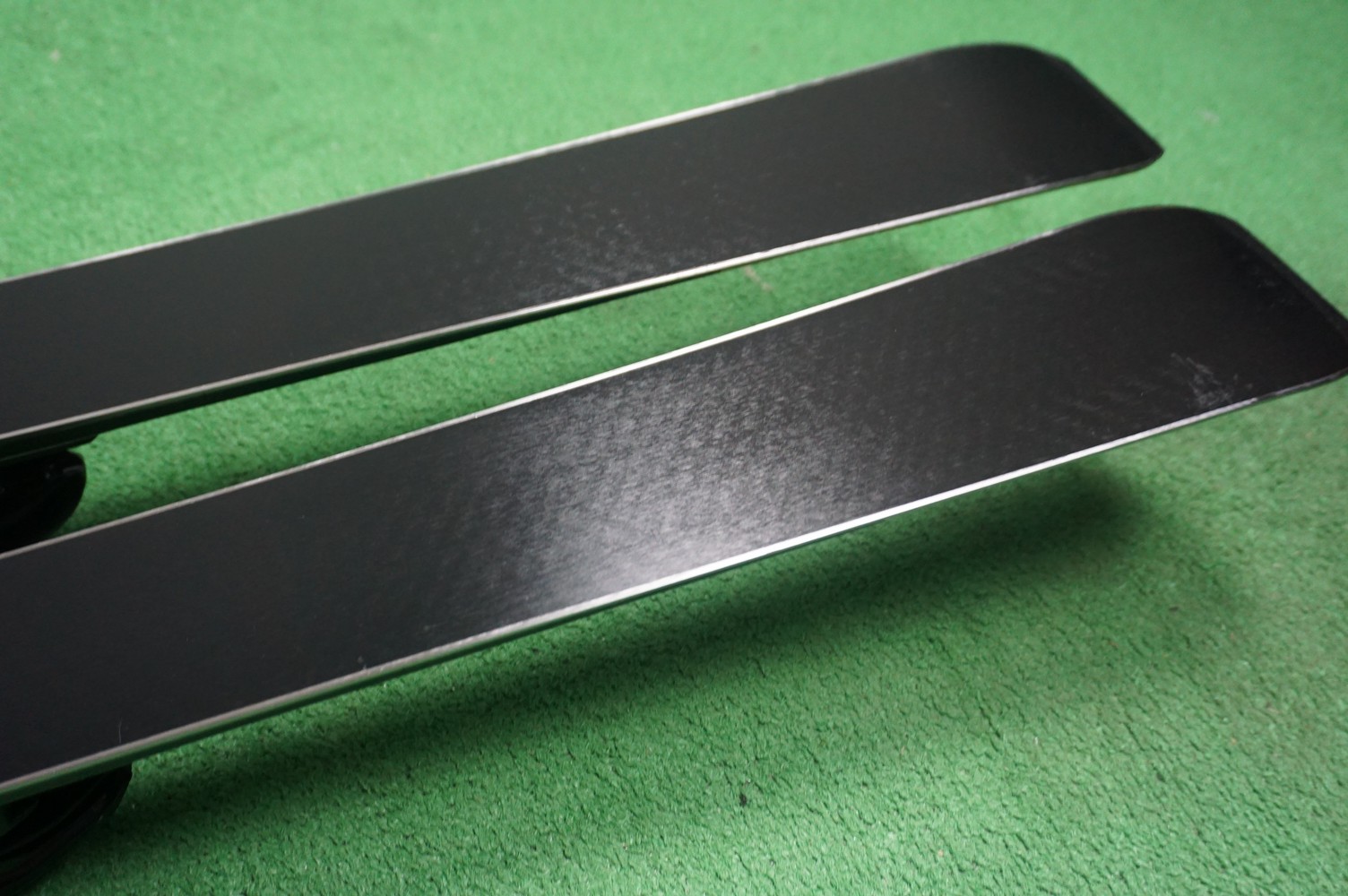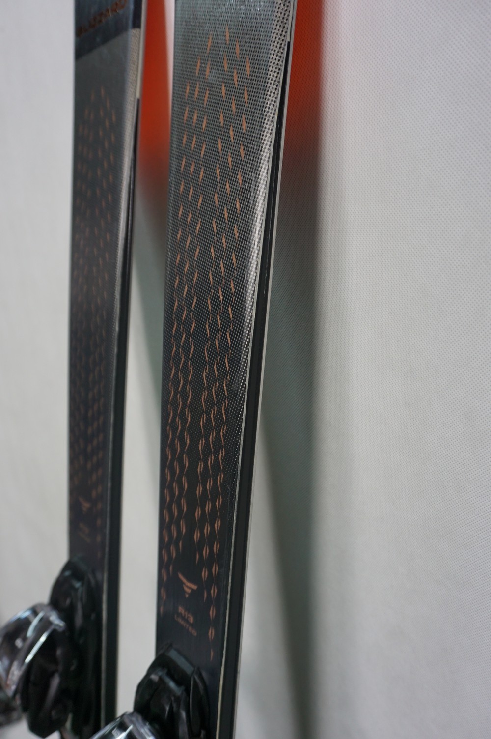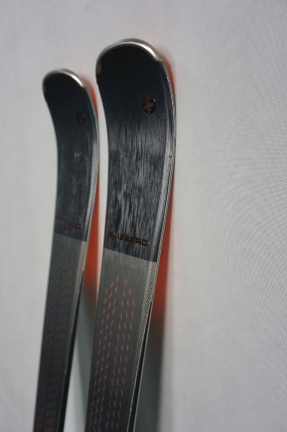 Krawędzie w nartach są grube, ślizgi równe, czyste.