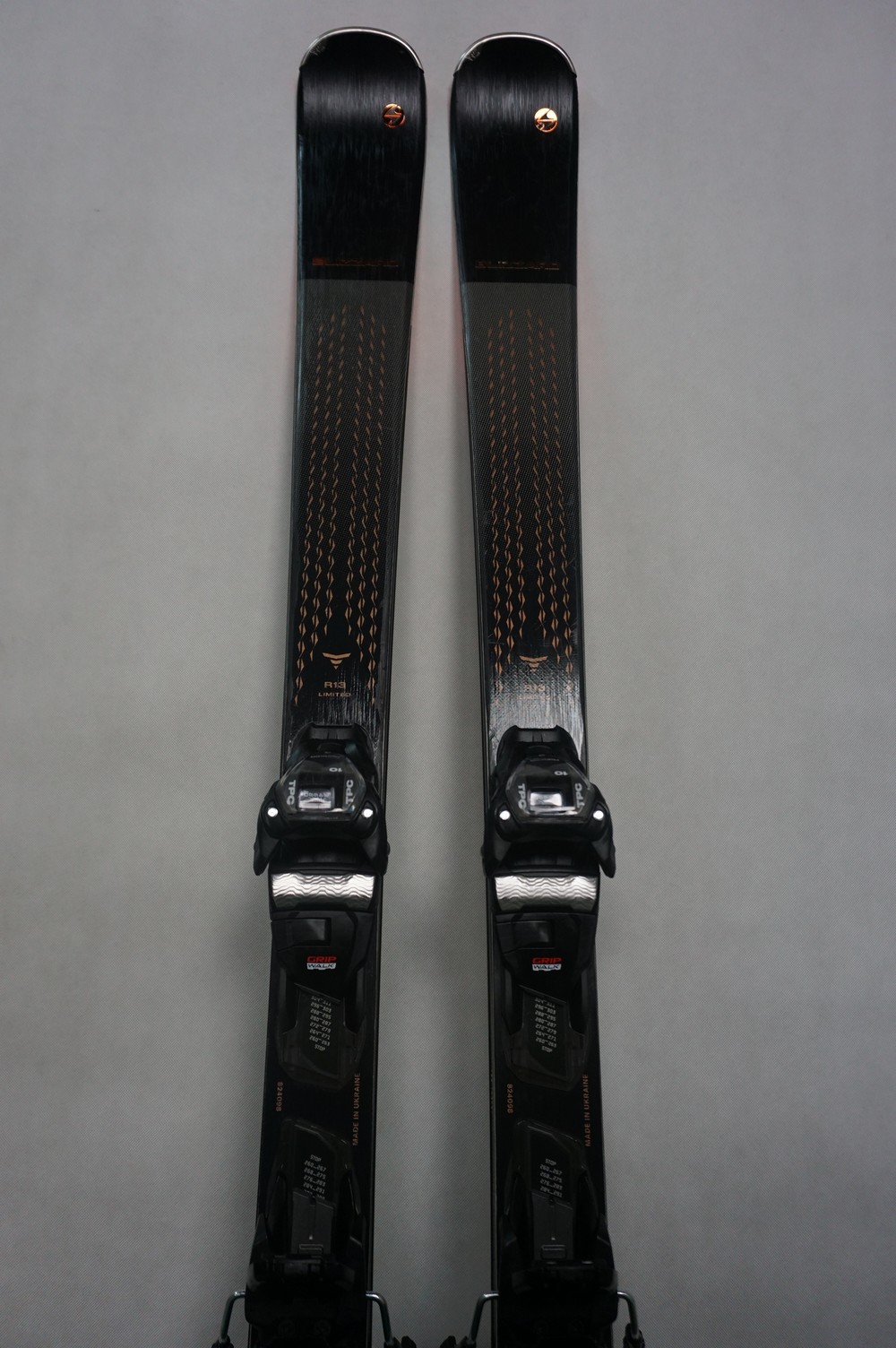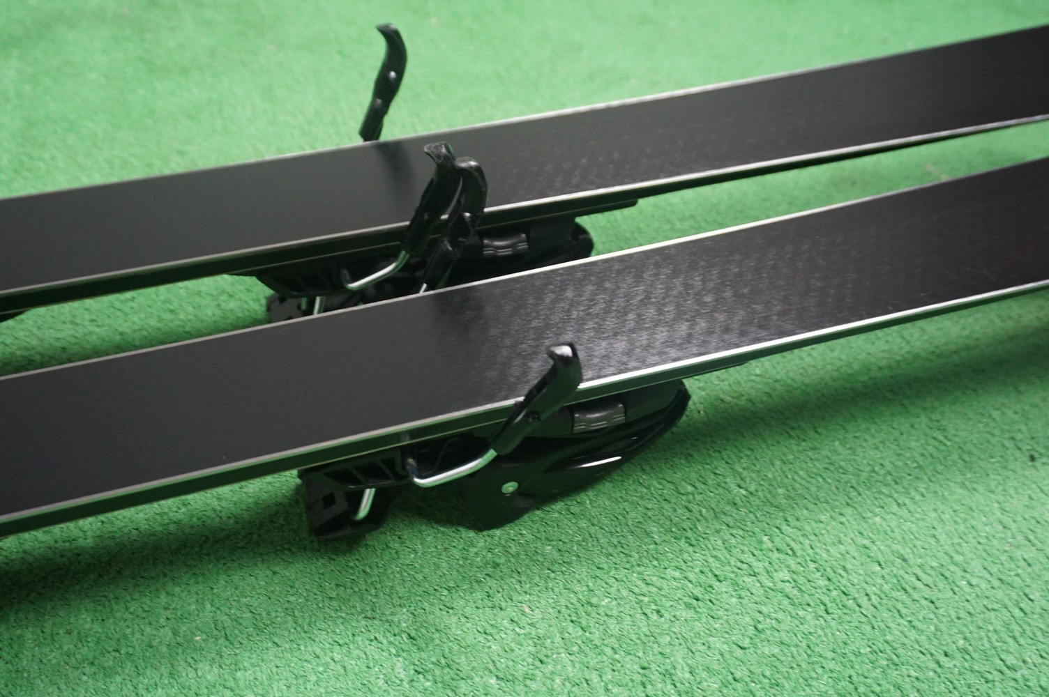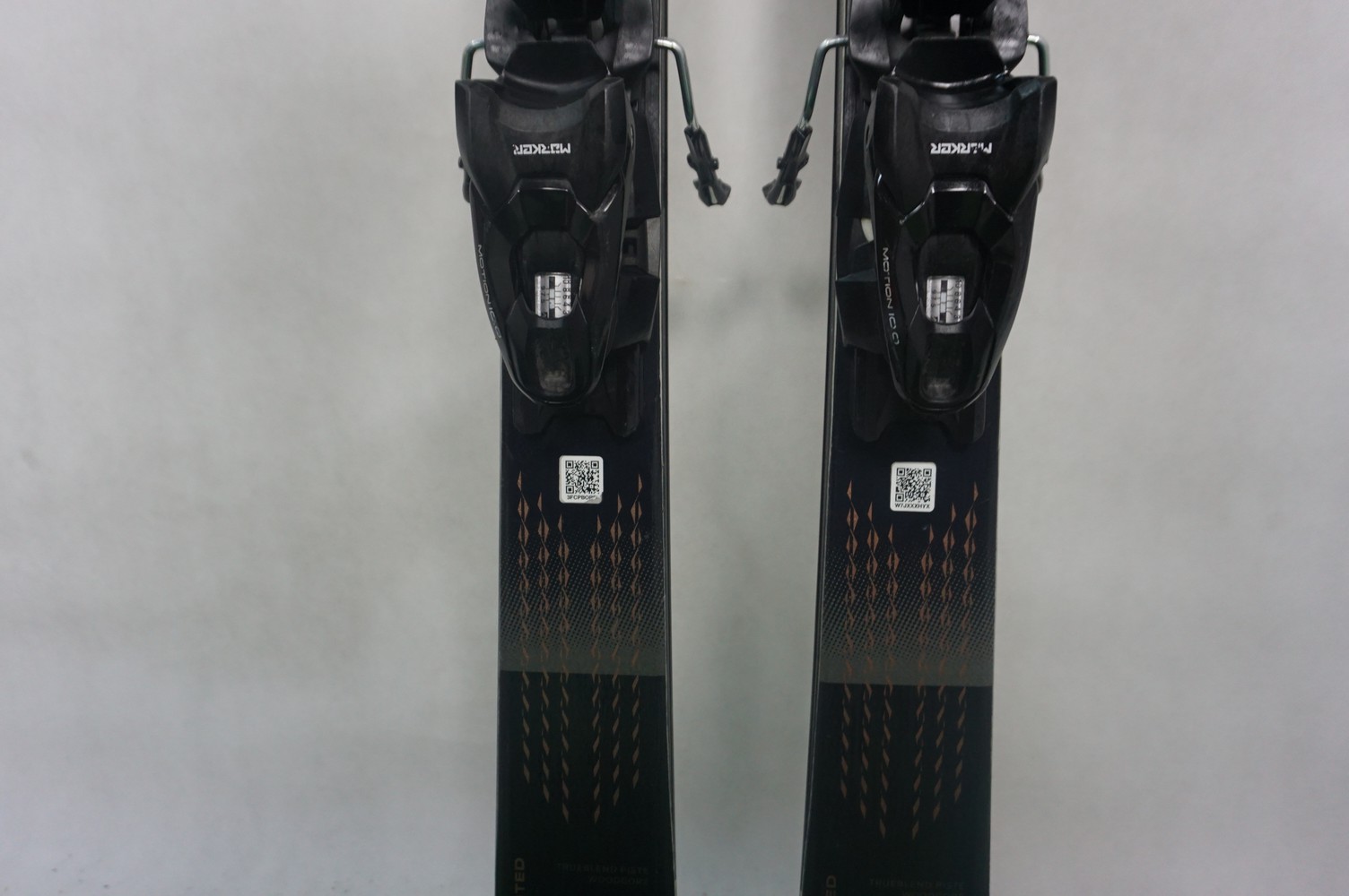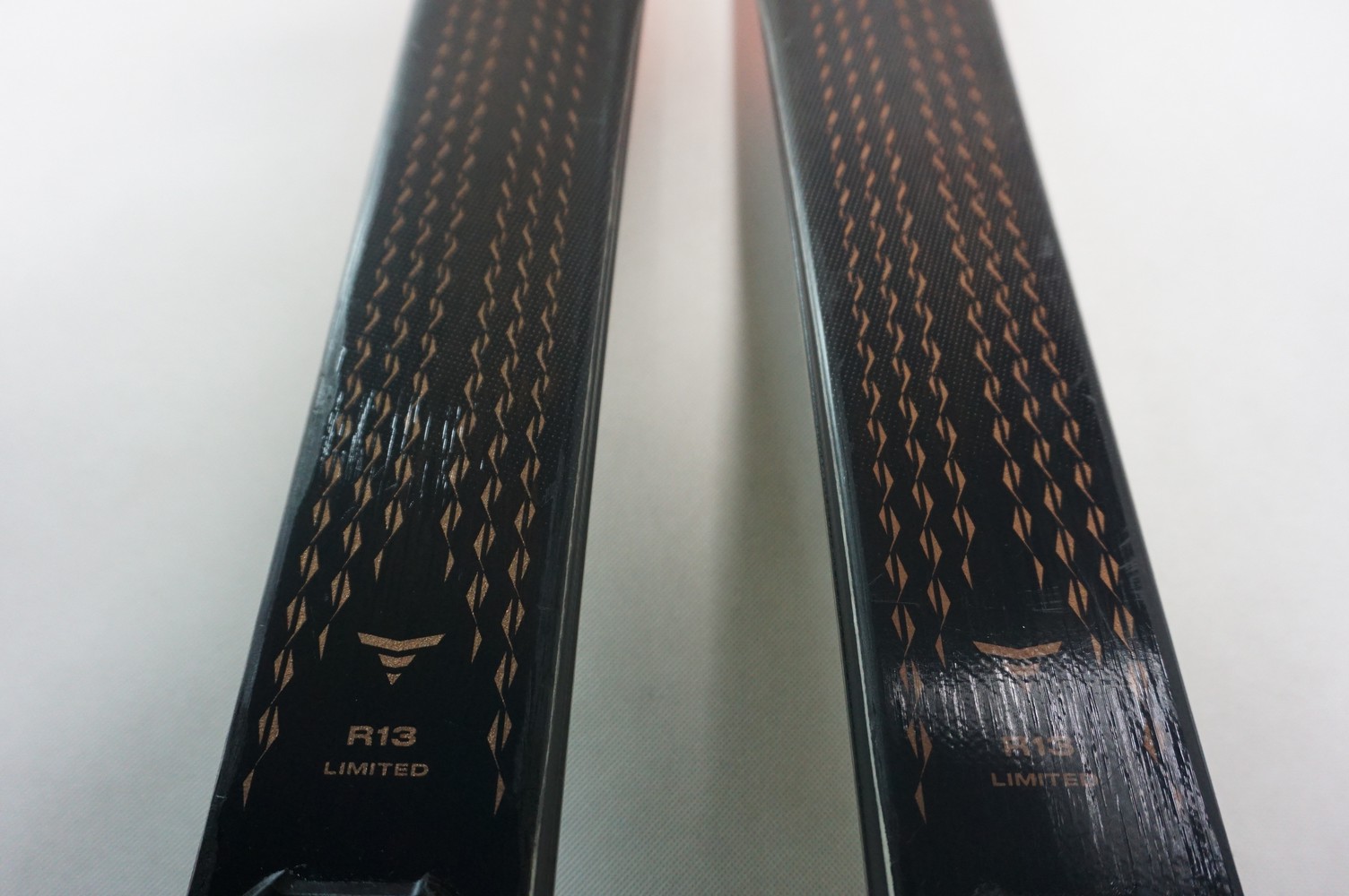 Krawędzie w nartach są grube, ślizgi równe, czyste.