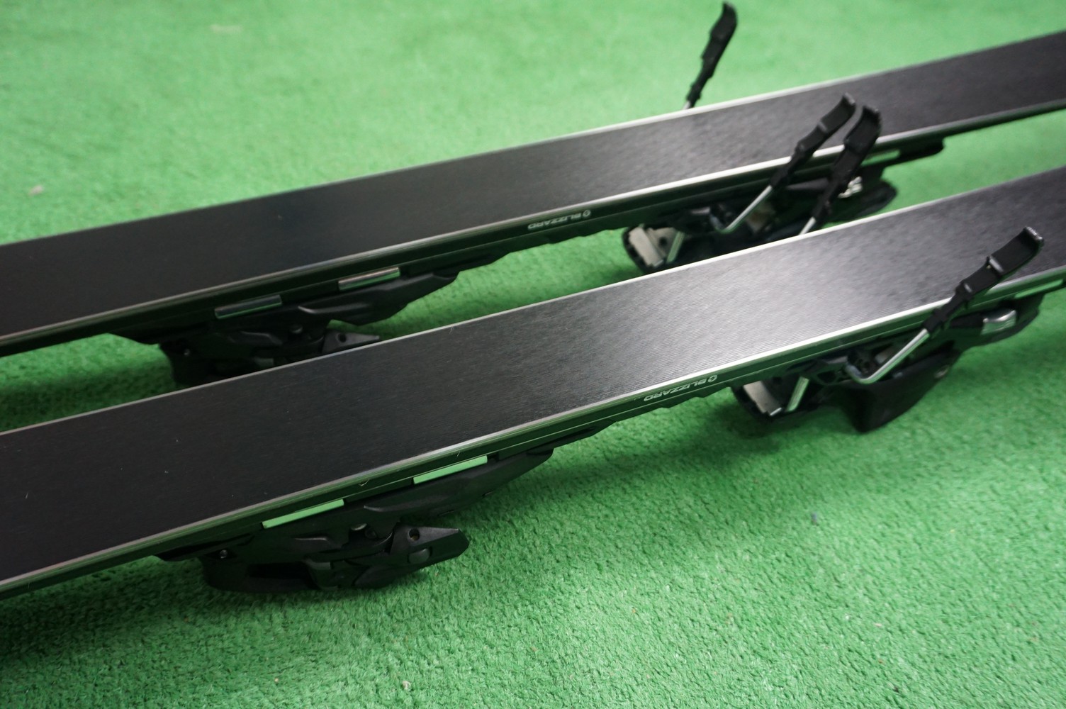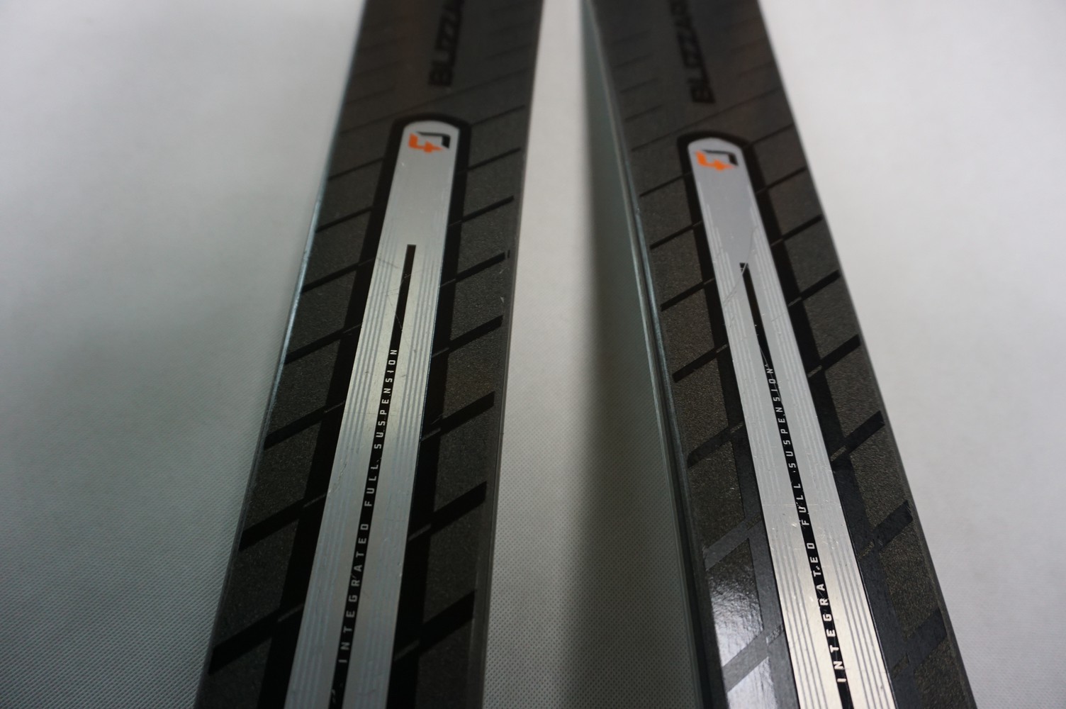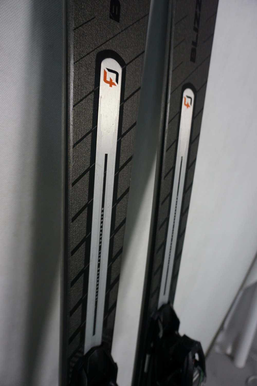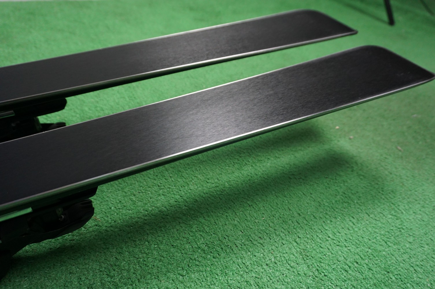 Krawędzie w nartach są grube, ślizgi równe, czyste.
