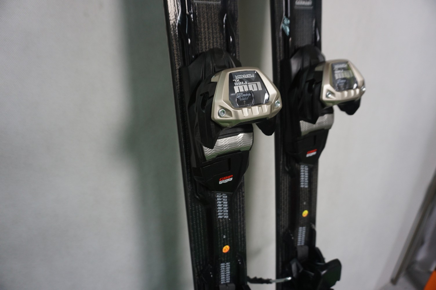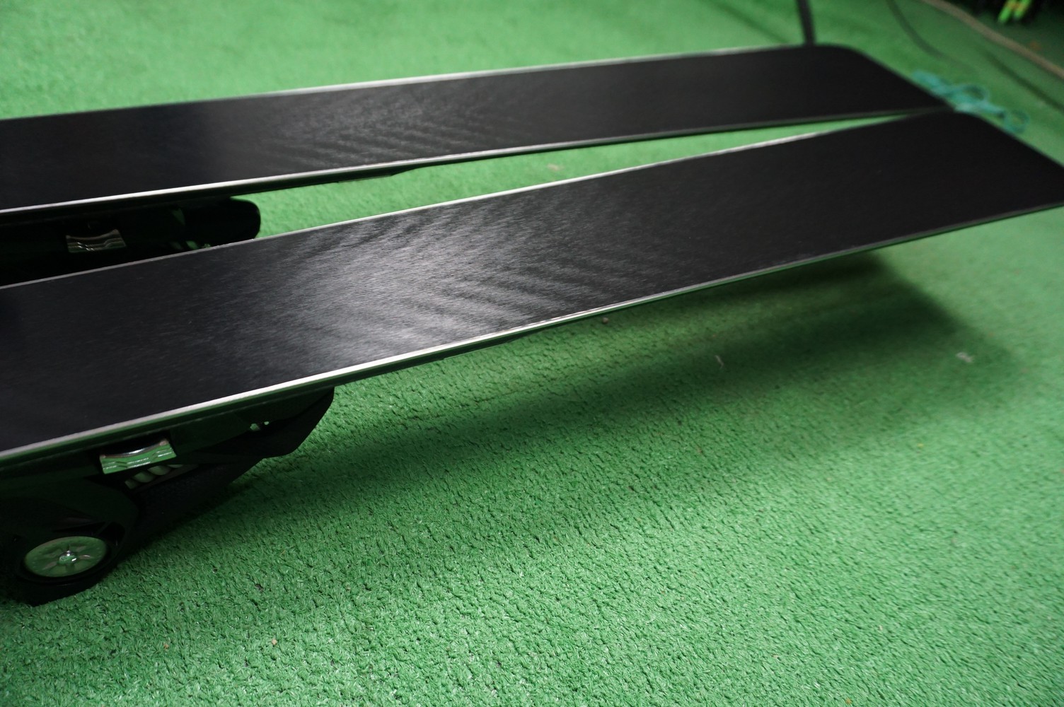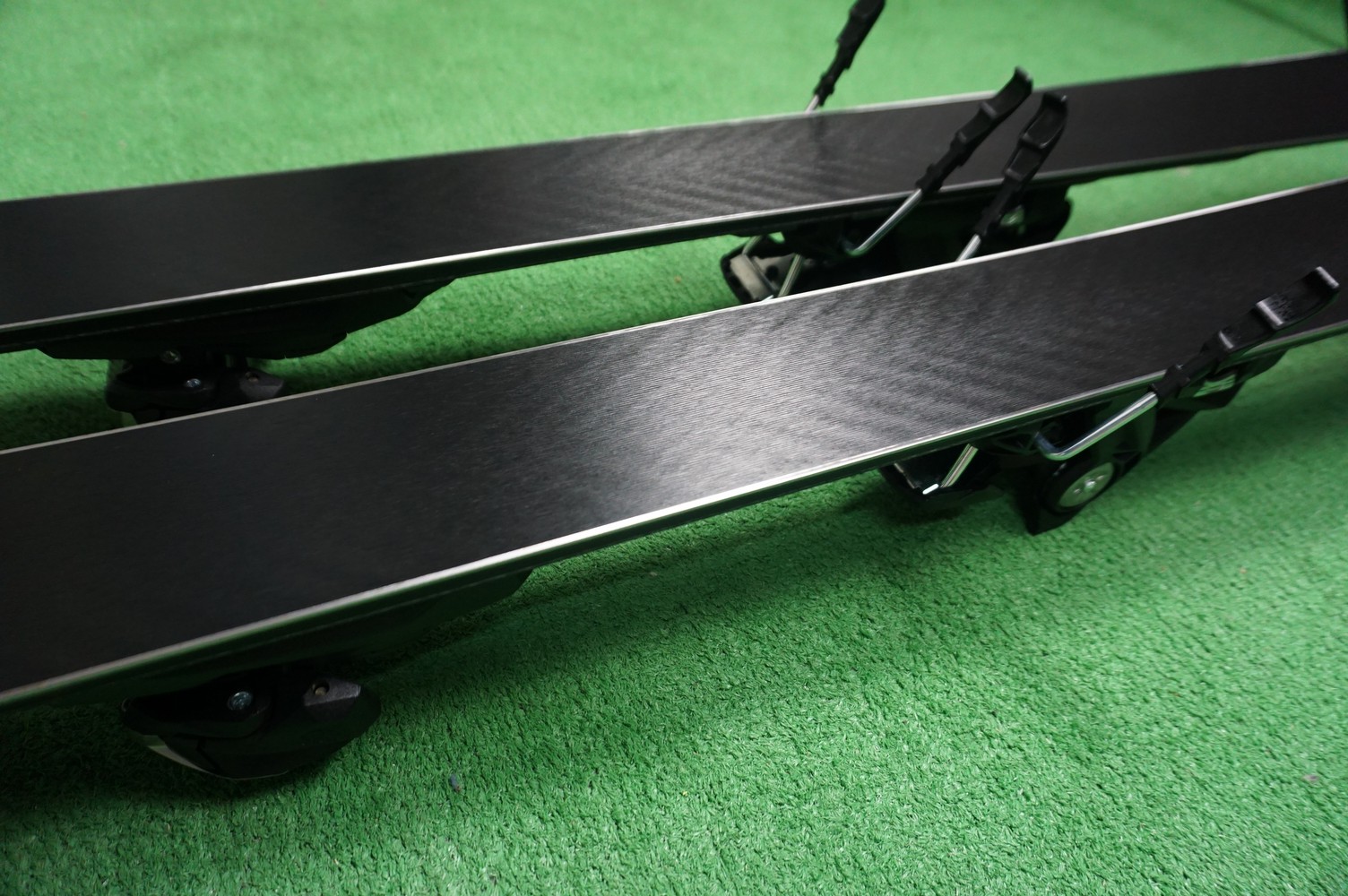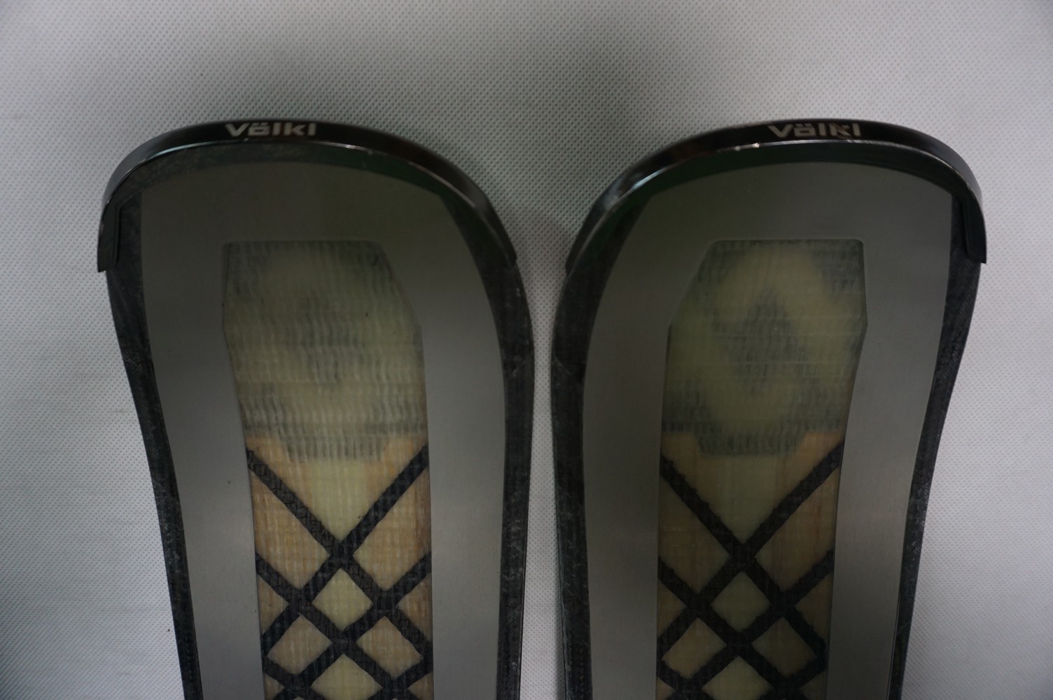 Krawędzie w nartach są grube, ślizgi równe, czyste.
