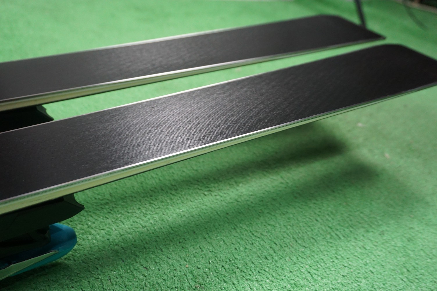 Krawędzie w nartach są grube, ślizgi równe, czyste.