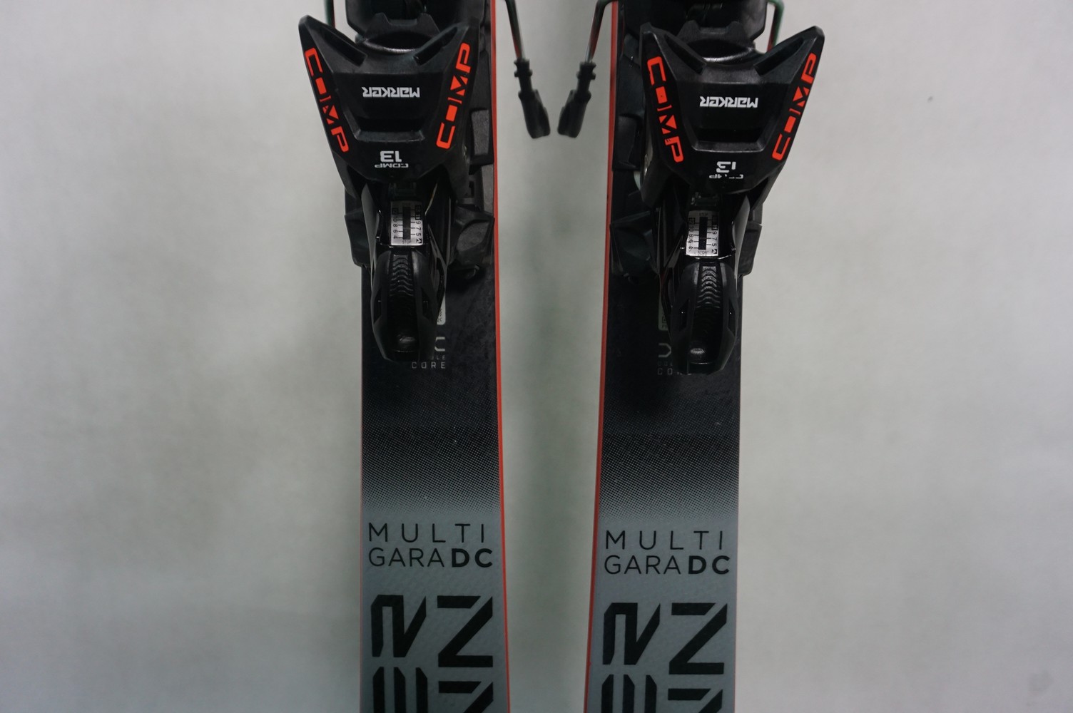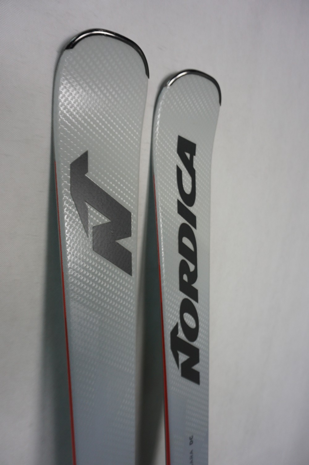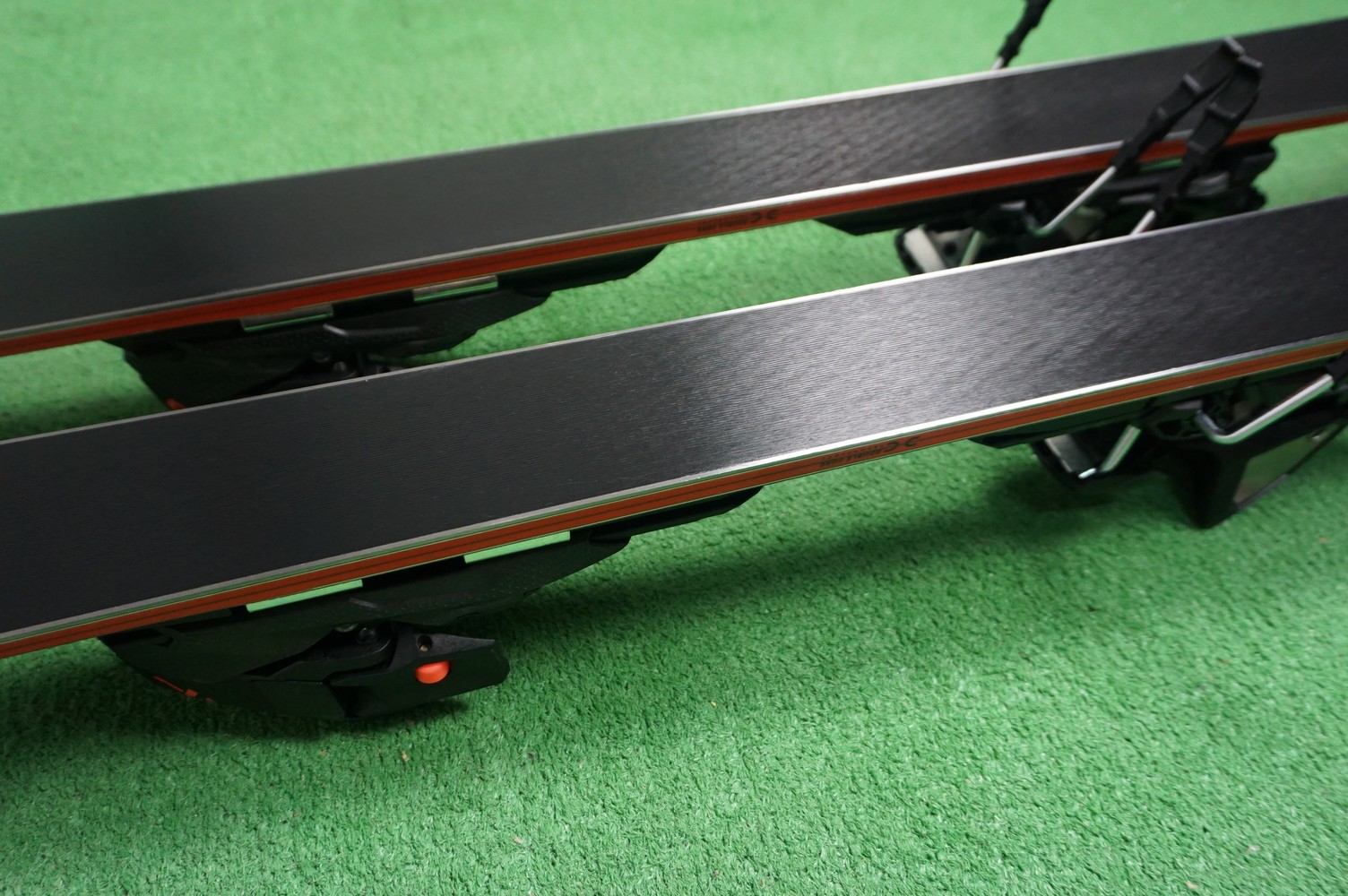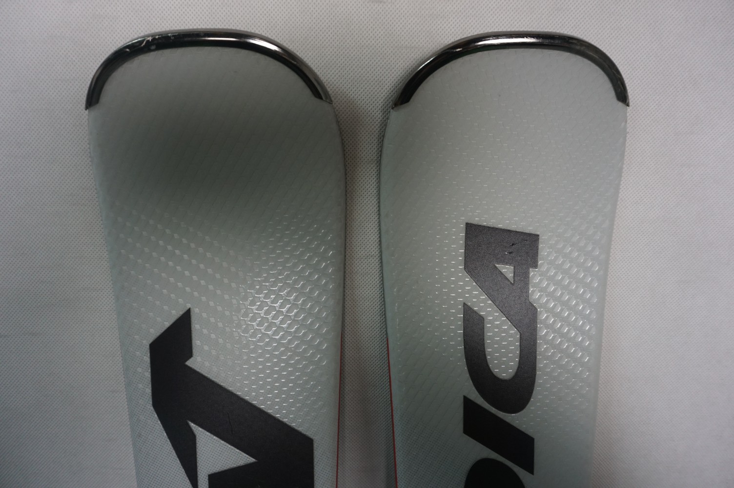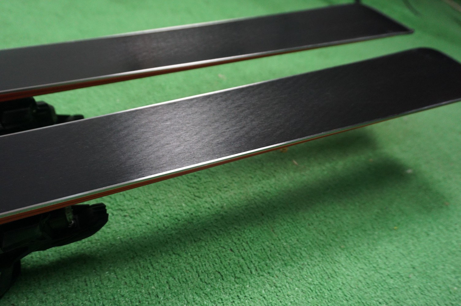 Krawędzie w nartach są grube, ślizgi równe, czyste.