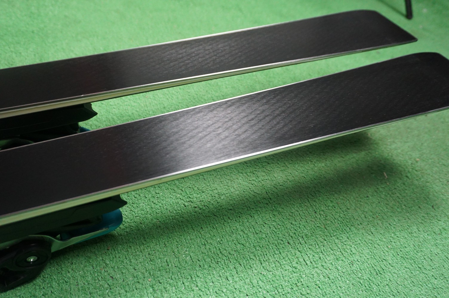 Krawędzie w nartach są grube, ślizgi równe, czyste.