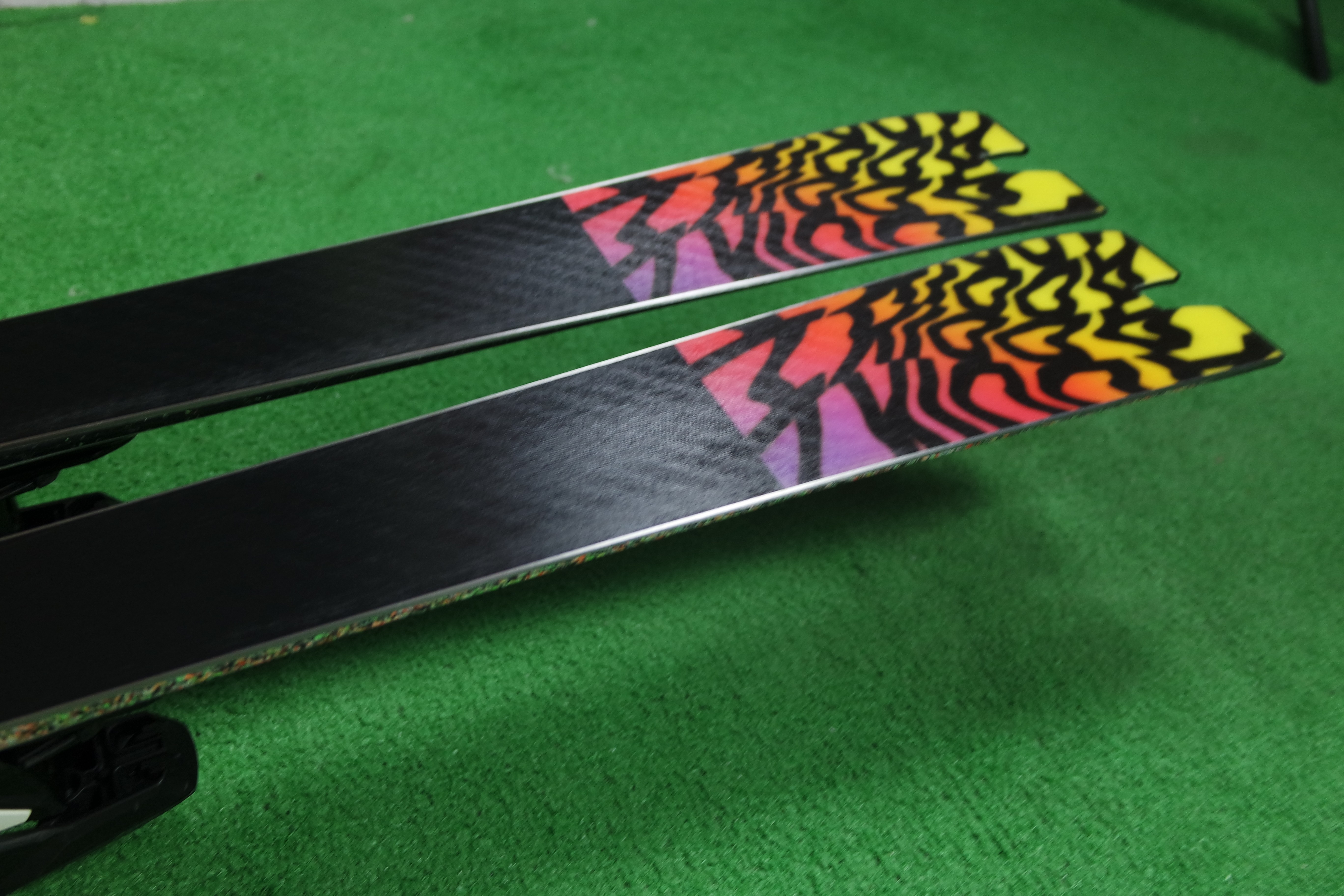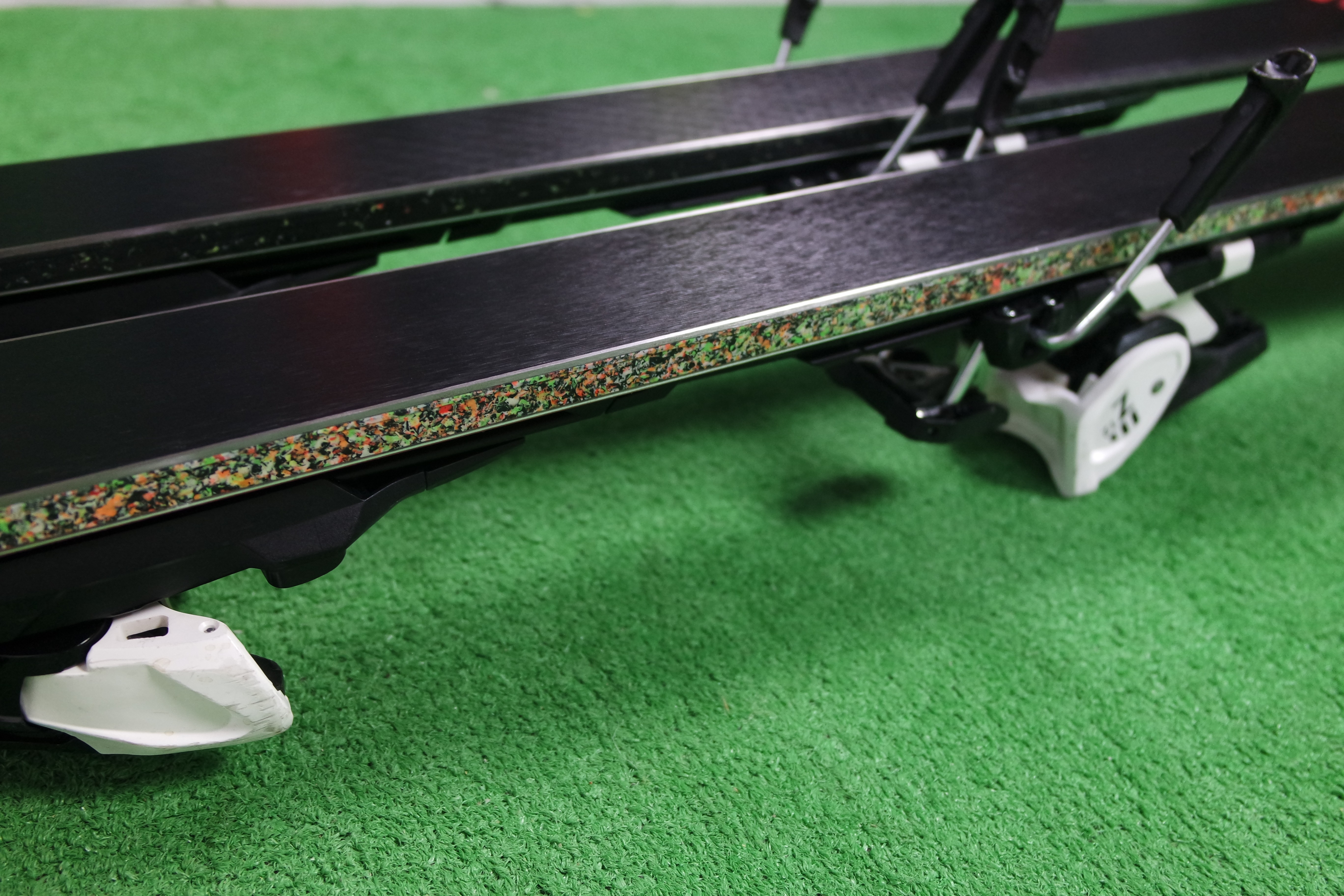 Krawędzie w nartach są grube, ślizgi równe, czyste.