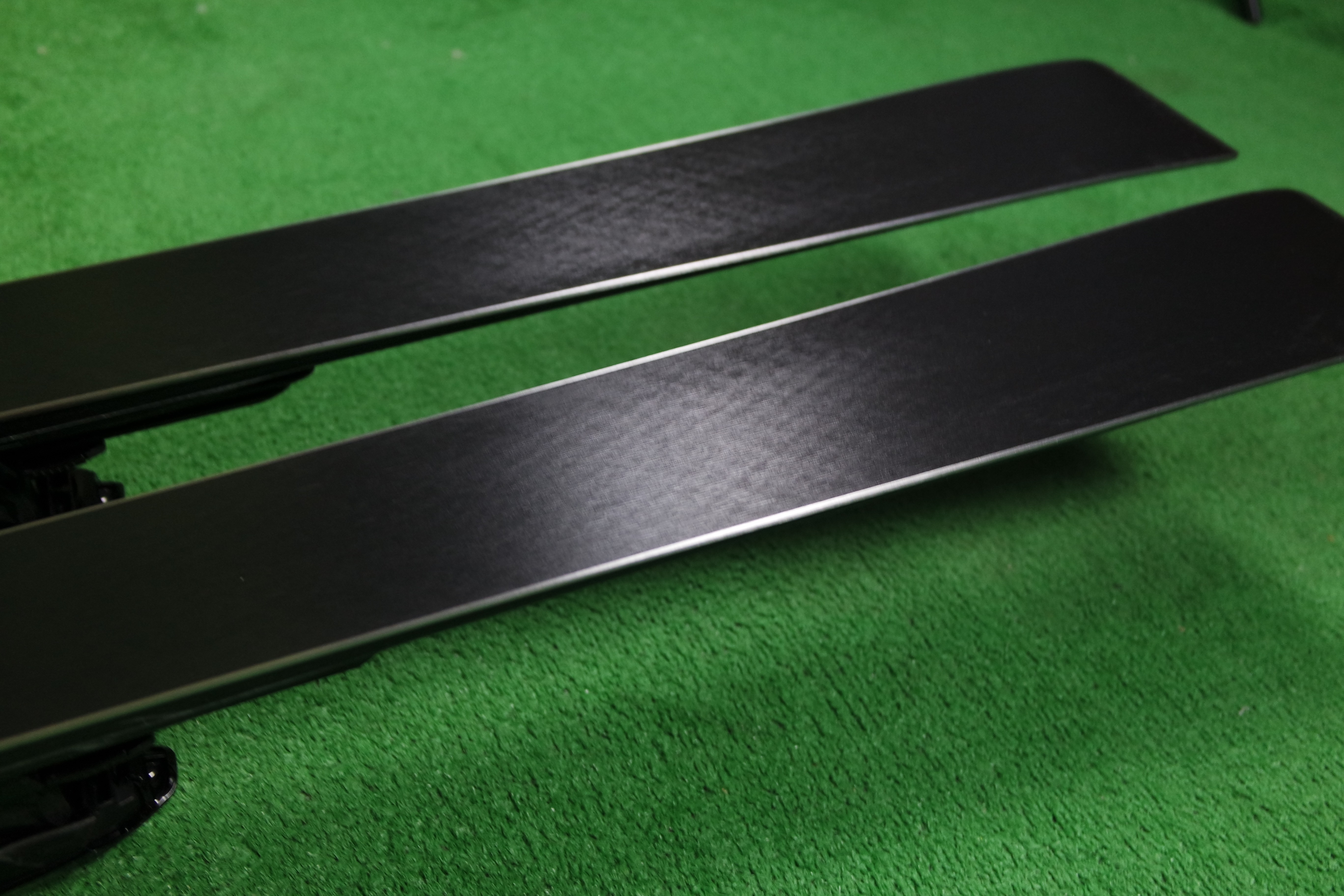 Krawędzie w nartach są grube, ślizgi równe, czyste.