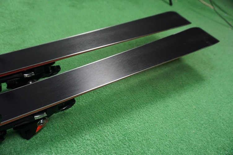 Krawędzie w nartach są grube, ślizgi równe, czyste.